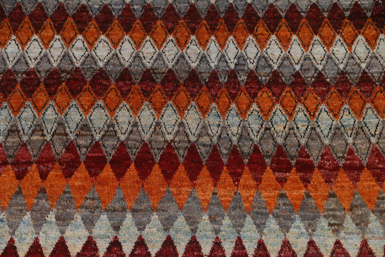 A Beautiful Genuine Pakistan Moroccan rug is Hand Knotted by skillful weavers in Pakistan with 100% Wool Material. This rug is in condition. dimensions are 9' 9'' X 7' 0'' in foot and 297 X 213 in centimeter. the primary color is Multi-Colored.
