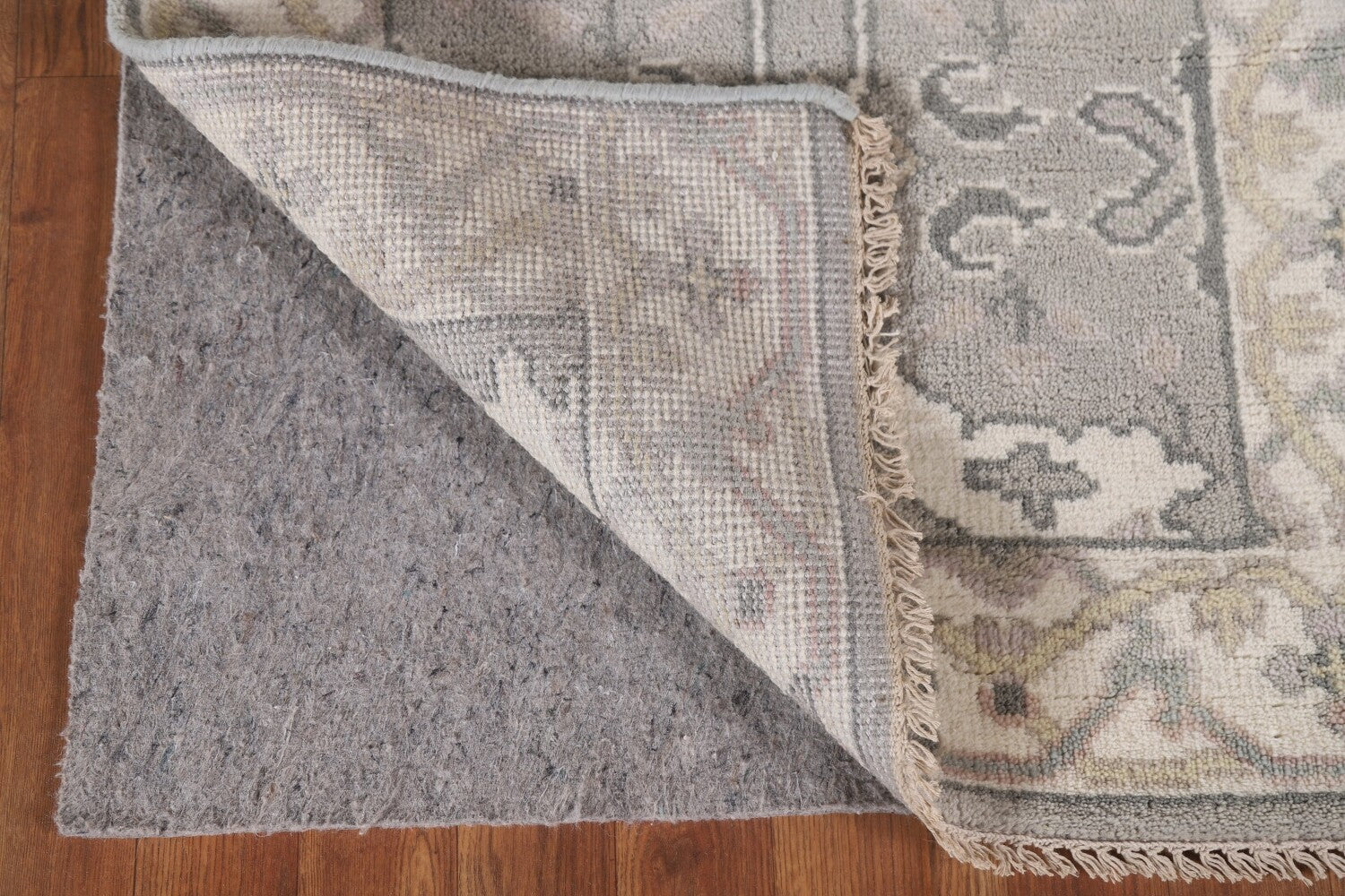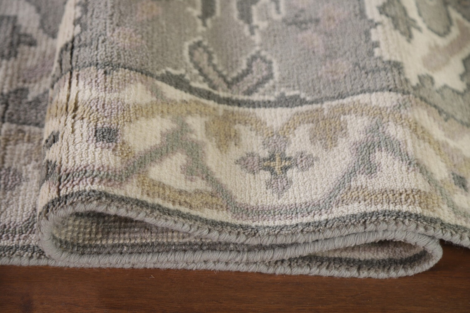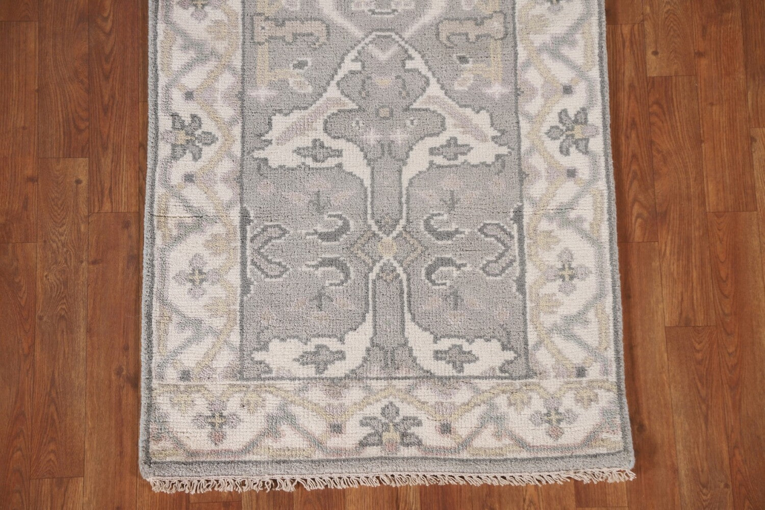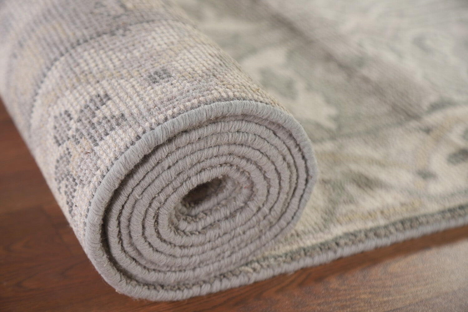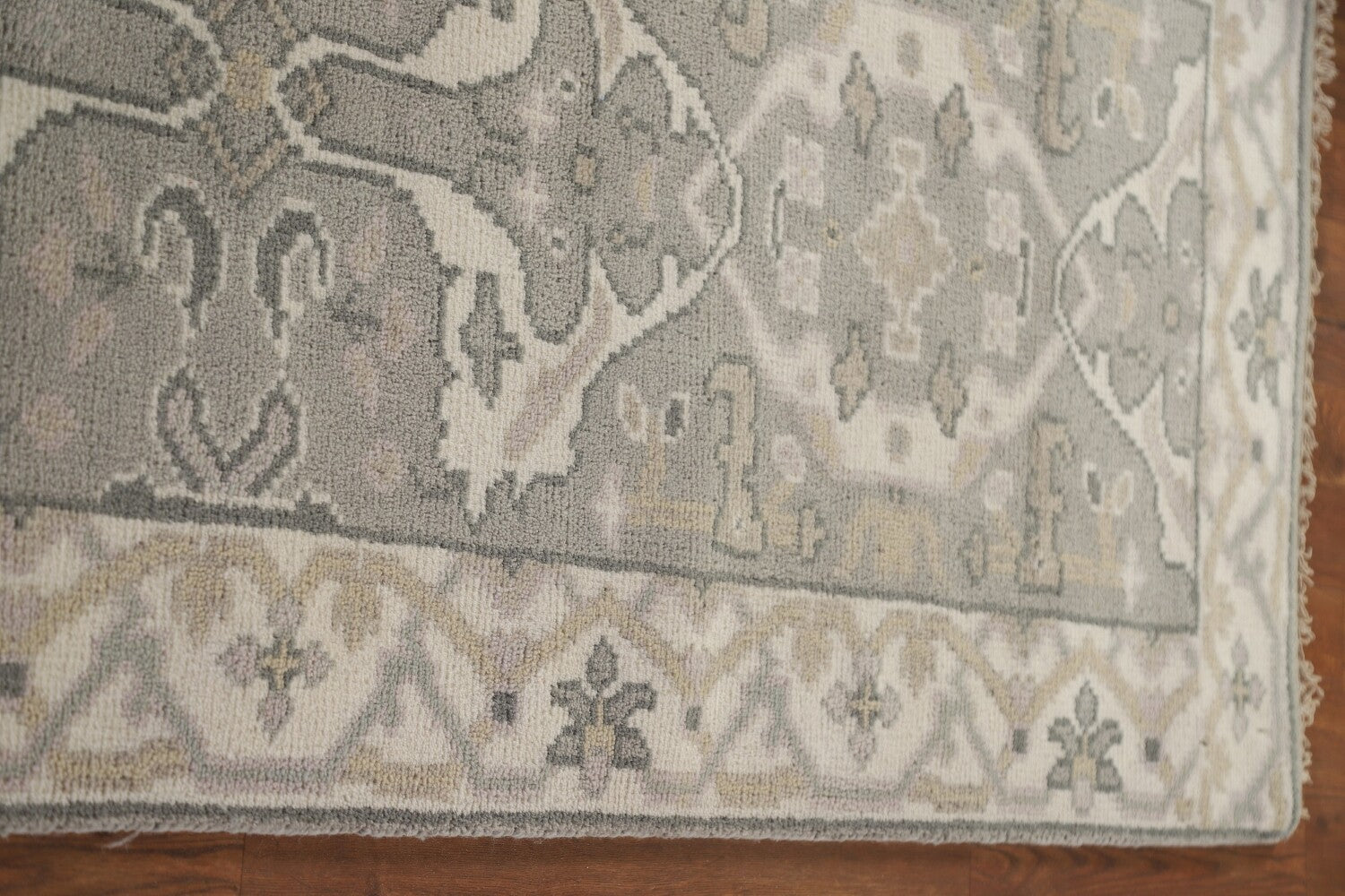 A Beautiful Genuine India Oushak rug is Hand Knotted by skillful weavers in India with 100% Wool Material. This rug is in New, First Quality condition. dimensions are 15' 8'' X 2' 8'' in foot and 478 X 81 in centimeter. the primary color is Greys & Charcoal.