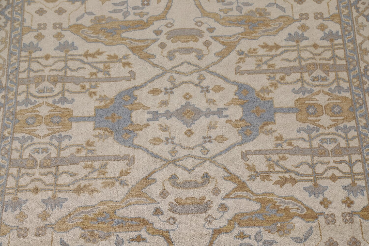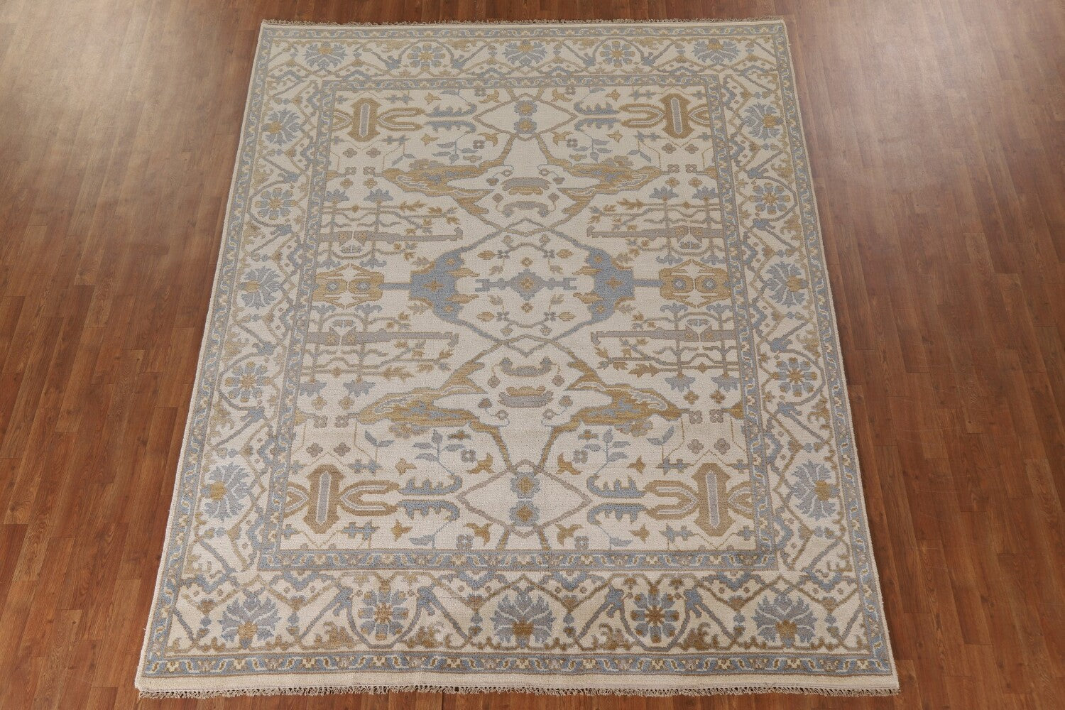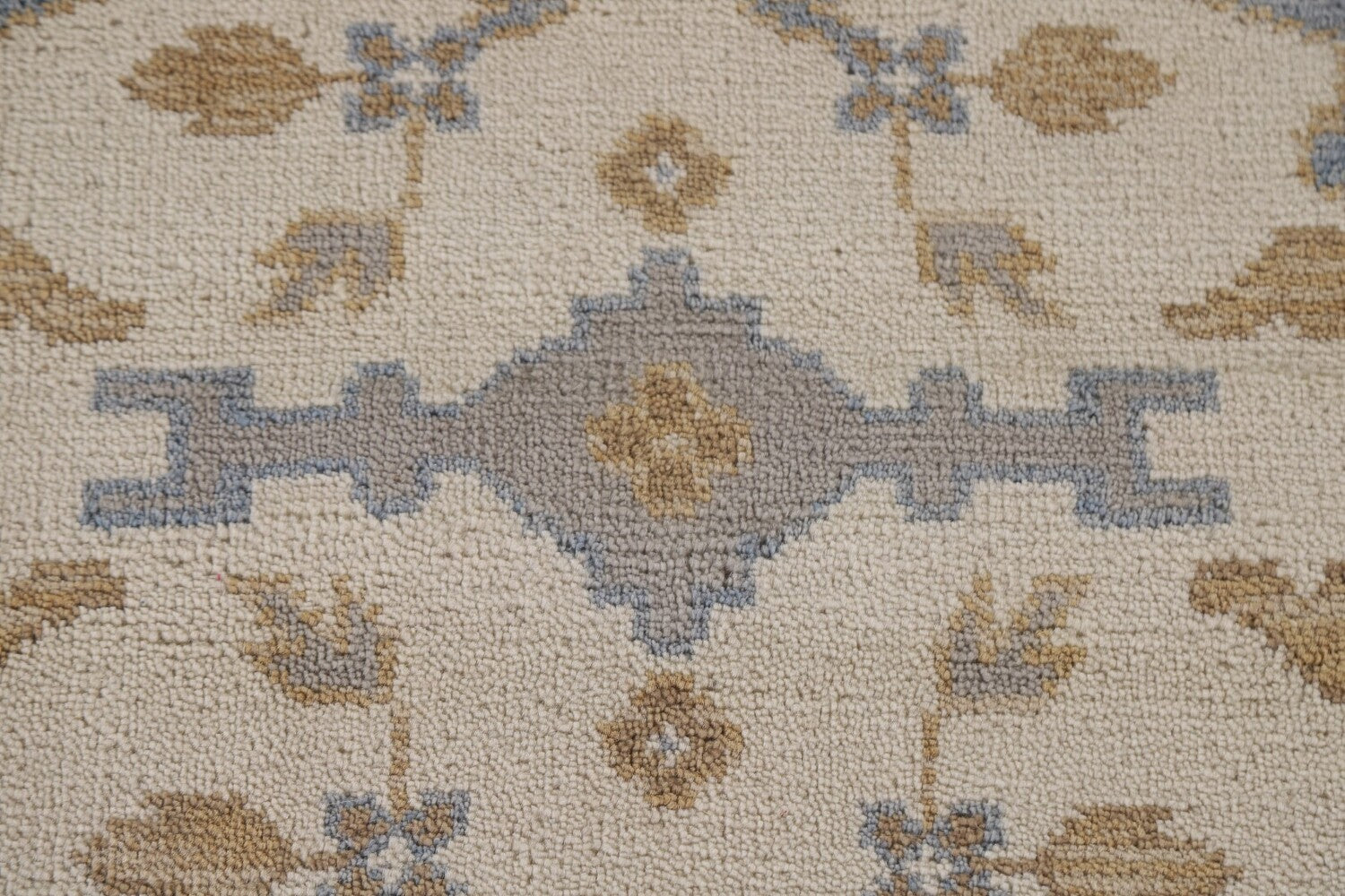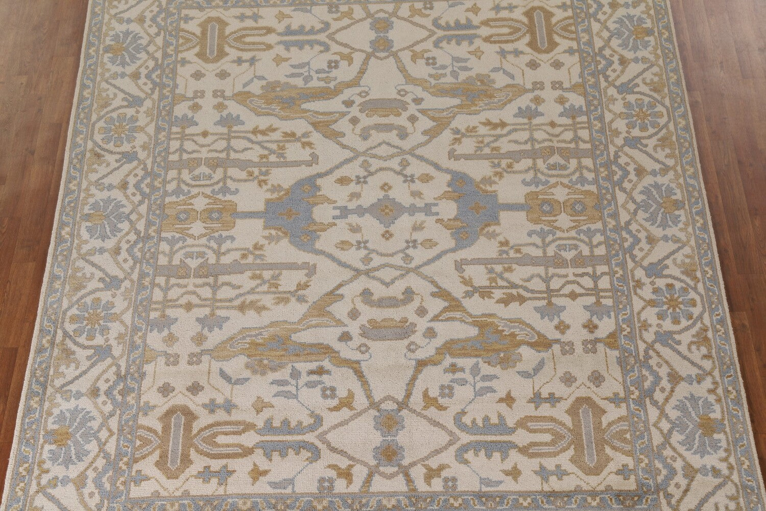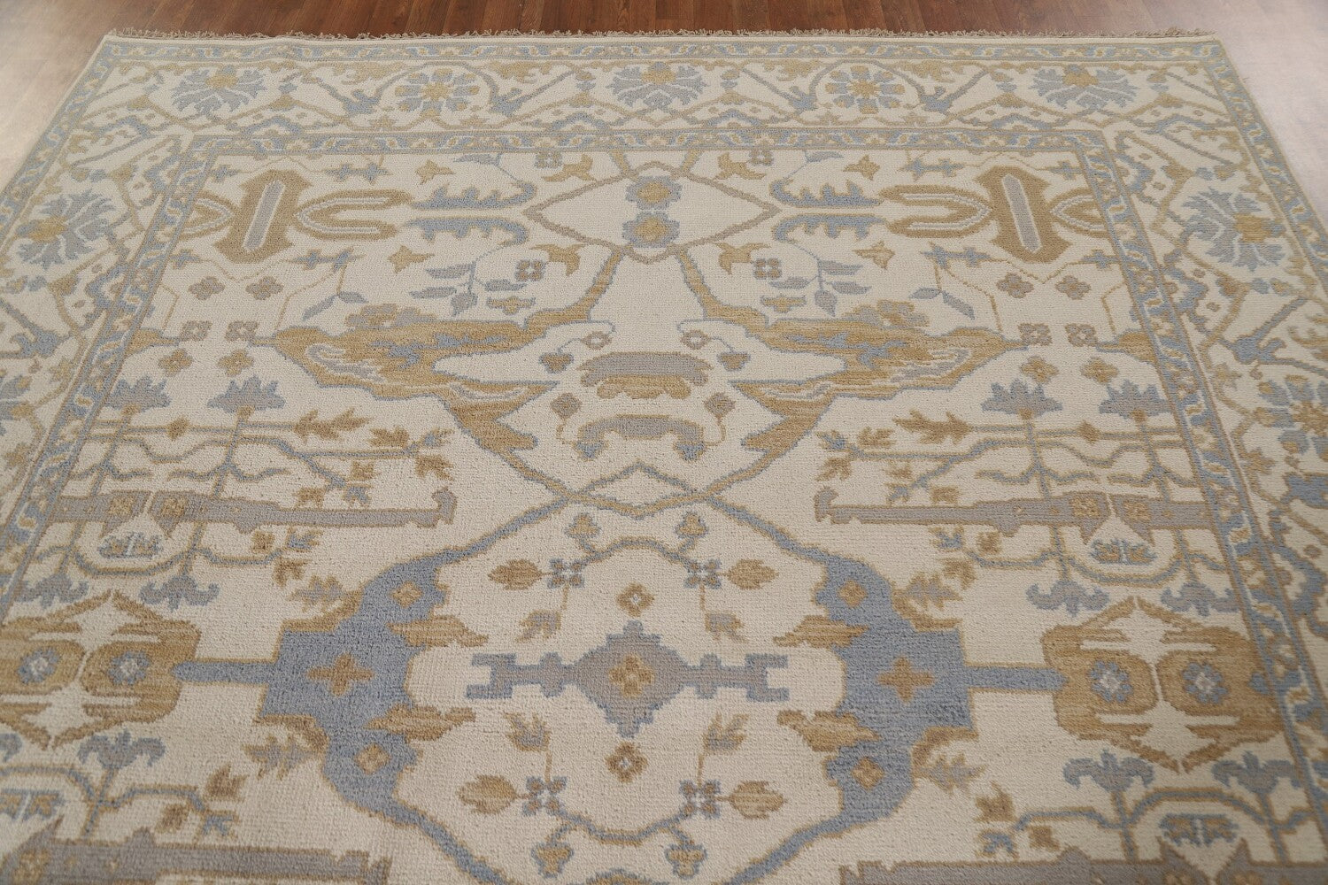 A Beautiful Genuine India Oushak rug is Hand Knotted by skillful weavers in India with 100% Wool Material. This rug is in New, First Quality condition. dimensions are 9' 11'' X 7' 10'' in foot and 302 X 239 in centimeter. the primary color is Beige & Ivories.