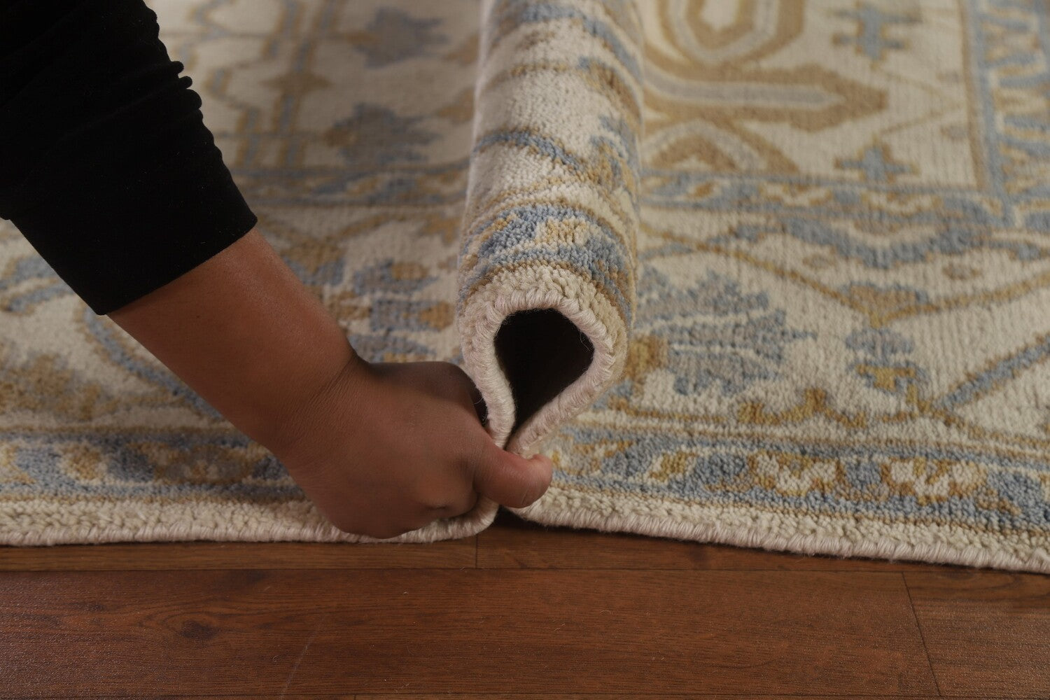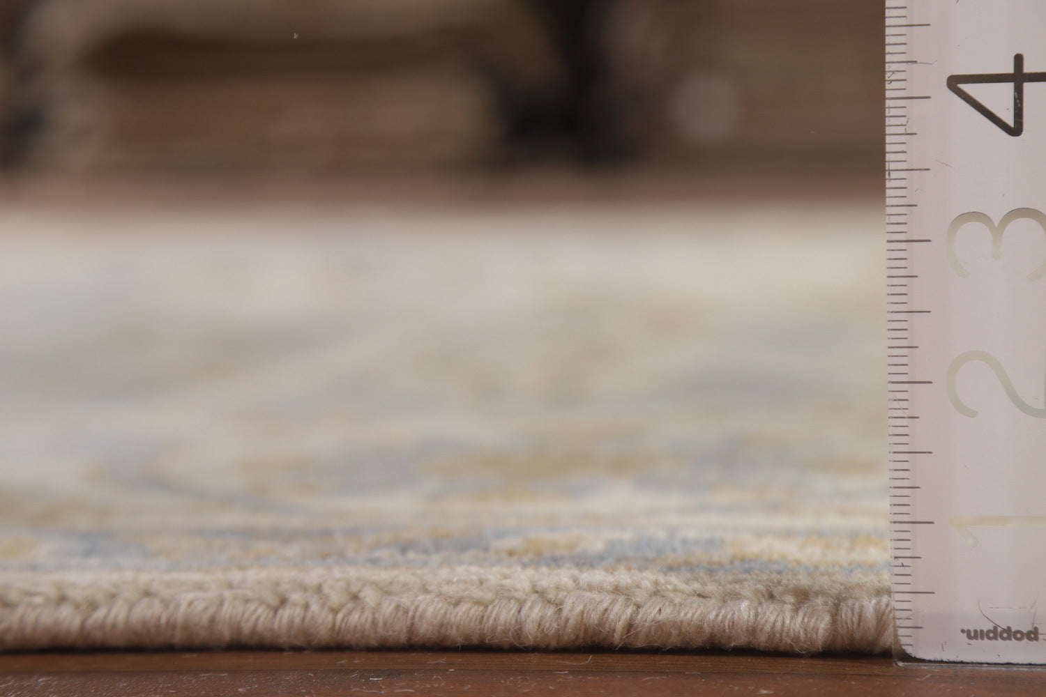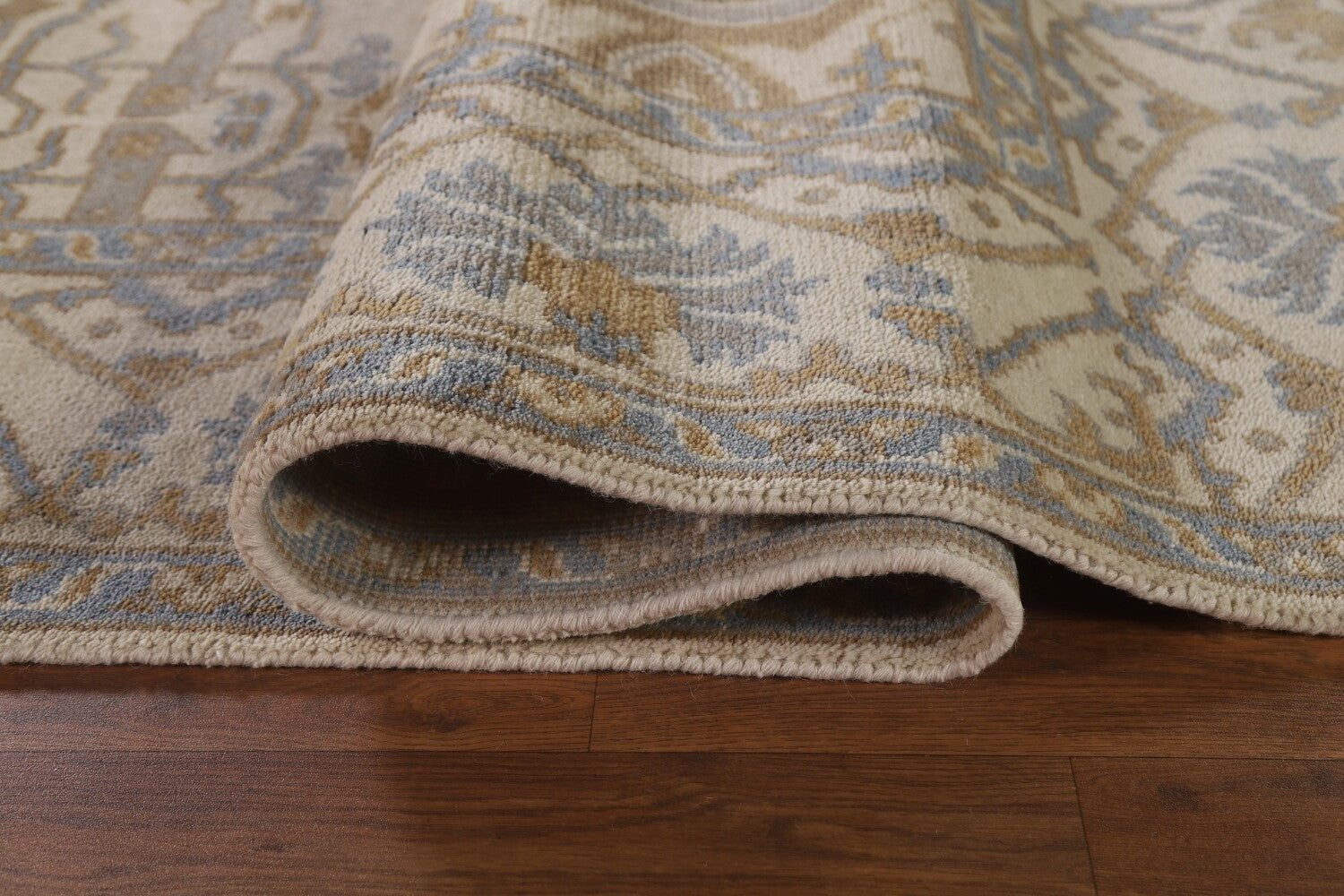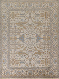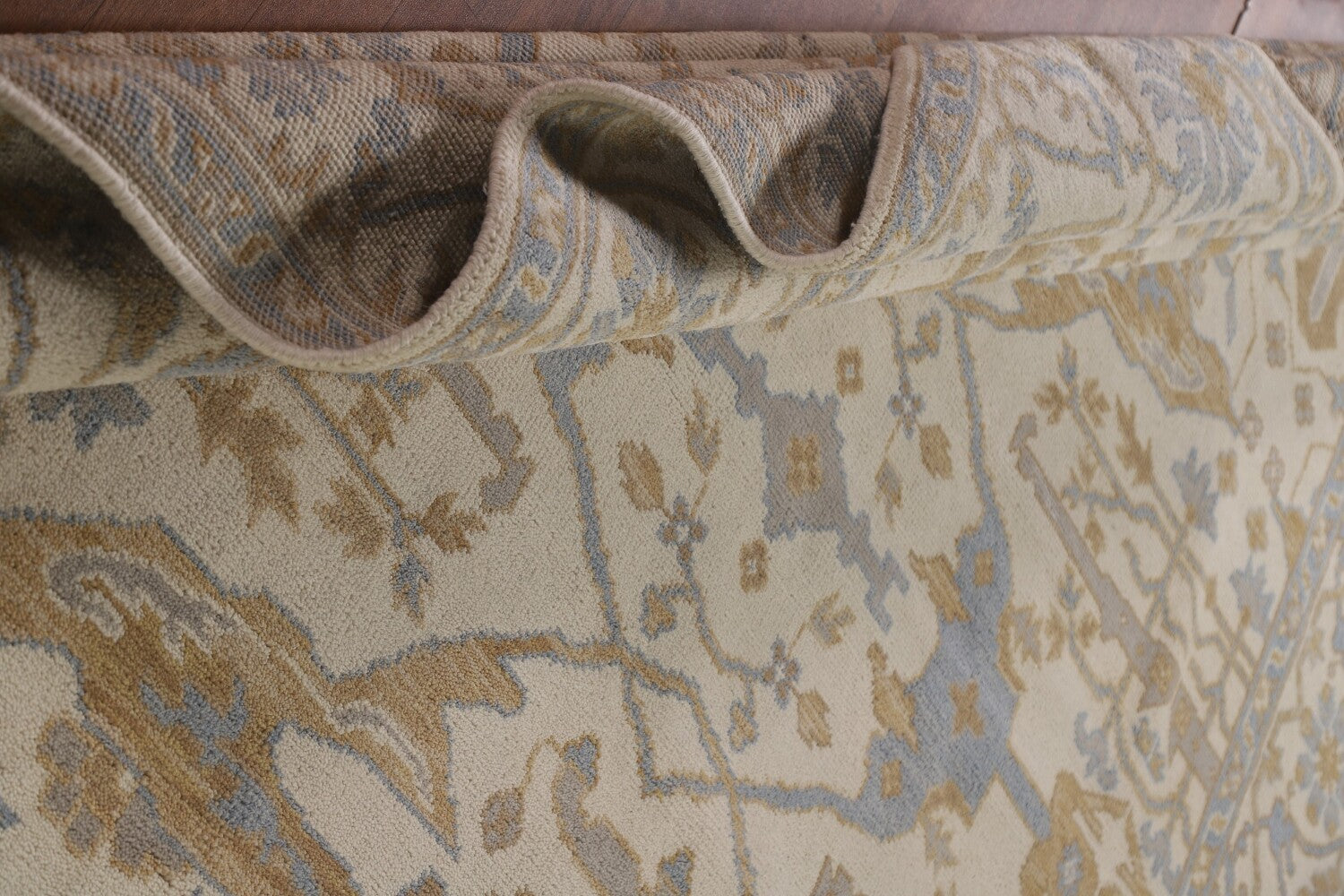 A Beautiful Genuine India Oushak rug is Hand Knotted by skillful weavers in India with 100% Wool Material. This rug is in New, First Quality condition. dimensions are 9' 11'' X 7' 10'' in foot and 302 X 239 in centimeter. the primary color is Beige & Ivories.