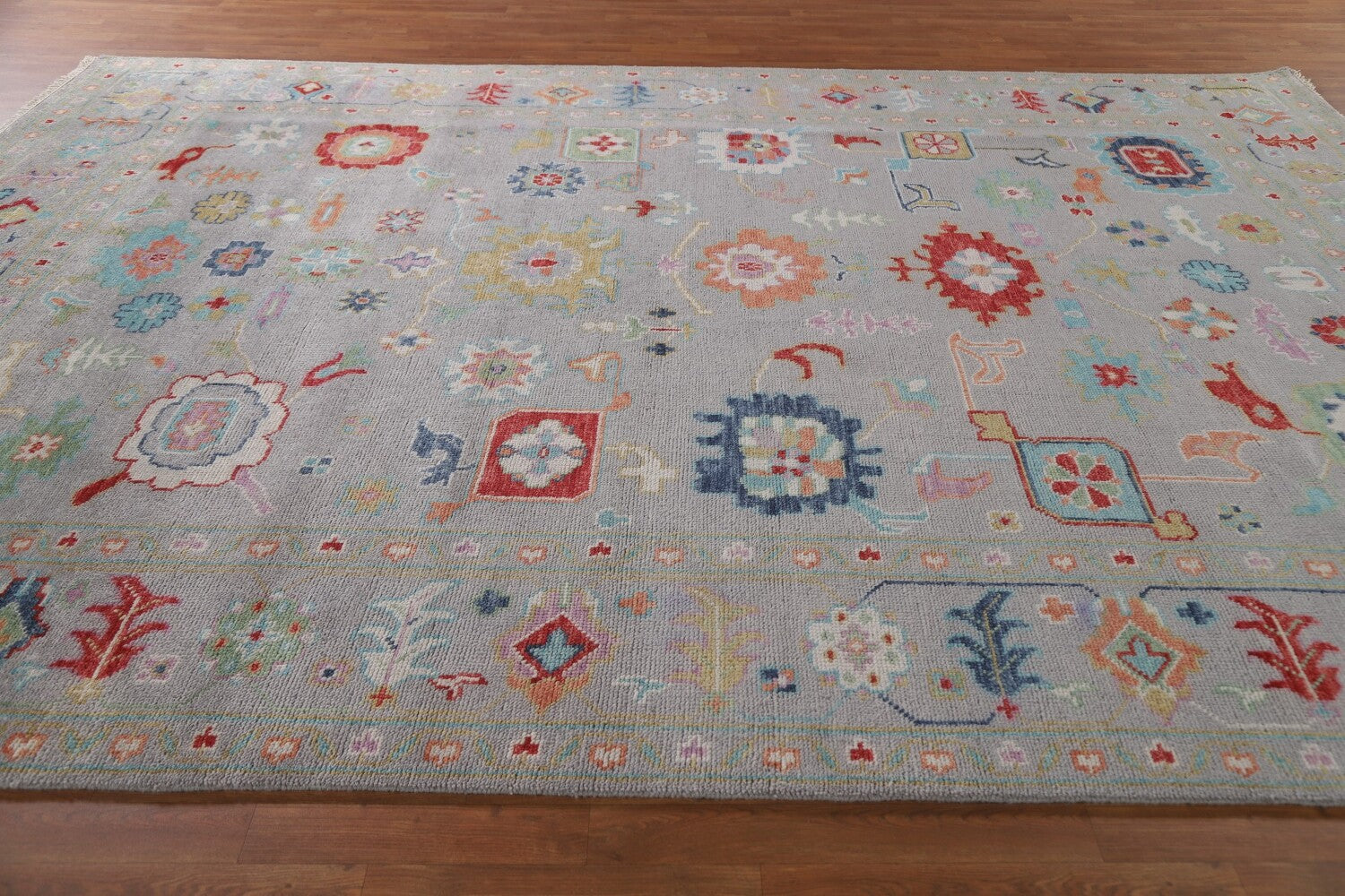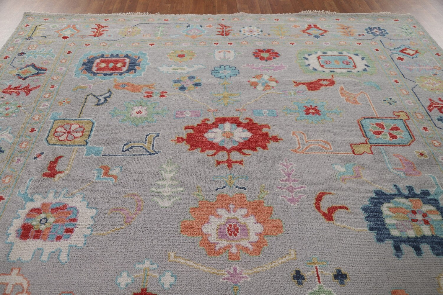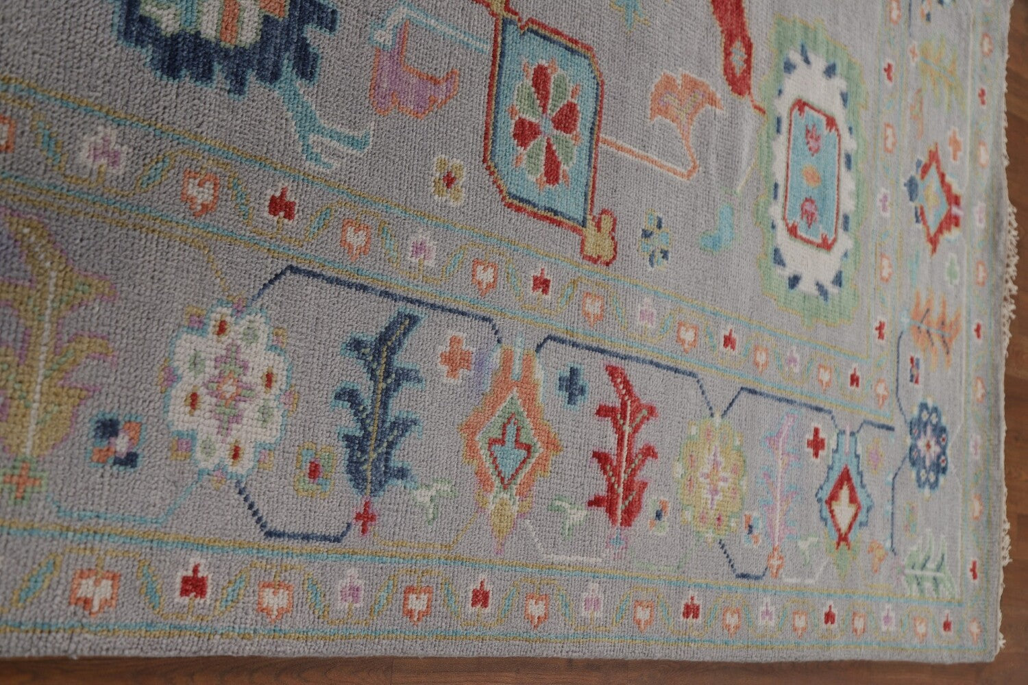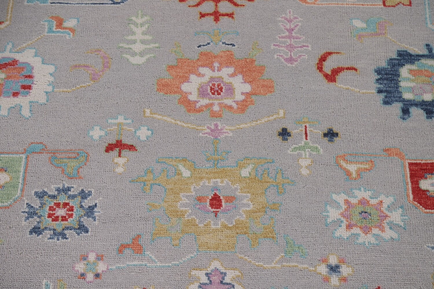 A Beautiful Genuine India Oushak rug is Hand Knotted by skillful weavers in India with 100% Wool Material. This rug is in New, First Quality condition. dimensions are 12' 0'' X 9' 0'' in foot and 366 X 274 in centimeter. the primary color is Greys & Charcoal.