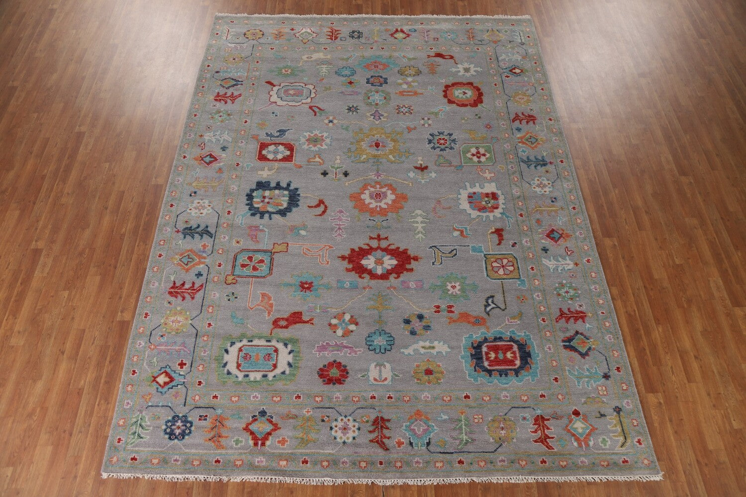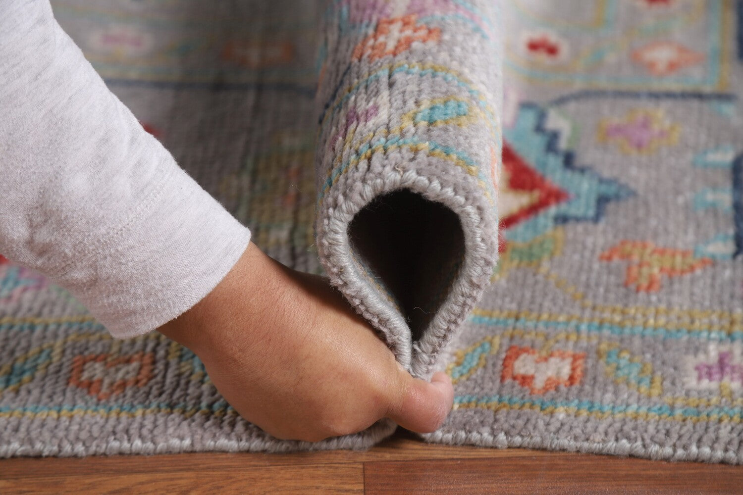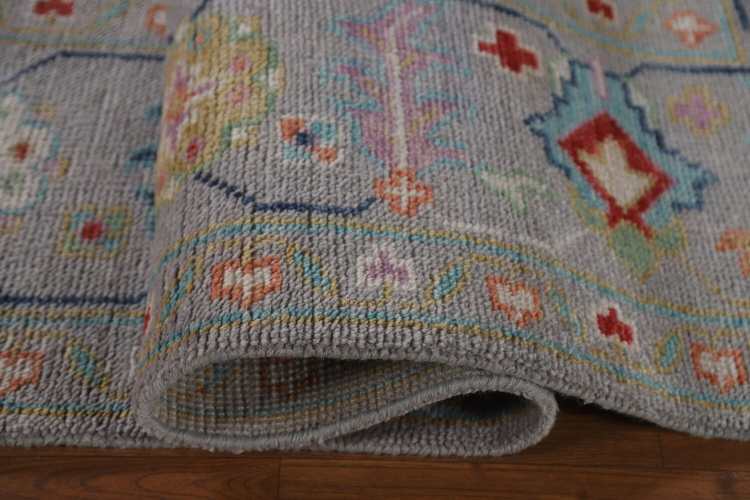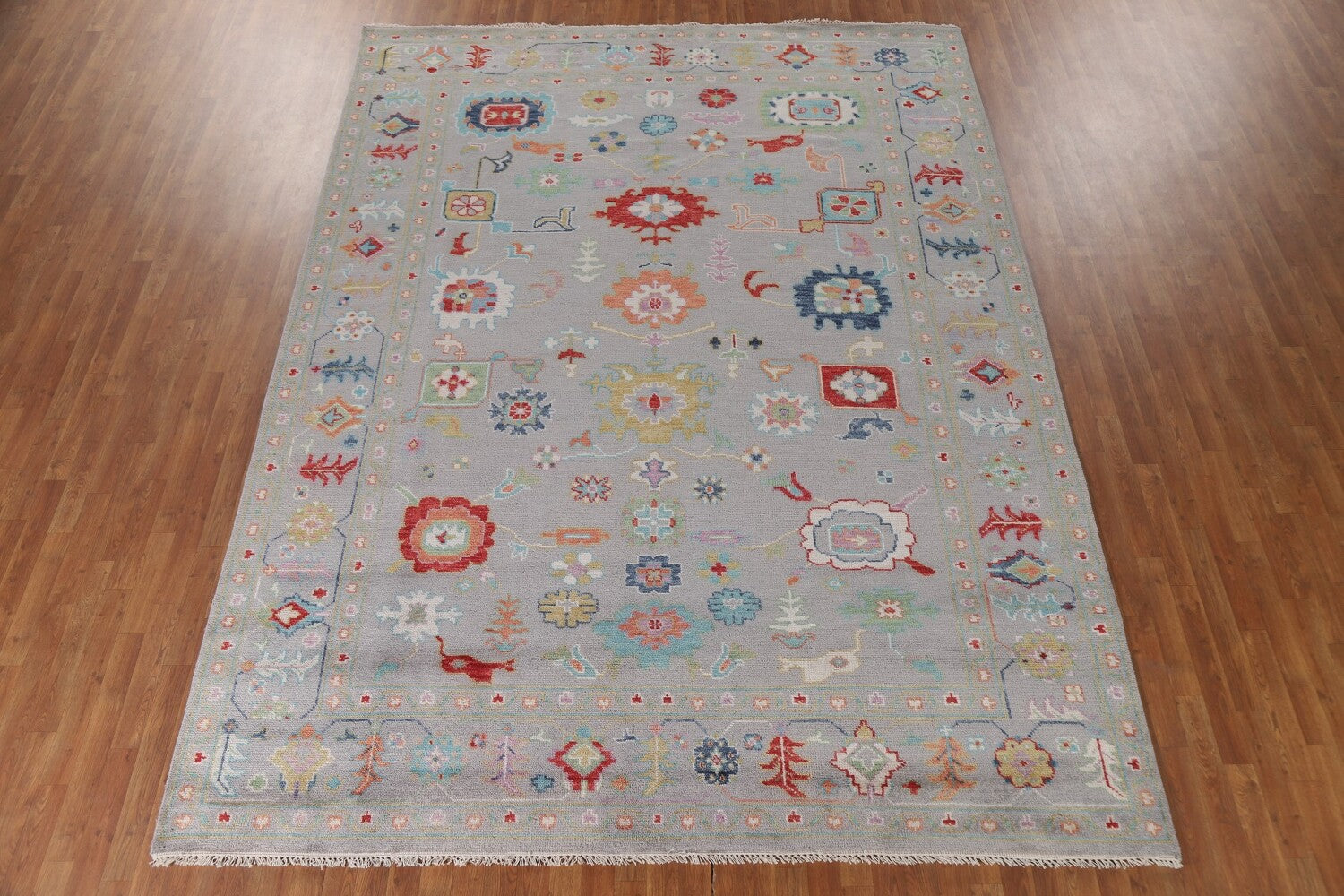 A Beautiful Genuine India Oushak rug is Hand Knotted by skillful weavers in India with 100% Wool Material. This rug is in New, First Quality condition. dimensions are 12' 0'' X 9' 0'' in foot and 366 X 274 in centimeter. the primary color is Greys & Charcoal.