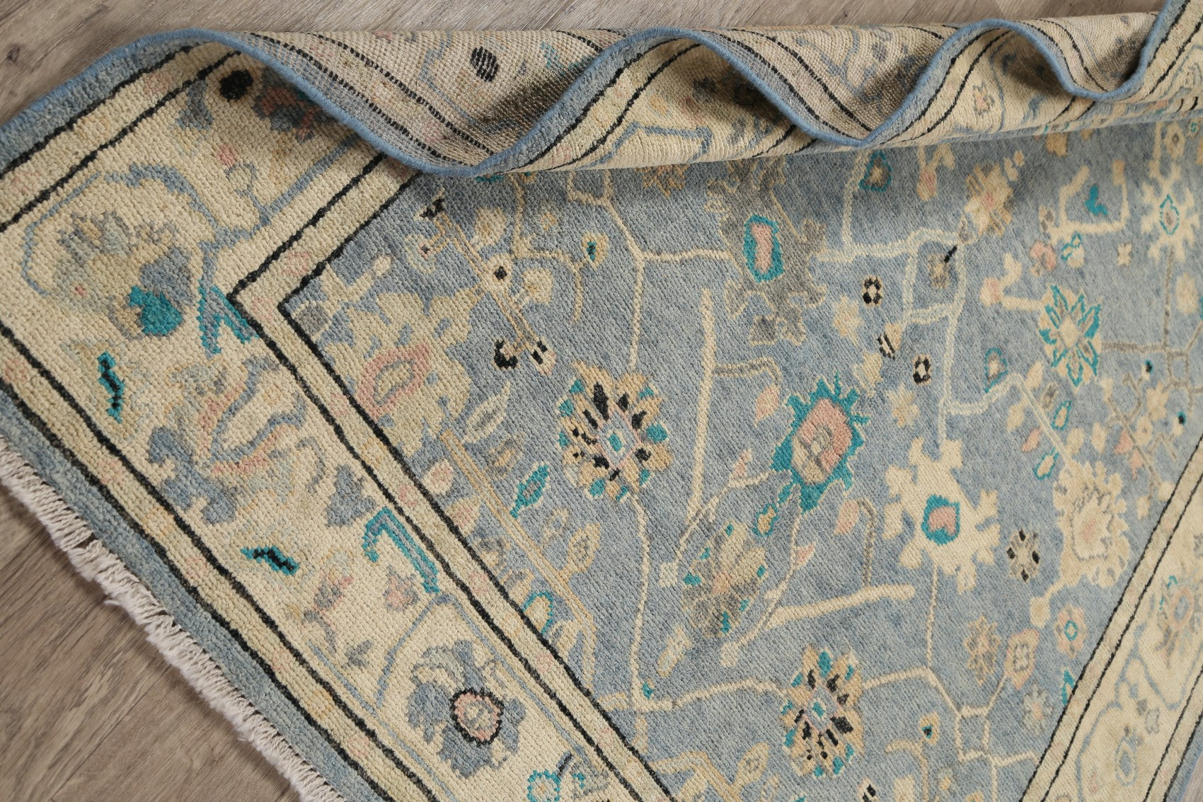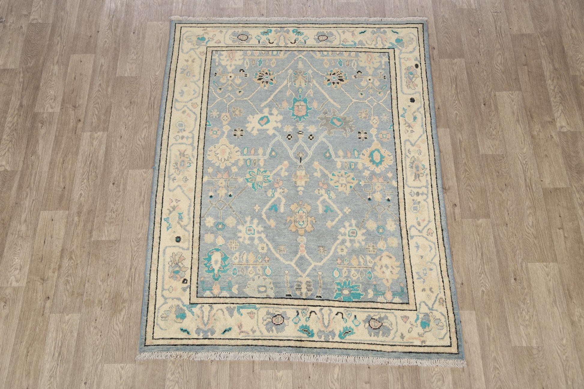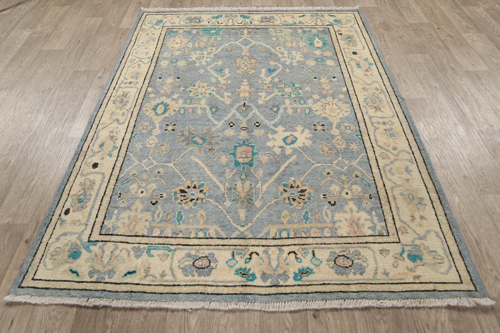 A Beautiful Genuine Turkey Oushak rug is Hand Knotted by skillful weavers in Turkey with 100% Wool Material. This rug is in New, First Quality condition. dimensions are 6' 3'' X 4' 9'' in foot and 191 X 145 in centimeter. the primary color is Greys & Charcoal.