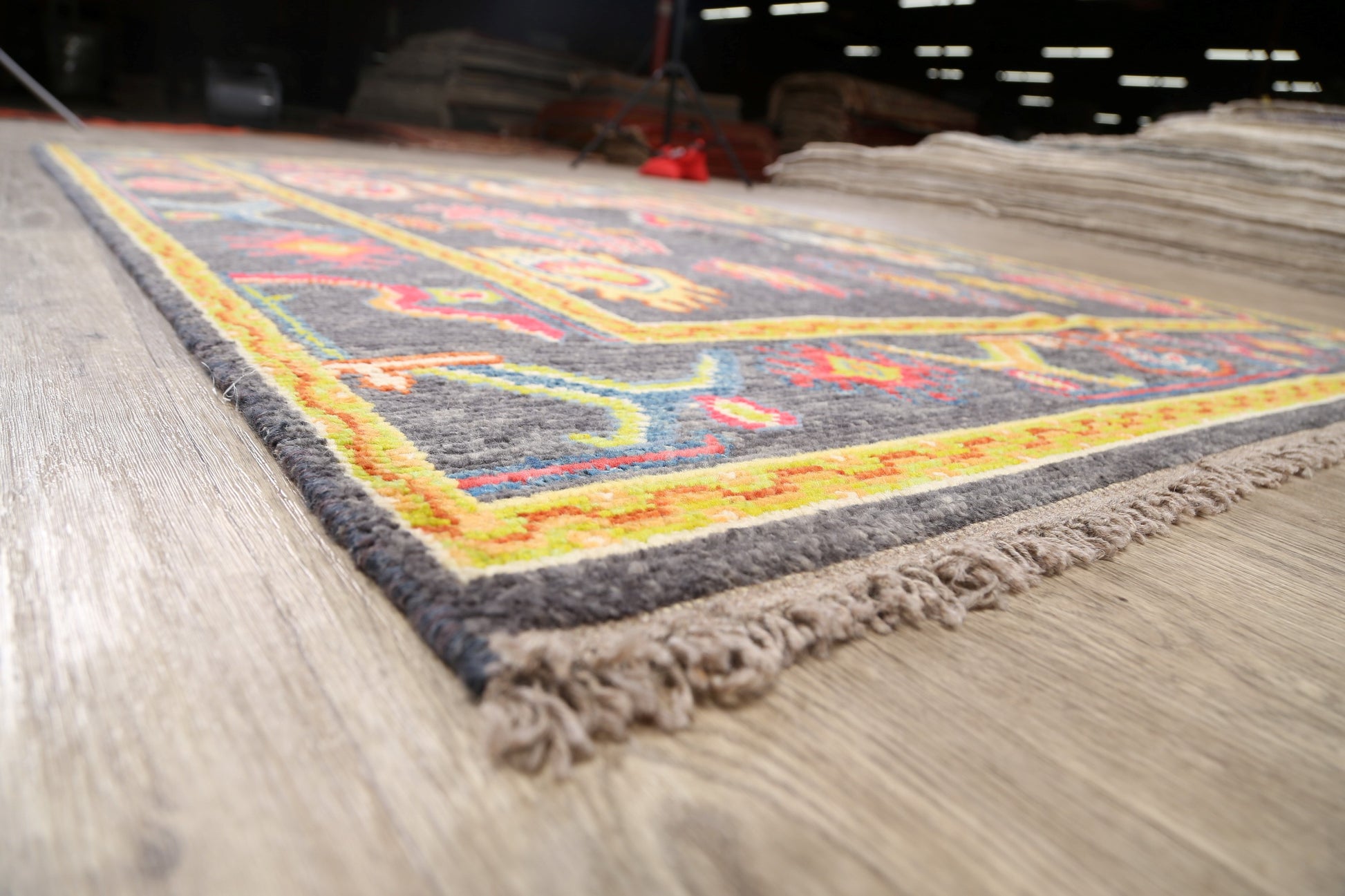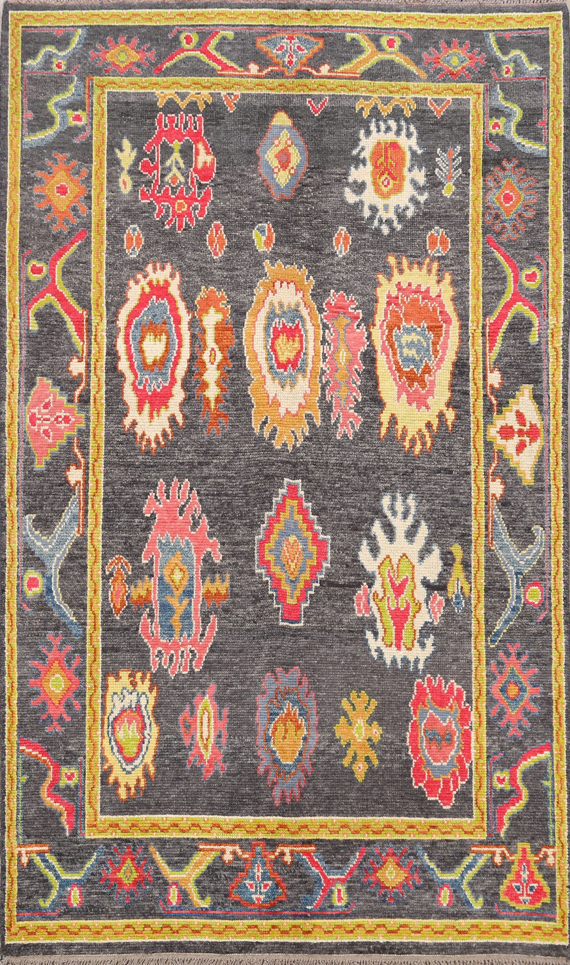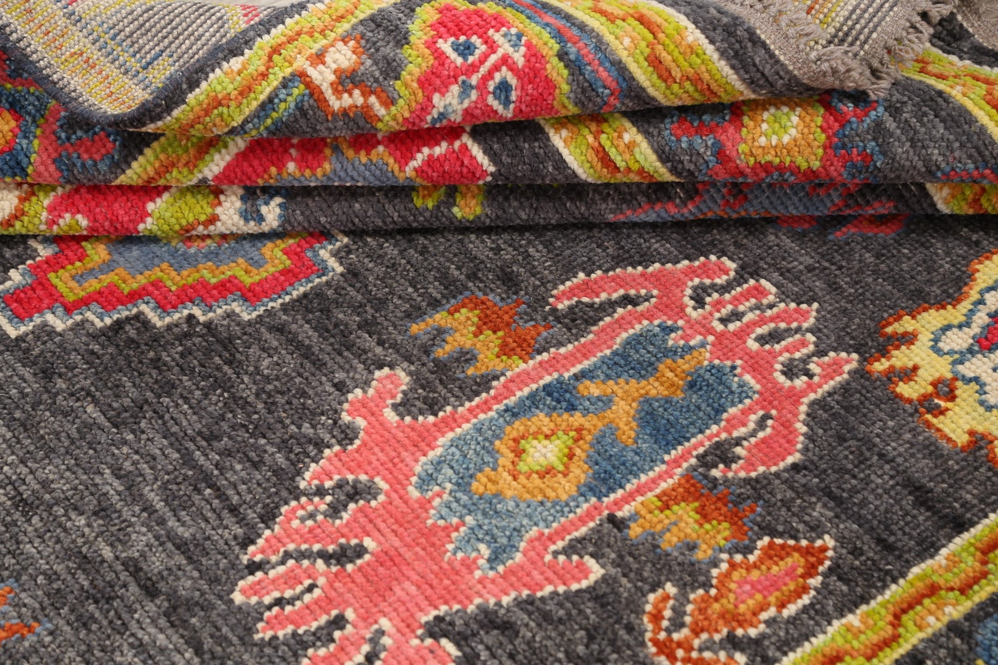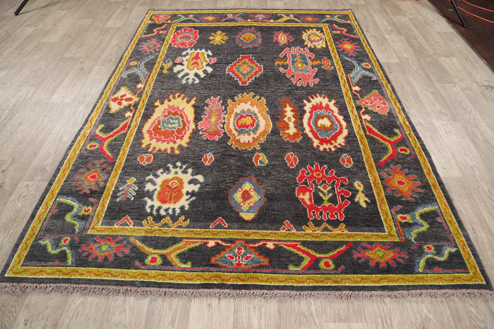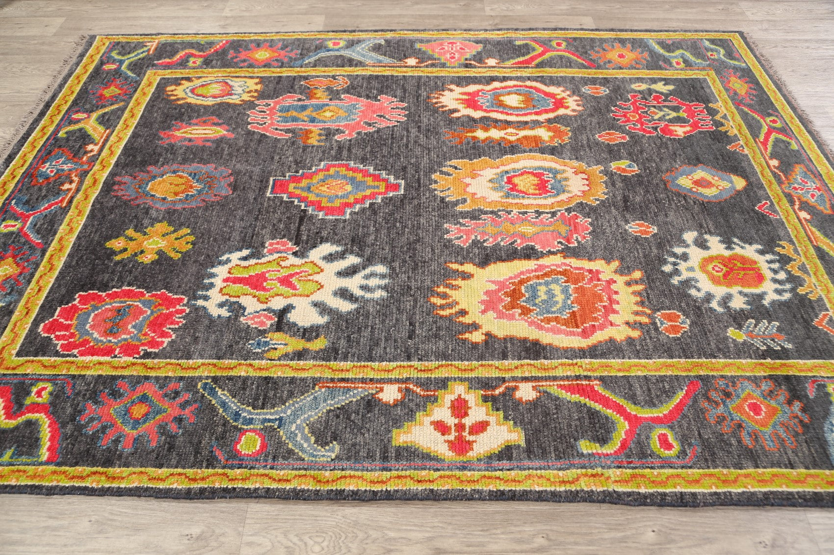 A Beautiful Genuine Turkey Oushak rug is Hand Knotted by skillful weavers in Turkey with 100% Wool Material. This rug is in New, First Quality condition. dimensions are 7' 7'' X 5' 6'' in foot and 231 X 168 in centimeter. the primary color is Greys & Charcoal.