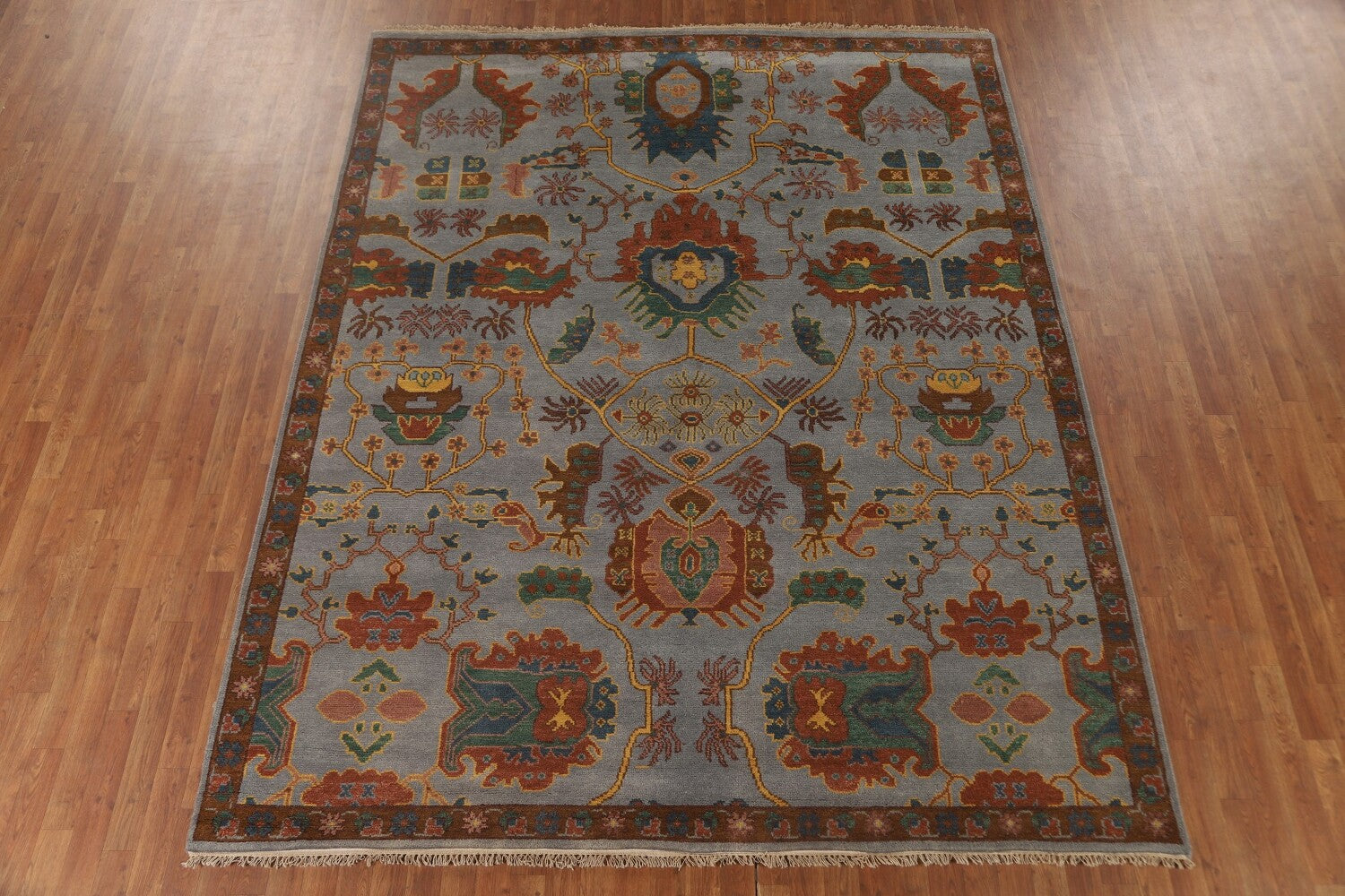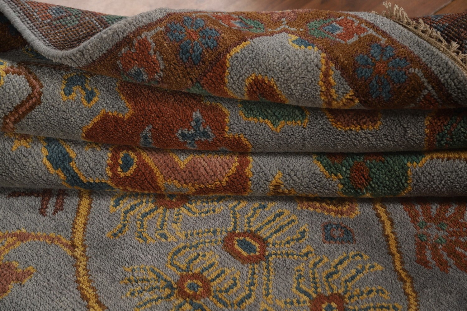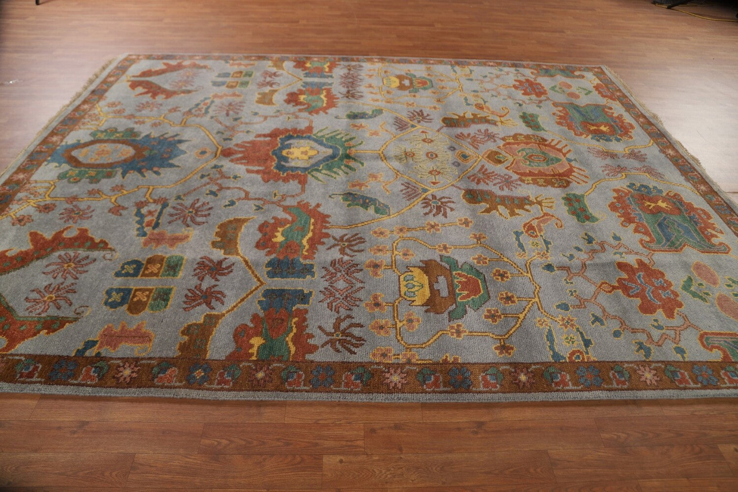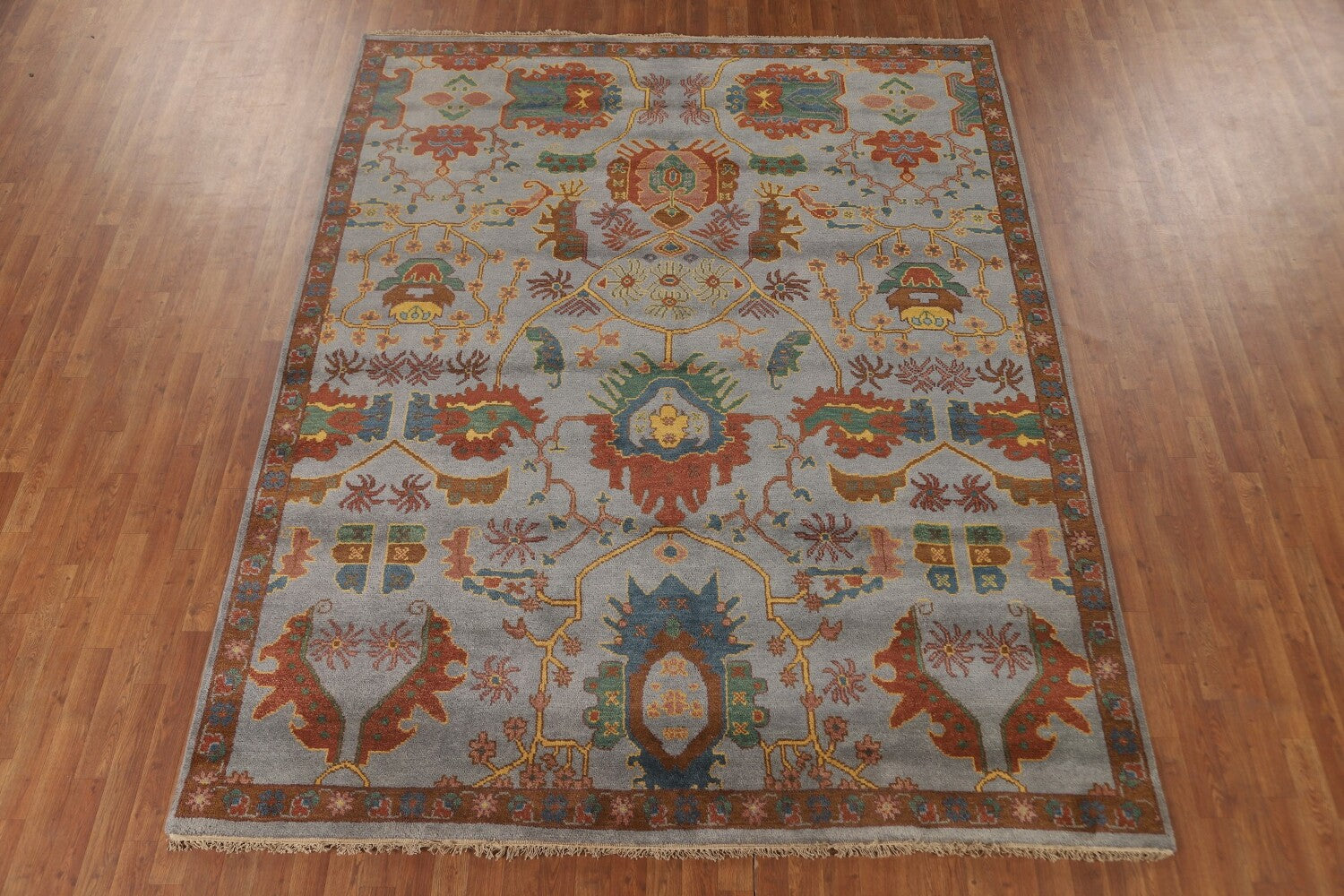 A Beautiful Genuine India Oushak rug is Hand Knotted by skillful weavers in India with 100% Wool Material. This rug is in New, First Quality condition. dimensions are 10' 0'' X 8' 0'' in foot and 305 X 244 in centimeter. the primary color is Greys & Charcoal.