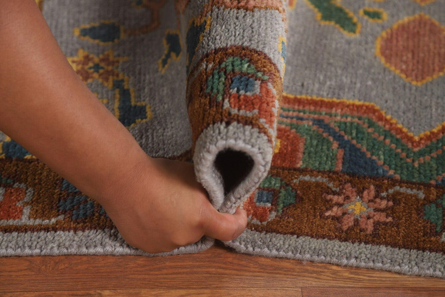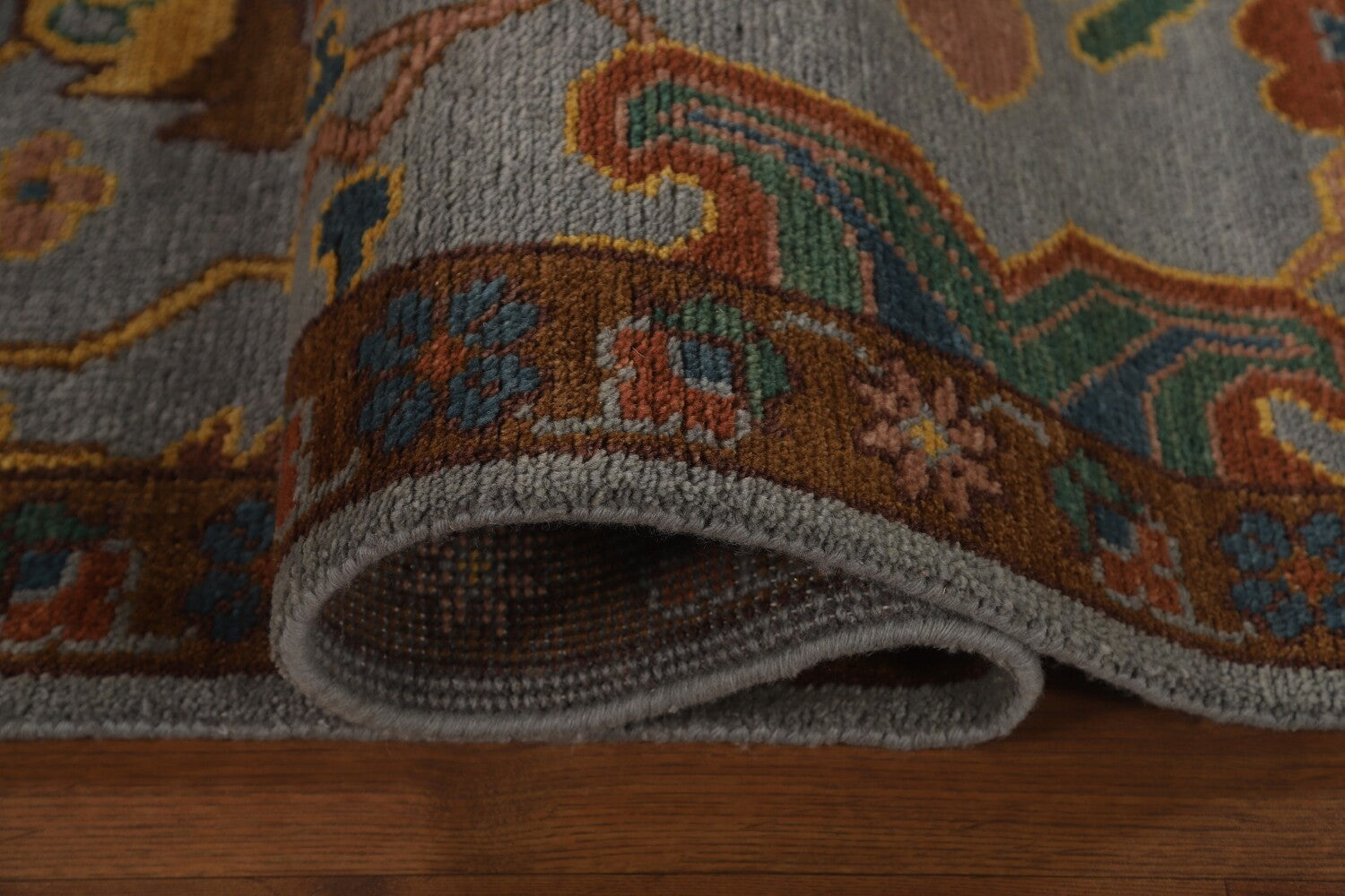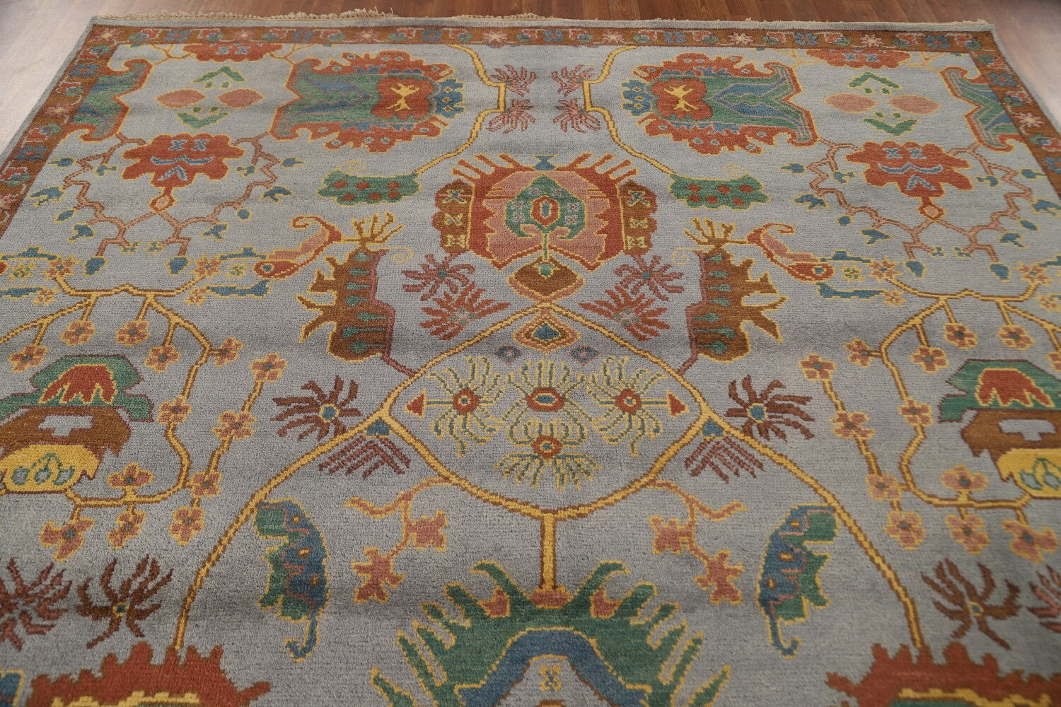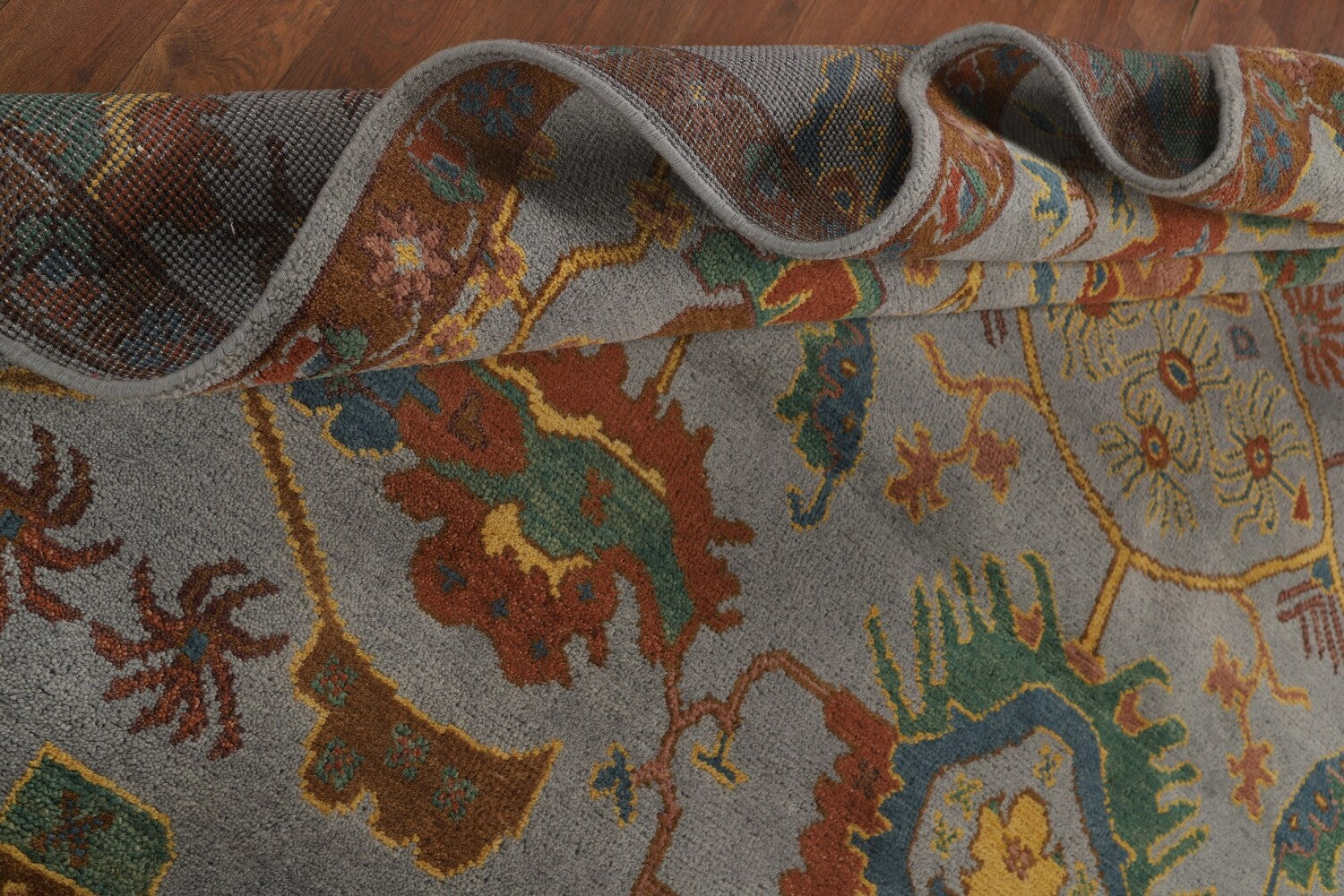 A Beautiful Genuine India Oushak rug is Hand Knotted by skillful weavers in India with 100% Wool Material. This rug is in New, First Quality condition. dimensions are 10' 0'' X 8' 0'' in foot and 305 X 244 in centimeter. the primary color is Greys & Charcoal.