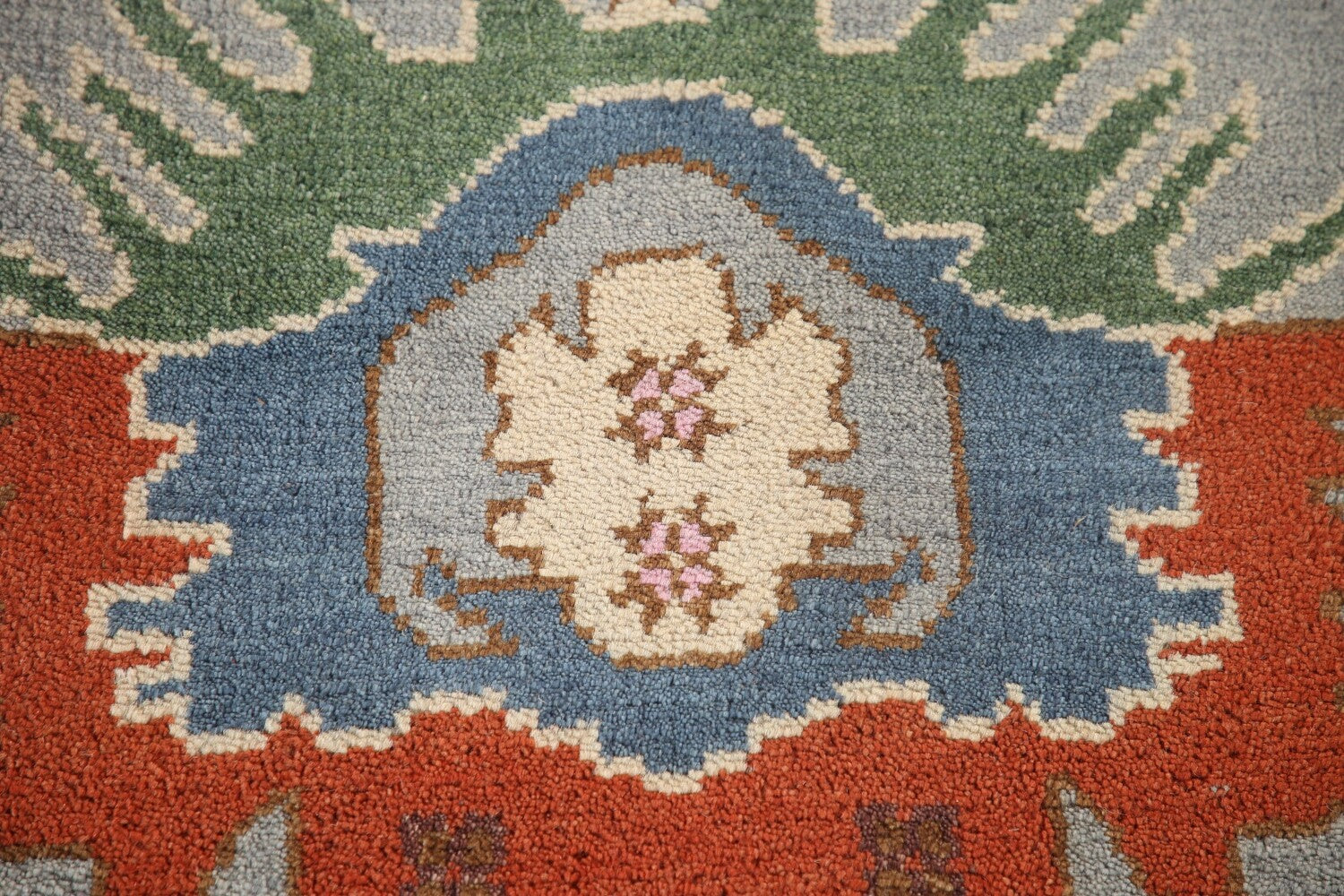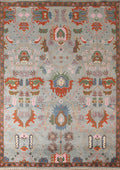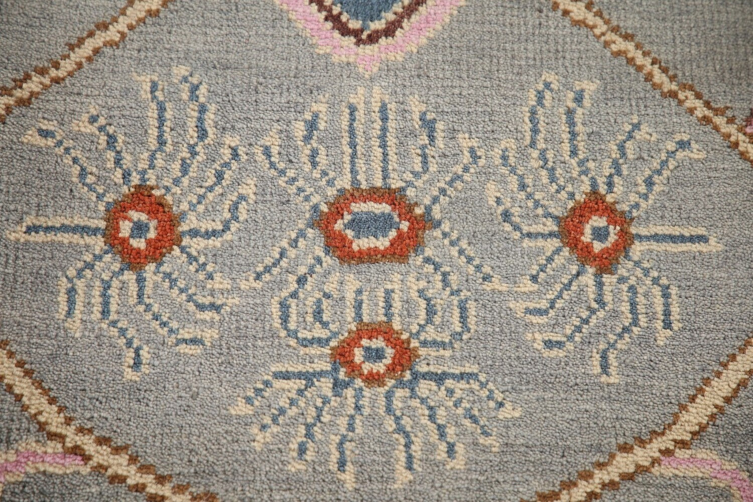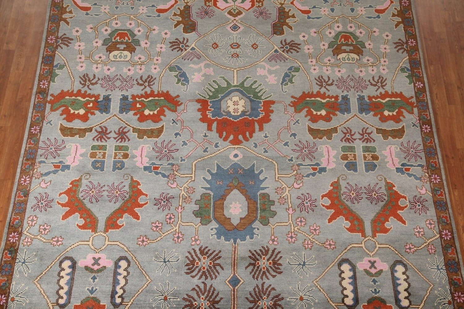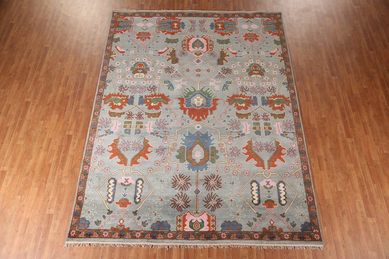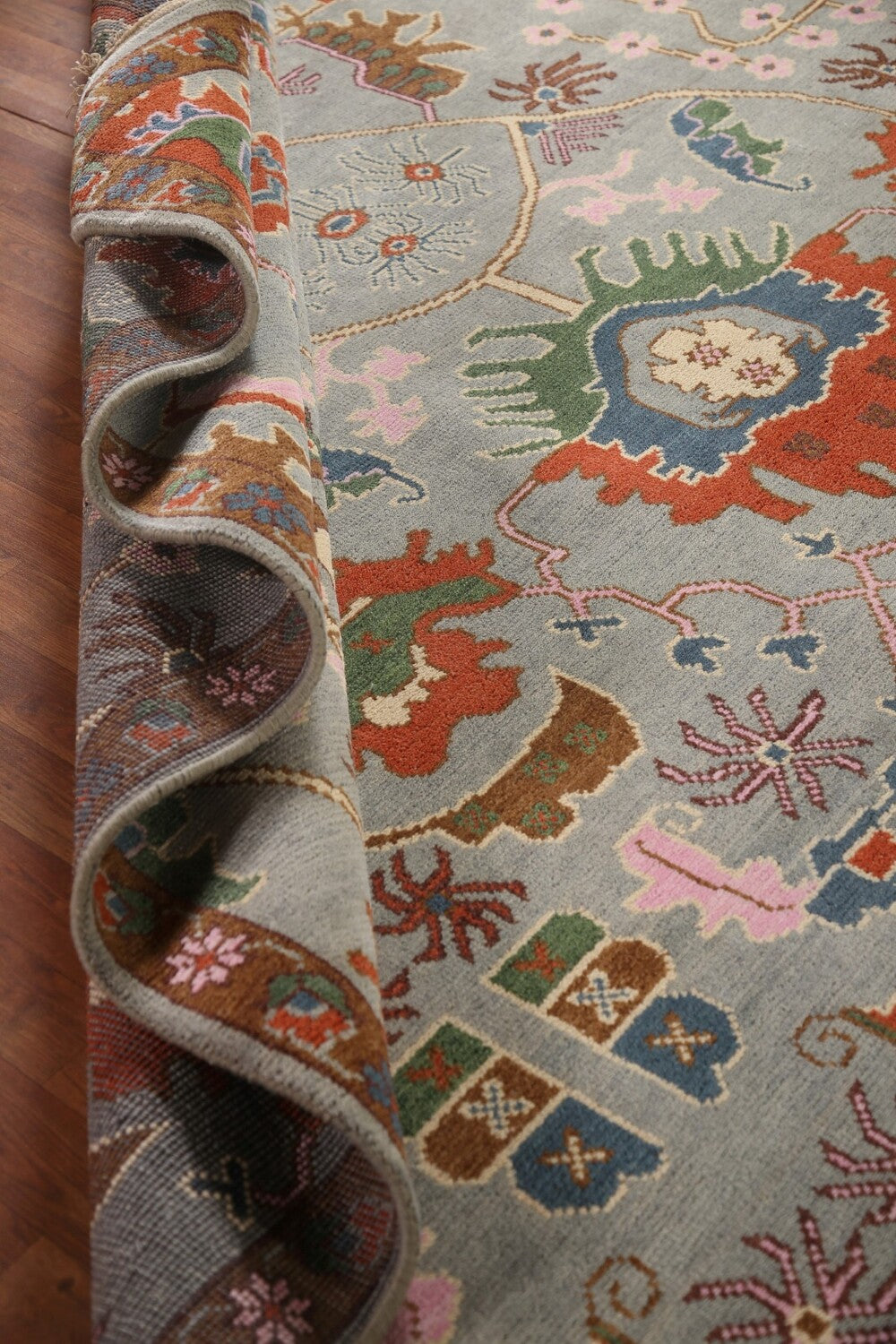 A Beautiful Genuine India Oushak rug is Hand Knotted by skillful weavers in India with 100% Wool Material. This rug is in New, First Quality condition. dimensions are 11' 10'' X 9' 0'' in foot and 361 X 274 in centimeter. the primary color is Greys & Charcoal.