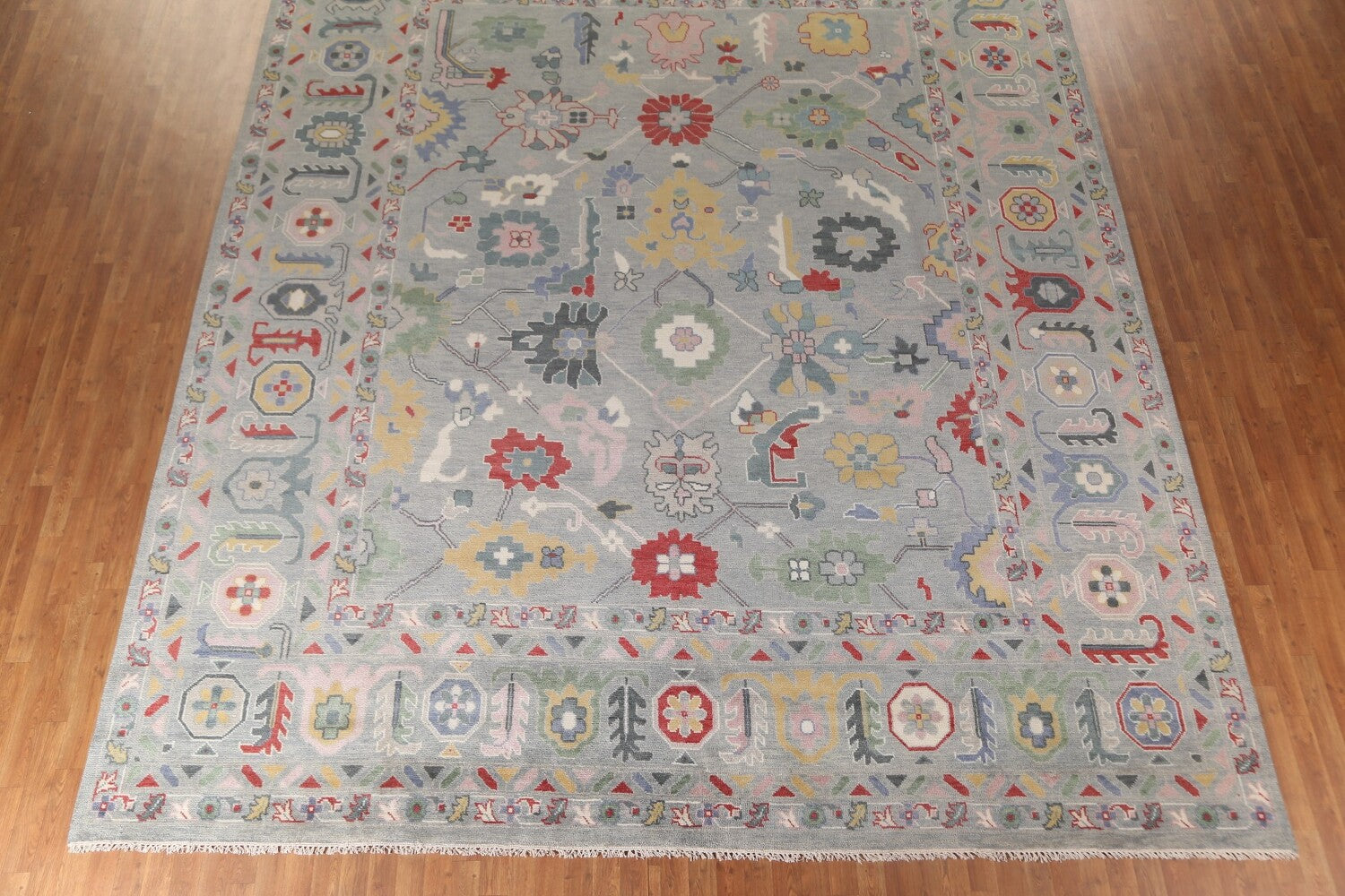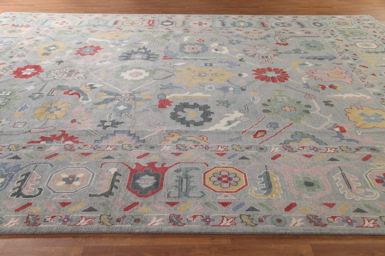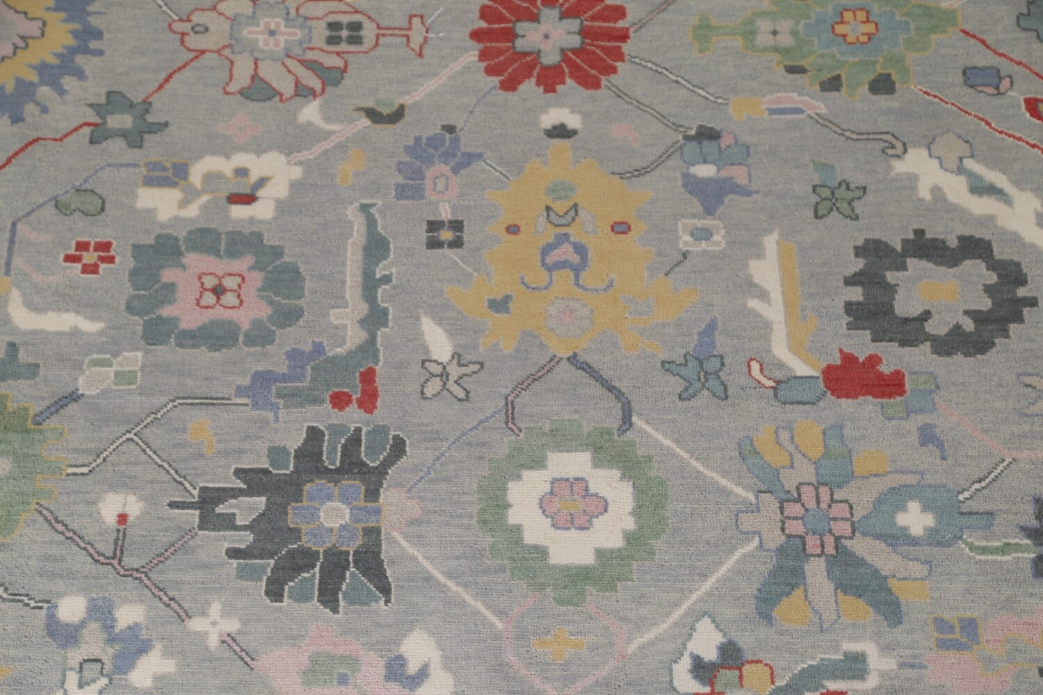 A Beautiful Genuine India Oushak rug is Hand Knotted by skillful weavers in India with 100% Wool Material. This rug is in New, First Quality condition. dimensions are 14' 8'' X 12' 1'' in foot and 447 X 368 in centimeter. the primary color is Greys & Charcoal.