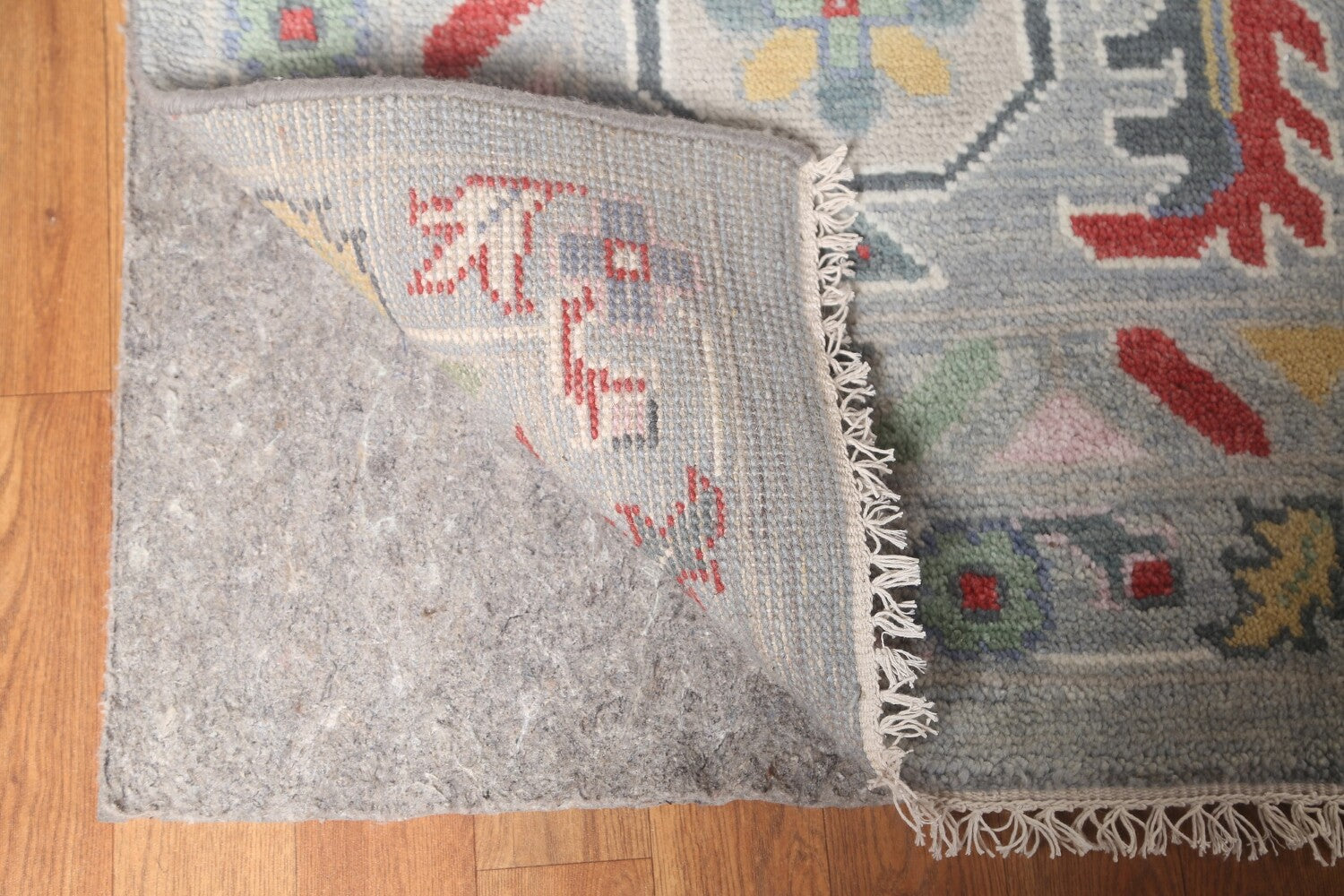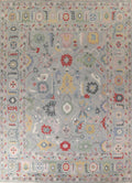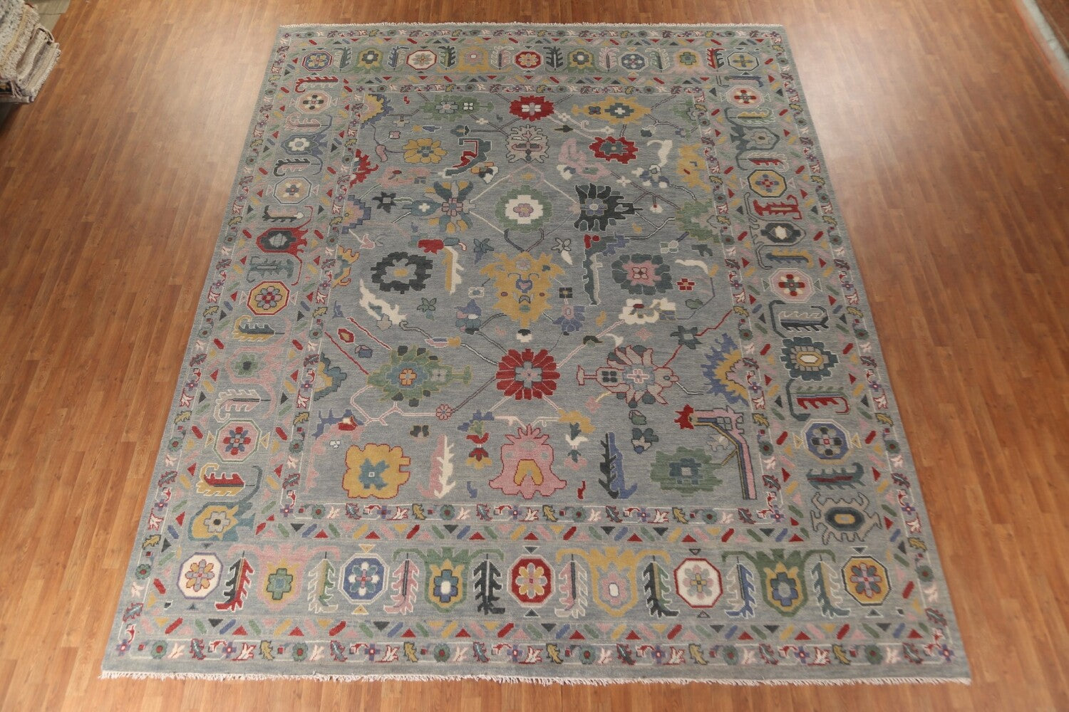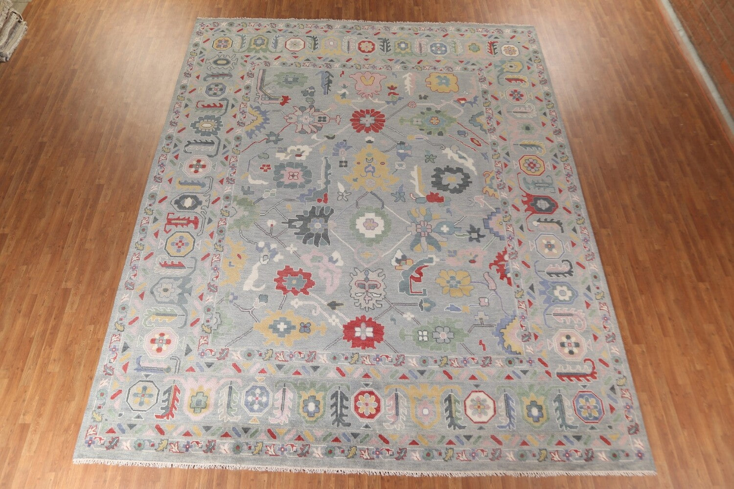 A Beautiful Genuine India Oushak rug is Hand Knotted by skillful weavers in India with 100% Wool Material. This rug is in New, First Quality condition. dimensions are 14' 8'' X 12' 1'' in foot and 447 X 368 in centimeter. the primary color is Greys & Charcoal.