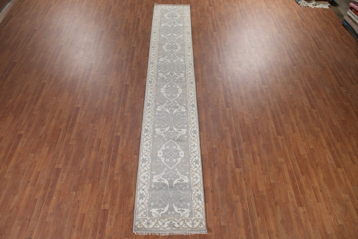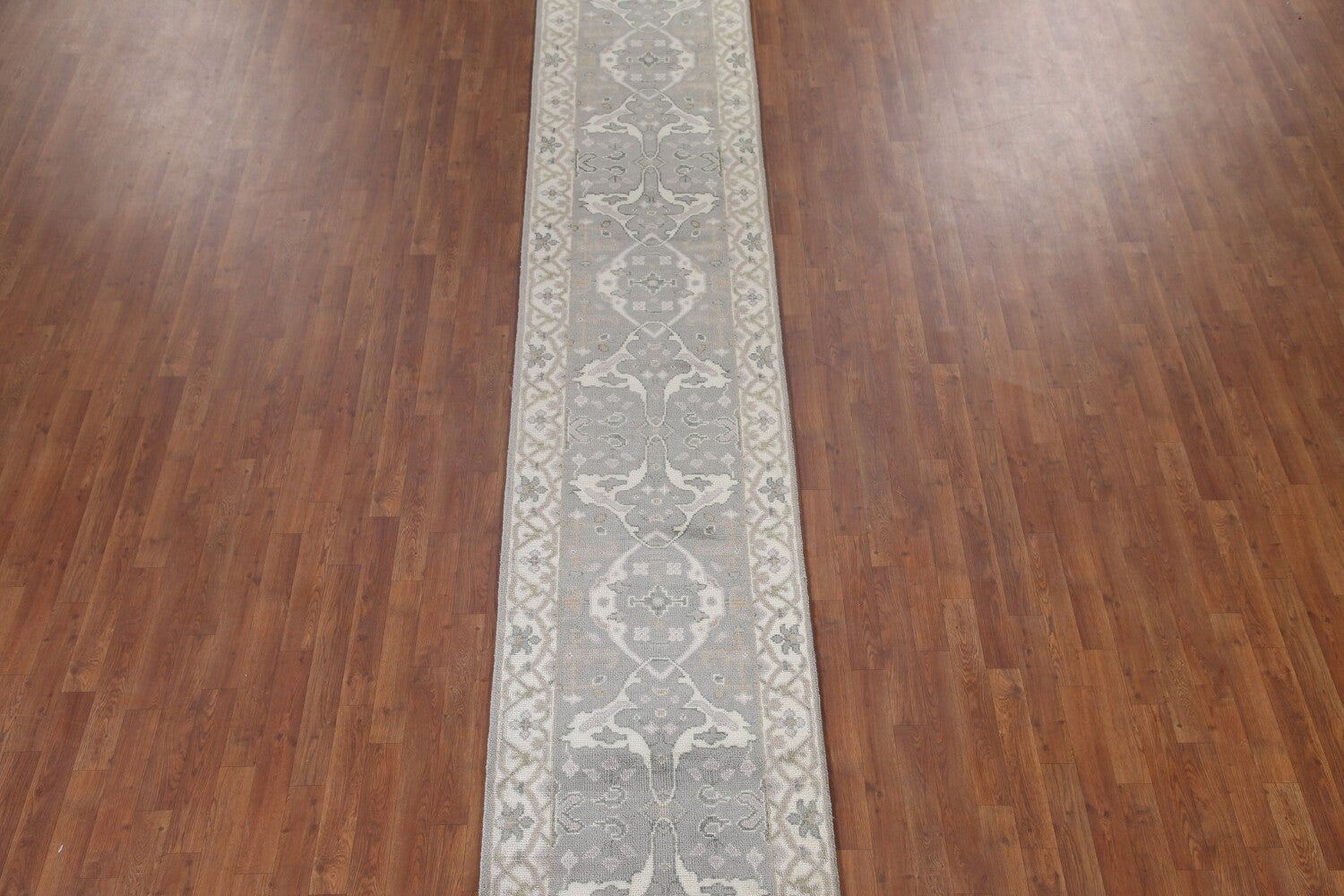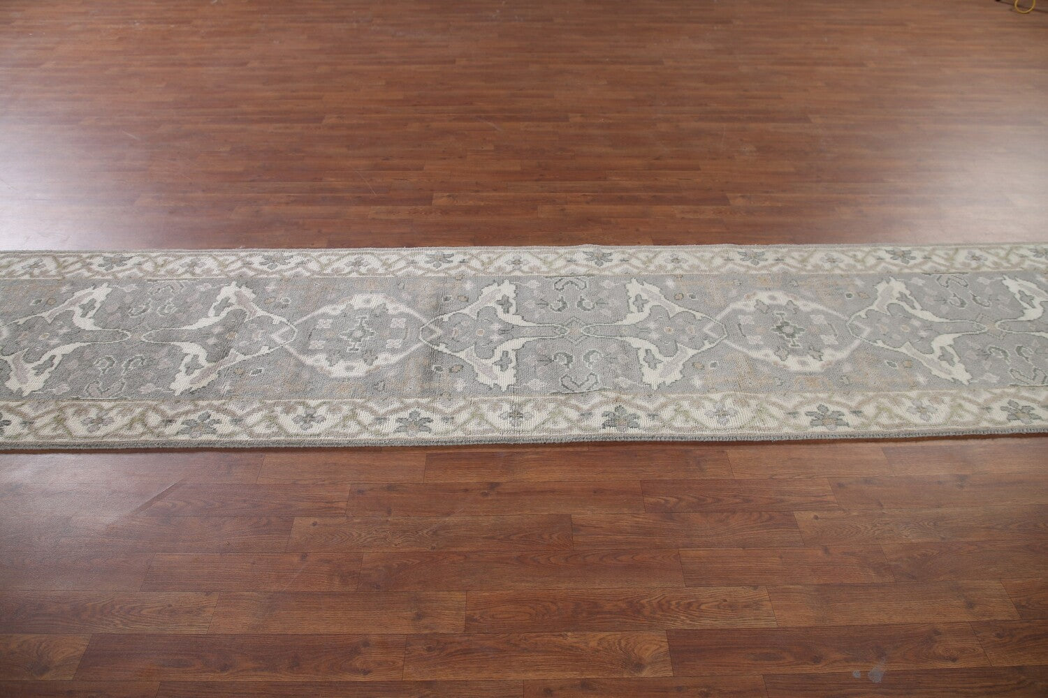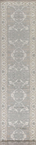 A Beautiful Genuine India Oushak rug is Hand Knotted by skillful weavers in India with 100% Wool Material. This rug is in New, First Quality condition. dimensions are 15' 8'' X 2' 7'' in foot and 478 X 79 in centimeter. the primary color is Greys & Charcoal.