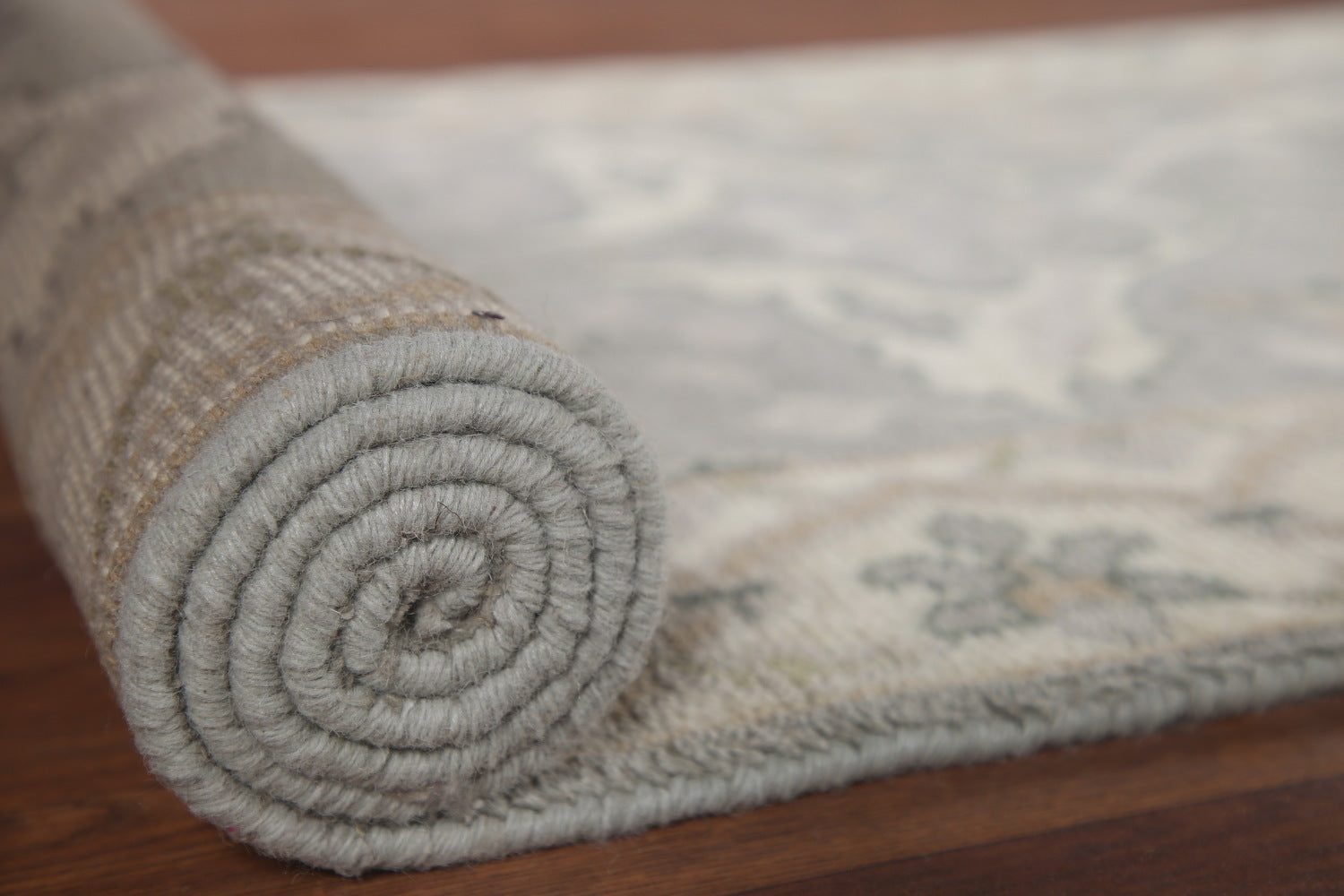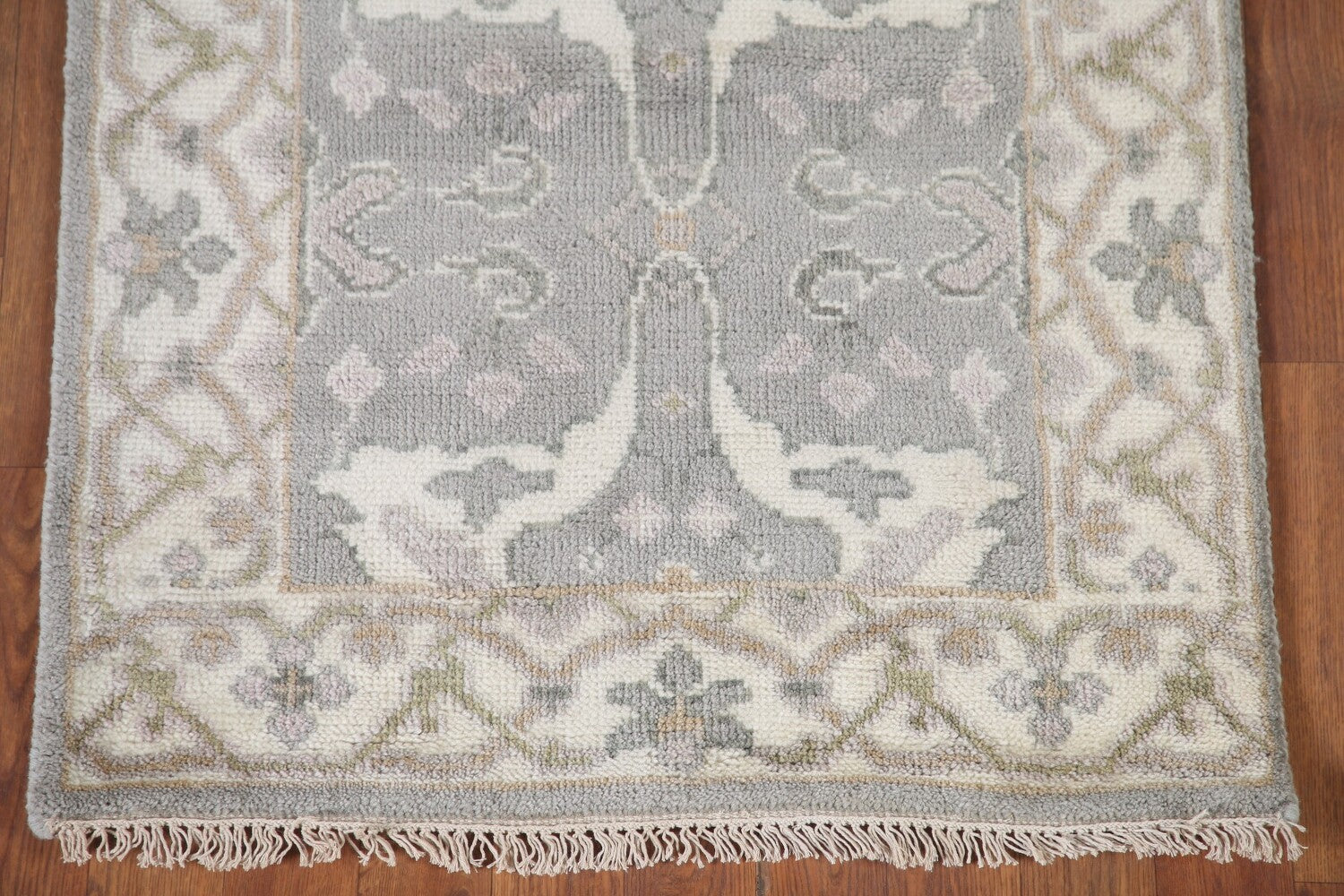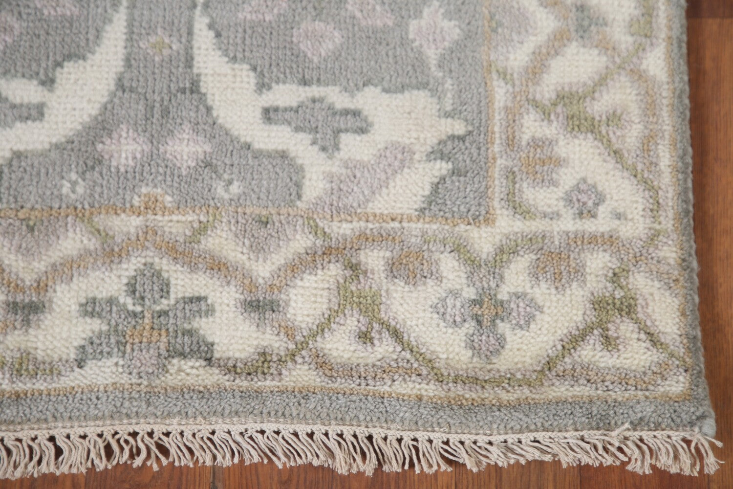 A Beautiful Genuine India Oushak rug is Hand Knotted by skillful weavers in India with 100% Wool Material. This rug is in New, First Quality condition. dimensions are 15' 8'' X 2' 7'' in foot and 478 X 79 in centimeter. the primary color is Greys & Charcoal.