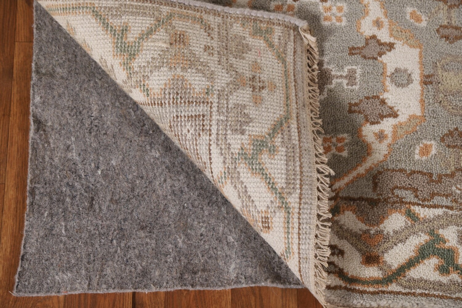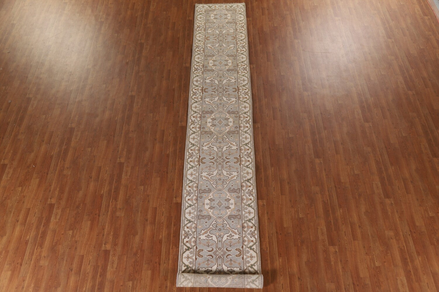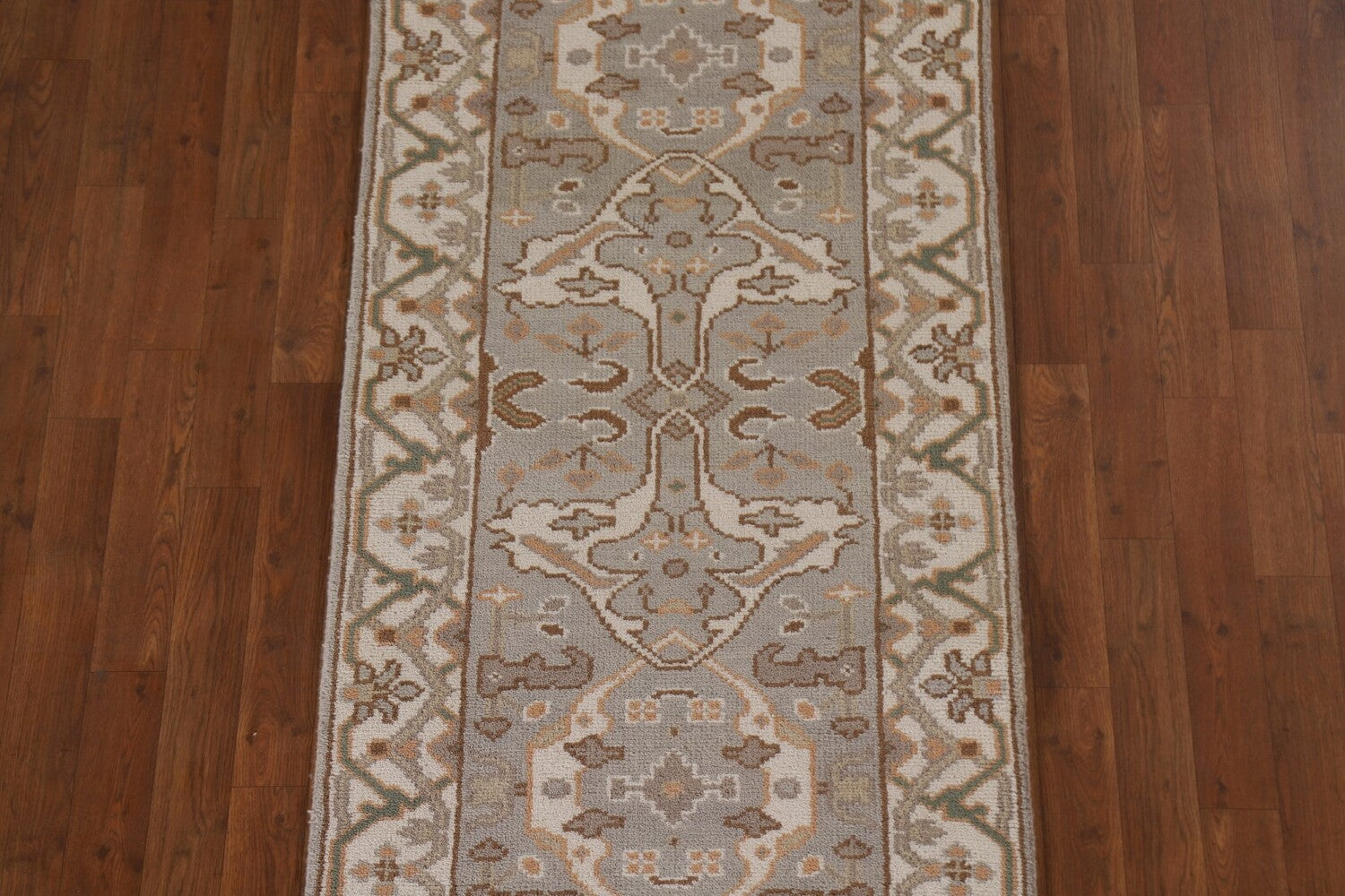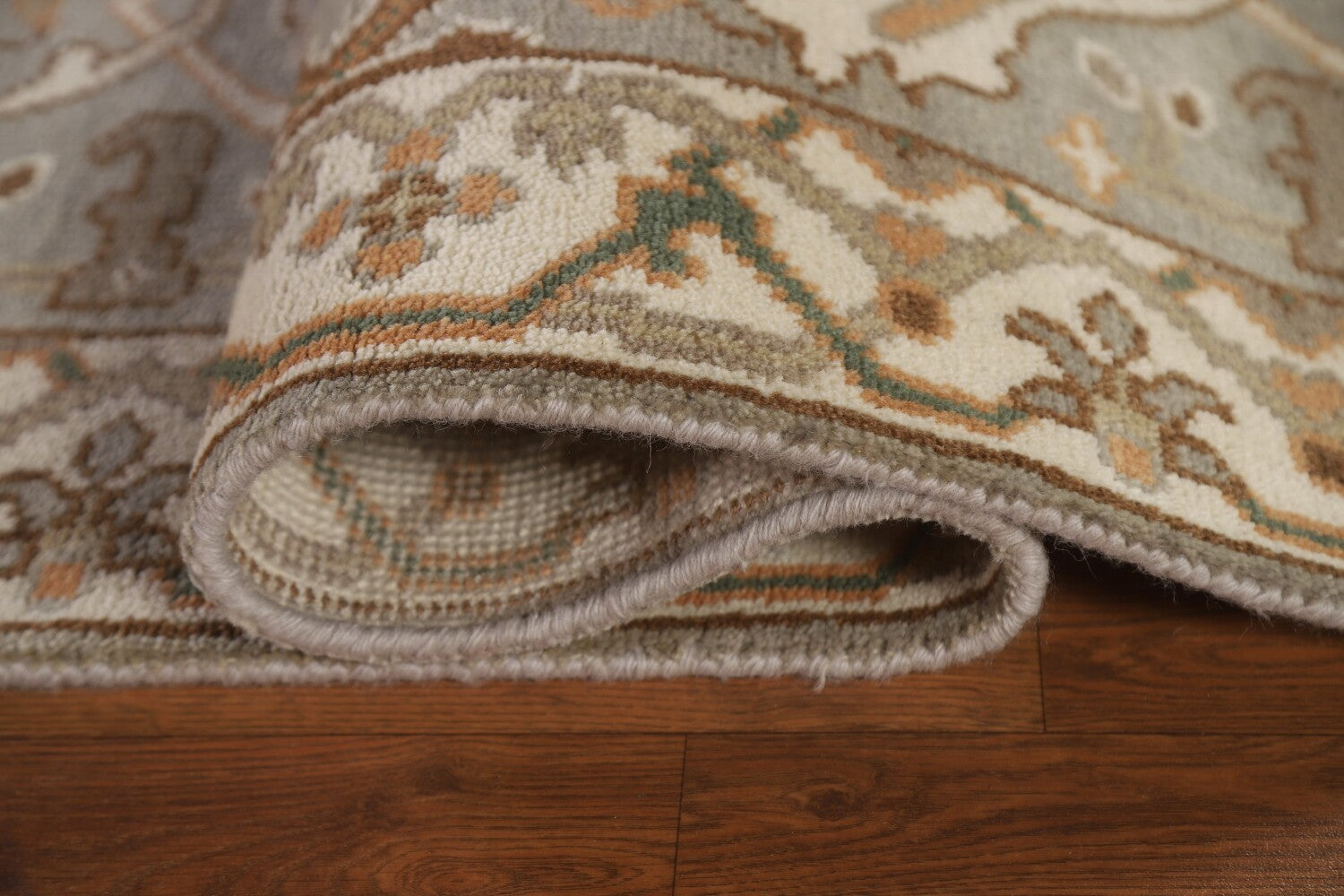 A Beautiful Genuine India Oushak rug is Hand Knotted by skillful weavers in India with 100% Wool Material. This rug is in New, First Quality condition. dimensions are 15' 6'' X 2' 7'' in foot and 472 X 79 in centimeter. the primary color is Greys & Charcoal.