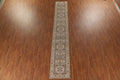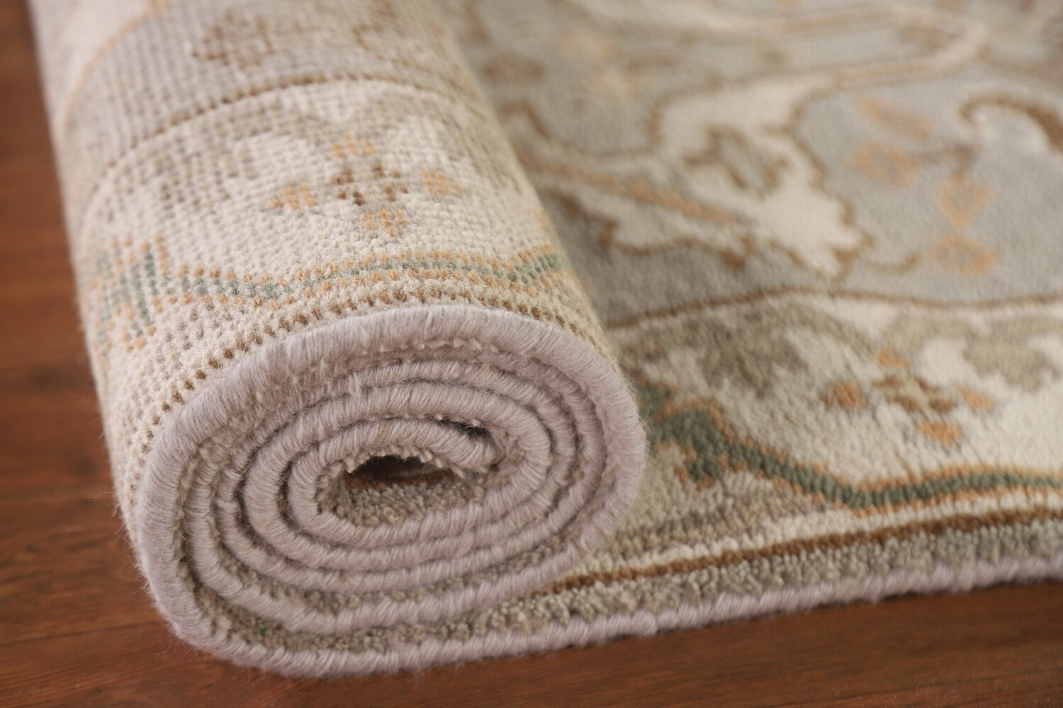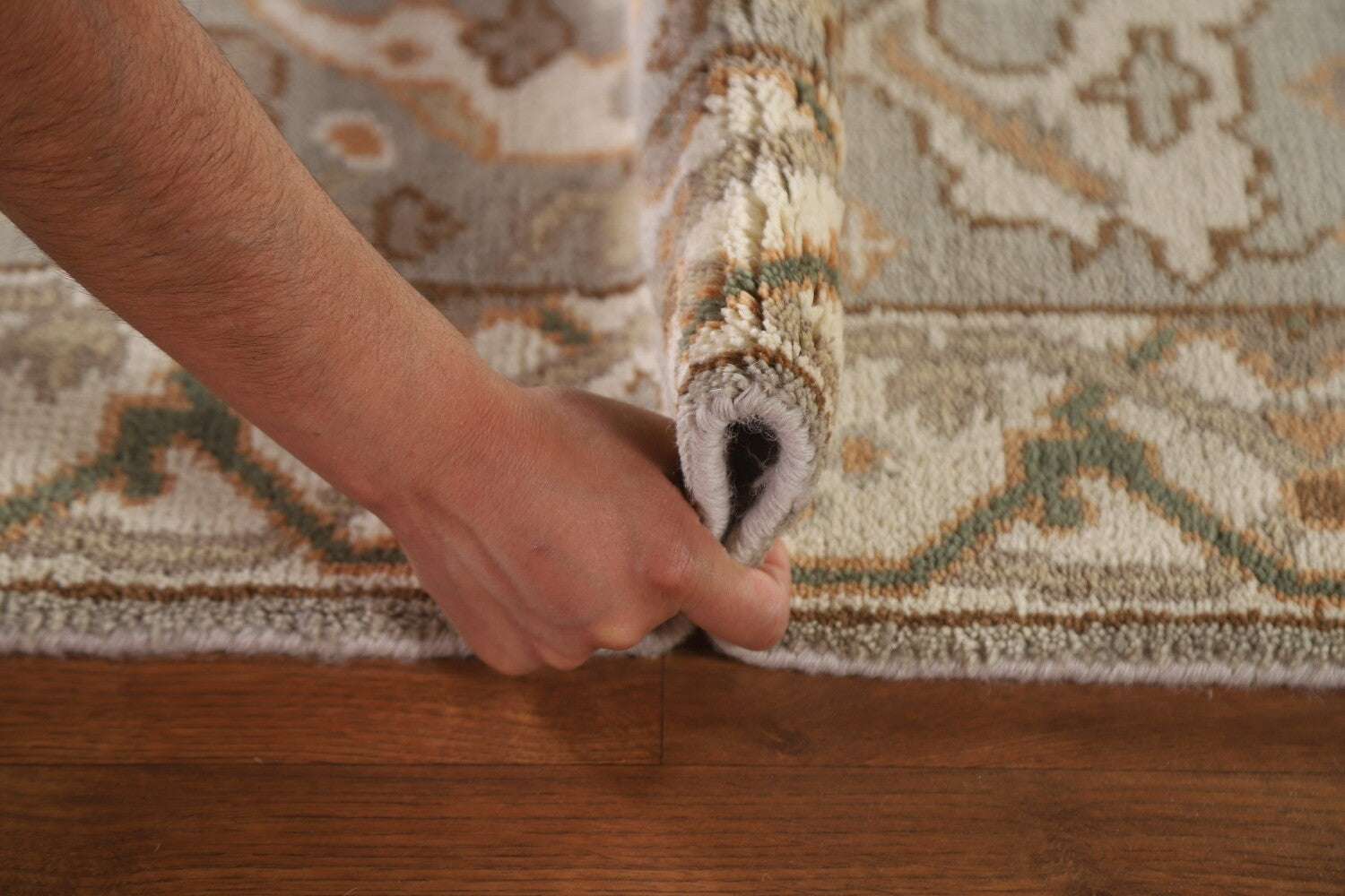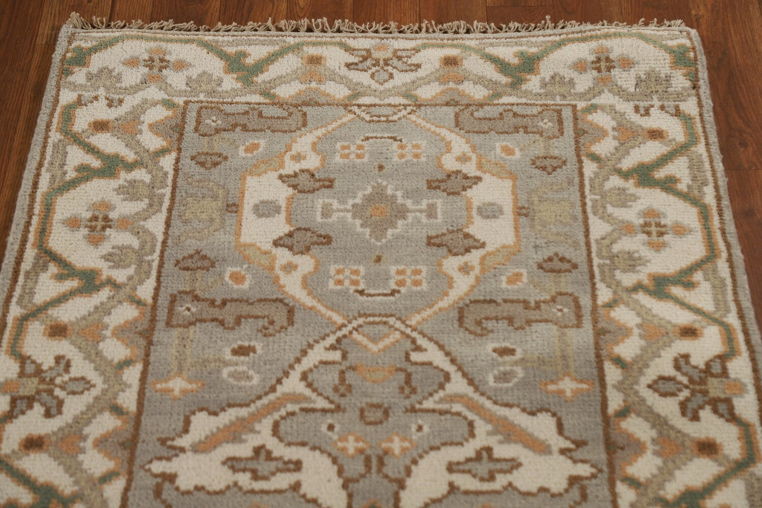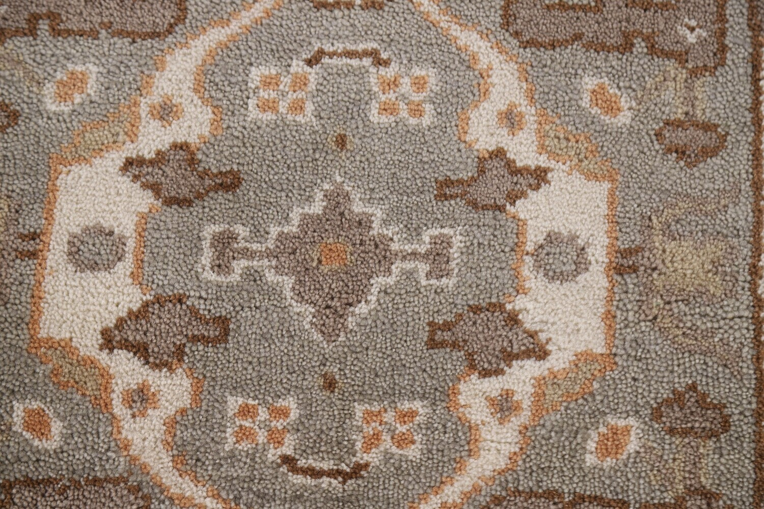 A Beautiful Genuine India Oushak rug is Hand Knotted by skillful weavers in India with 100% Wool Material. This rug is in New, First Quality condition. dimensions are 15' 6'' X 2' 7'' in foot and 472 X 79 in centimeter. the primary color is Greys & Charcoal.
