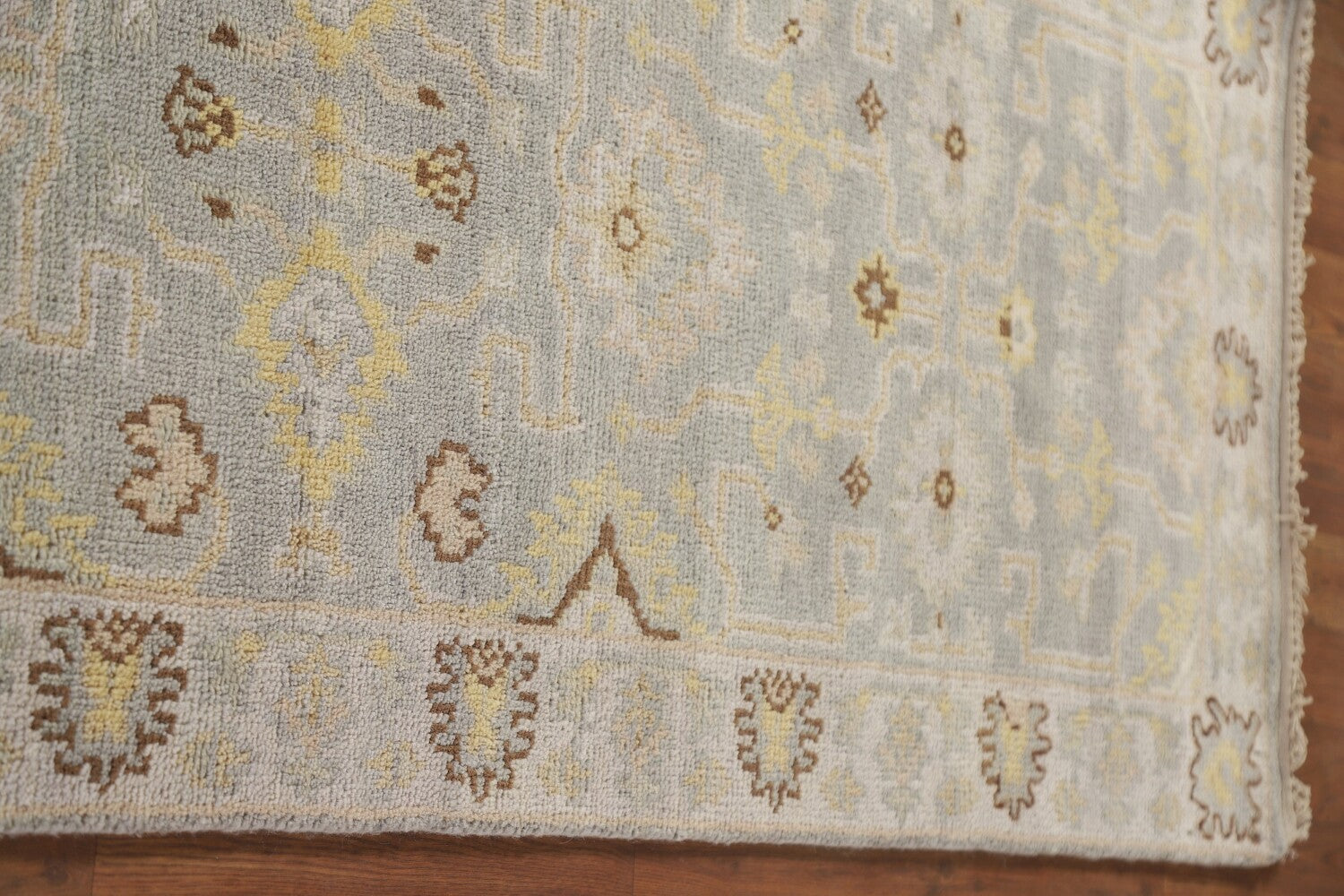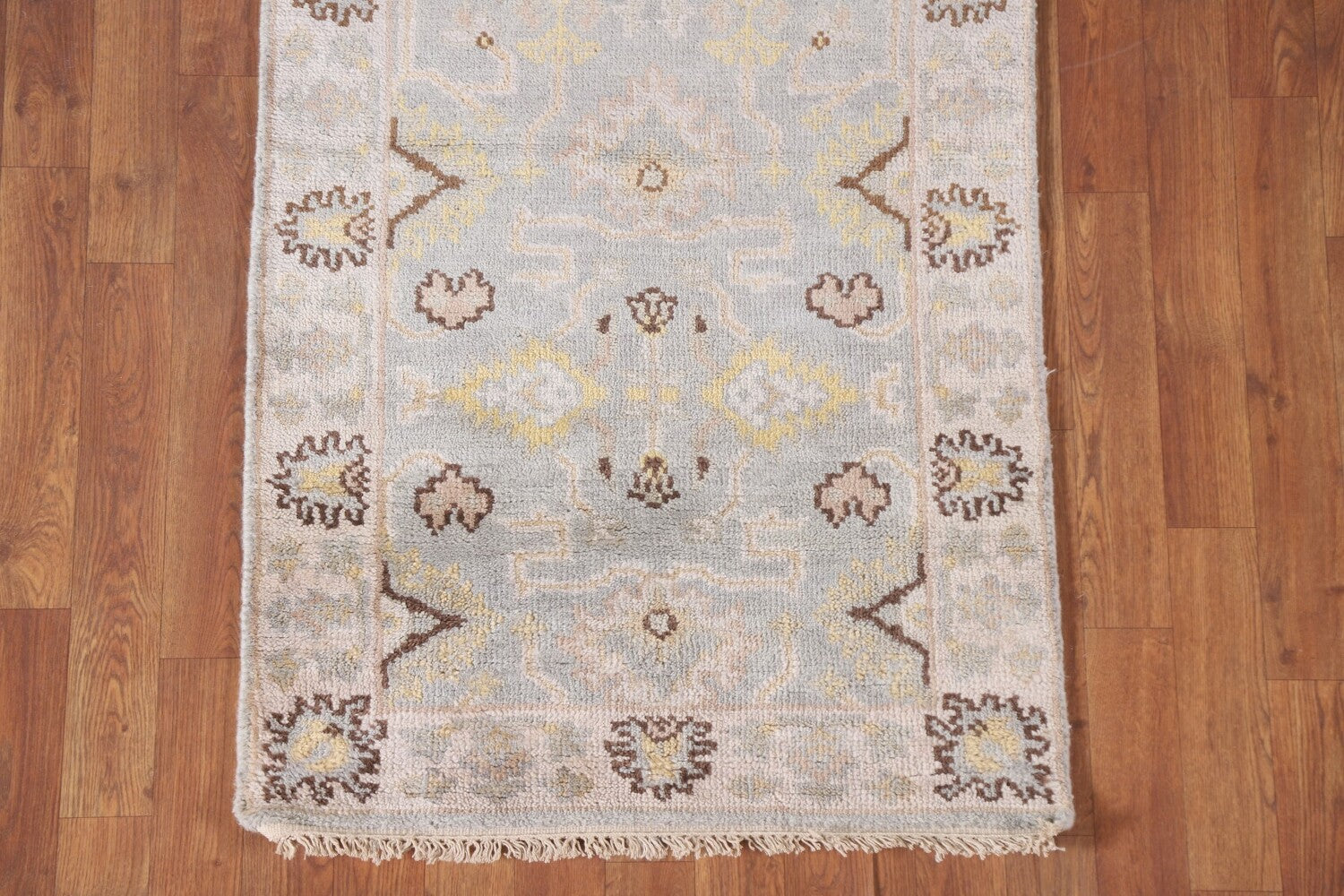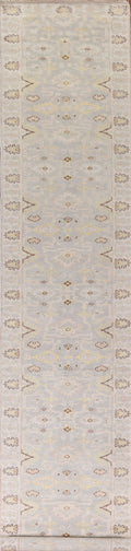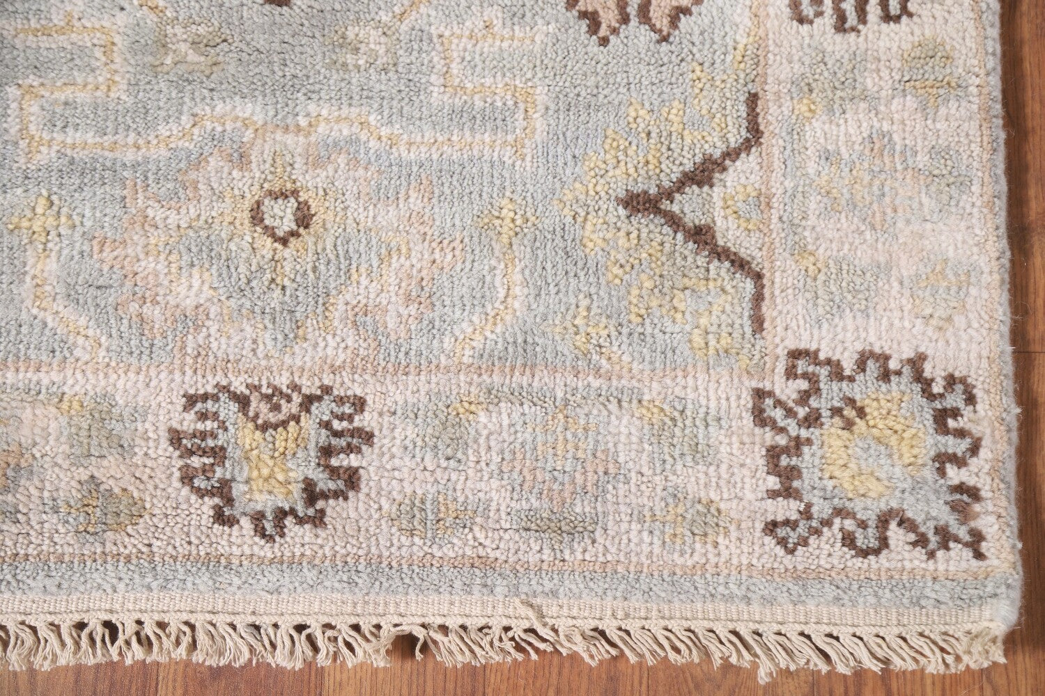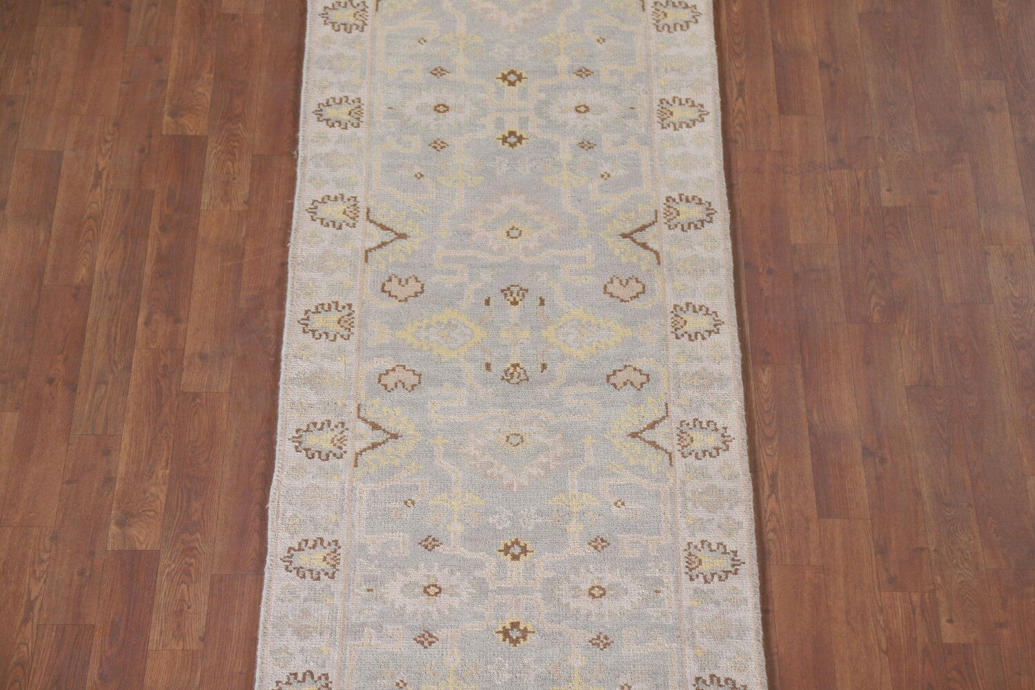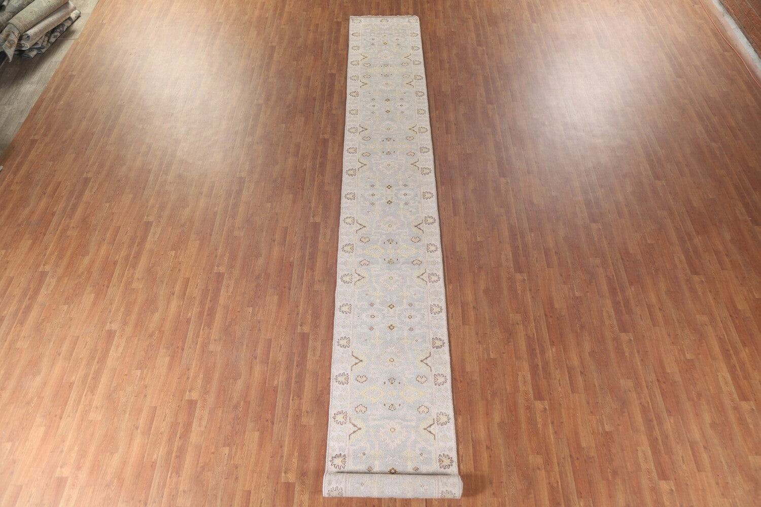 A Beautiful Genuine India Oushak rug is Hand Knotted by skillful weavers in India with 100% Wool Material. This rug is in New, First Quality condition. dimensions are 19' 11'' X 2' 7'' in foot and 607 X 79 in centimeter. the primary color is Navy Blue & Blues.