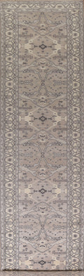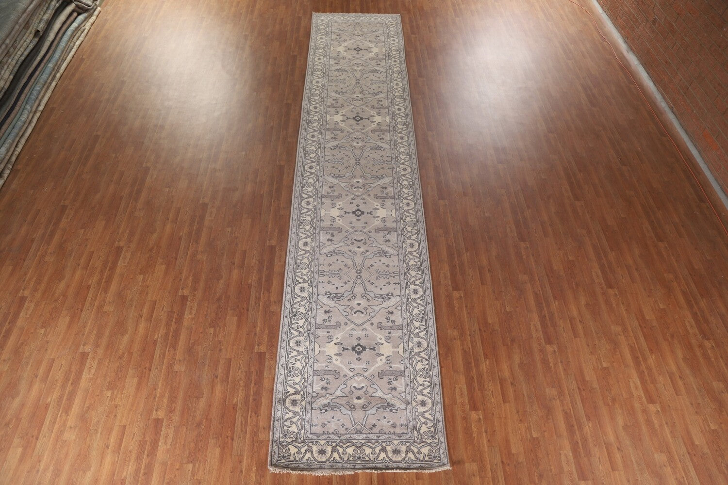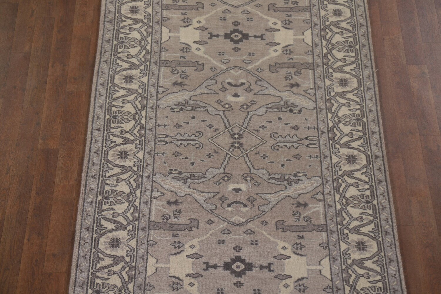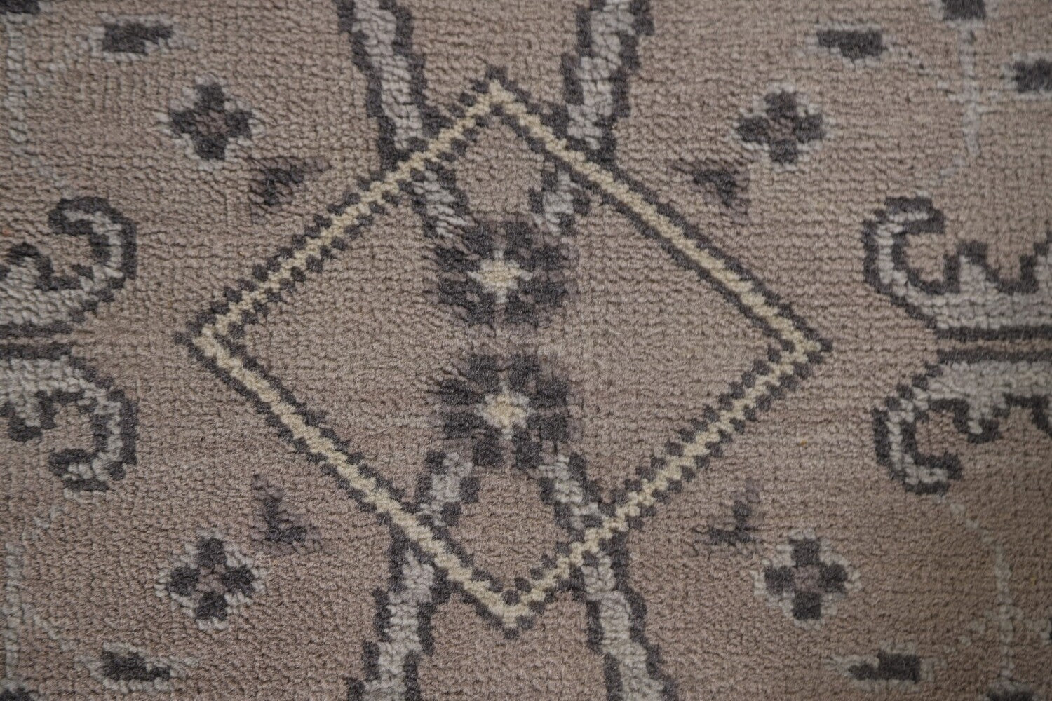 A Beautiful Genuine India Oushak rug is Hand Knotted by skillful weavers in India with 100% Wool Material. This rug is in New, First Quality condition. dimensions are 19' 5'' X 3' 11'' in foot and 592 X 119 in centimeter. the primary color is Beige & Ivories.