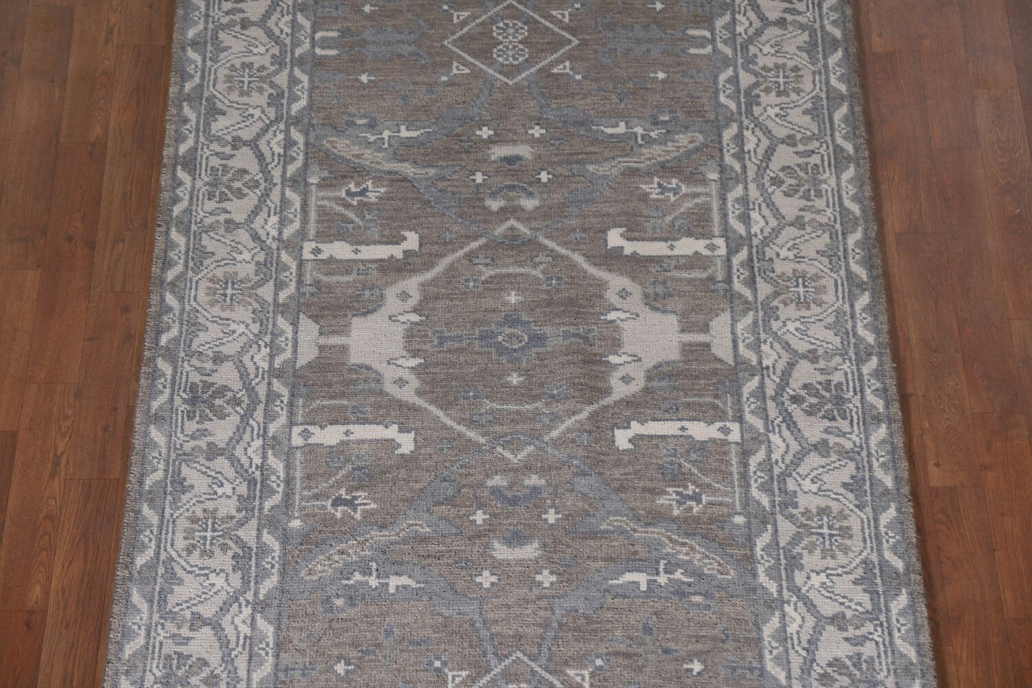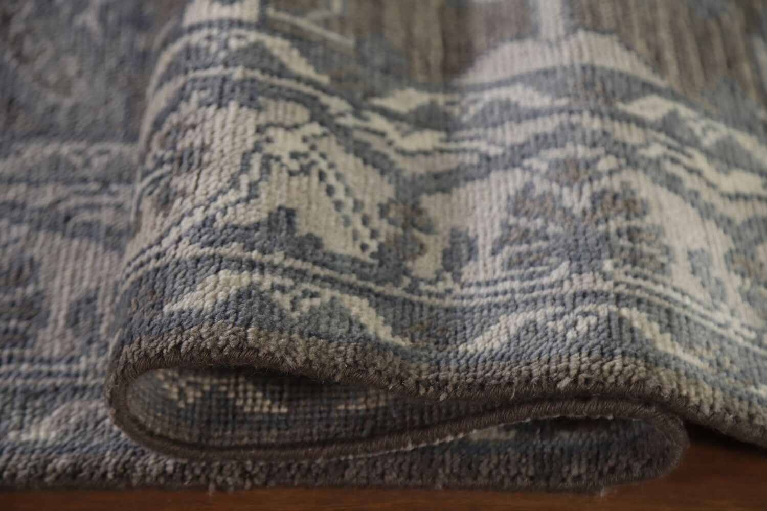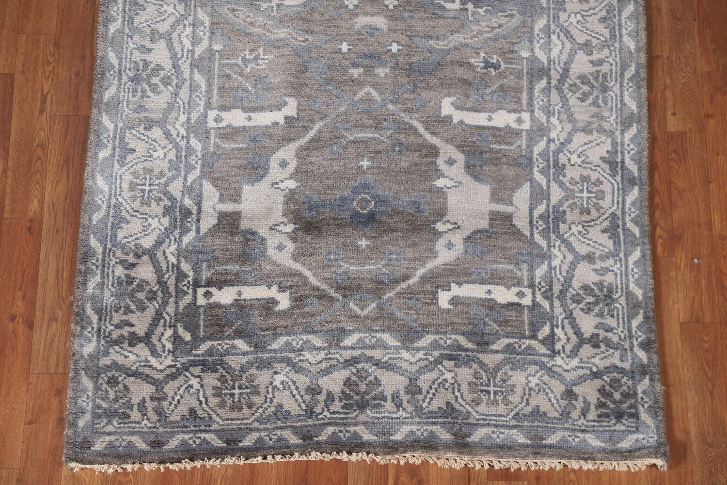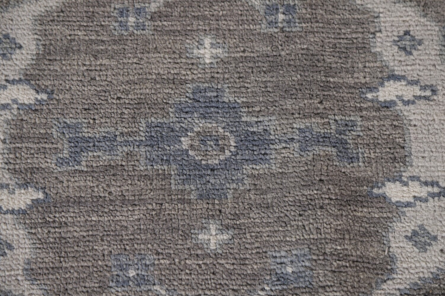 A Beautiful Genuine India Oushak rug is Hand Knotted by skillful weavers in India with 100% Wool Material. This rug is in New, First Quality condition. dimensions are 19' 5'' X 4' 0'' in foot and 592 X 122 in centimeter. the primary color is Greys & Charcoal.
