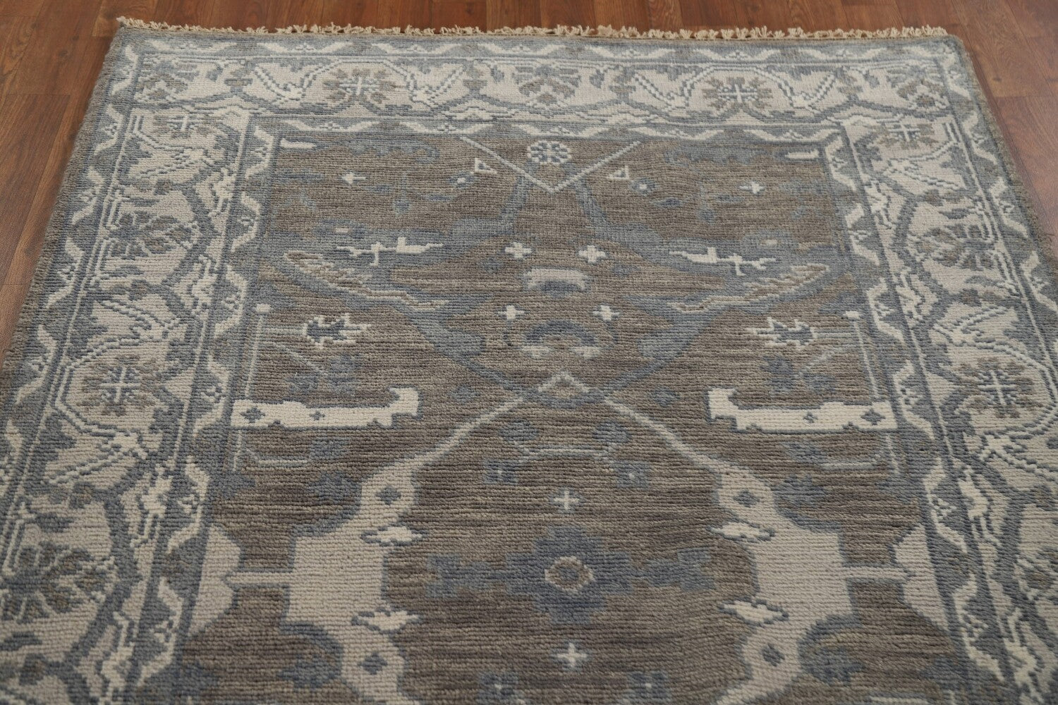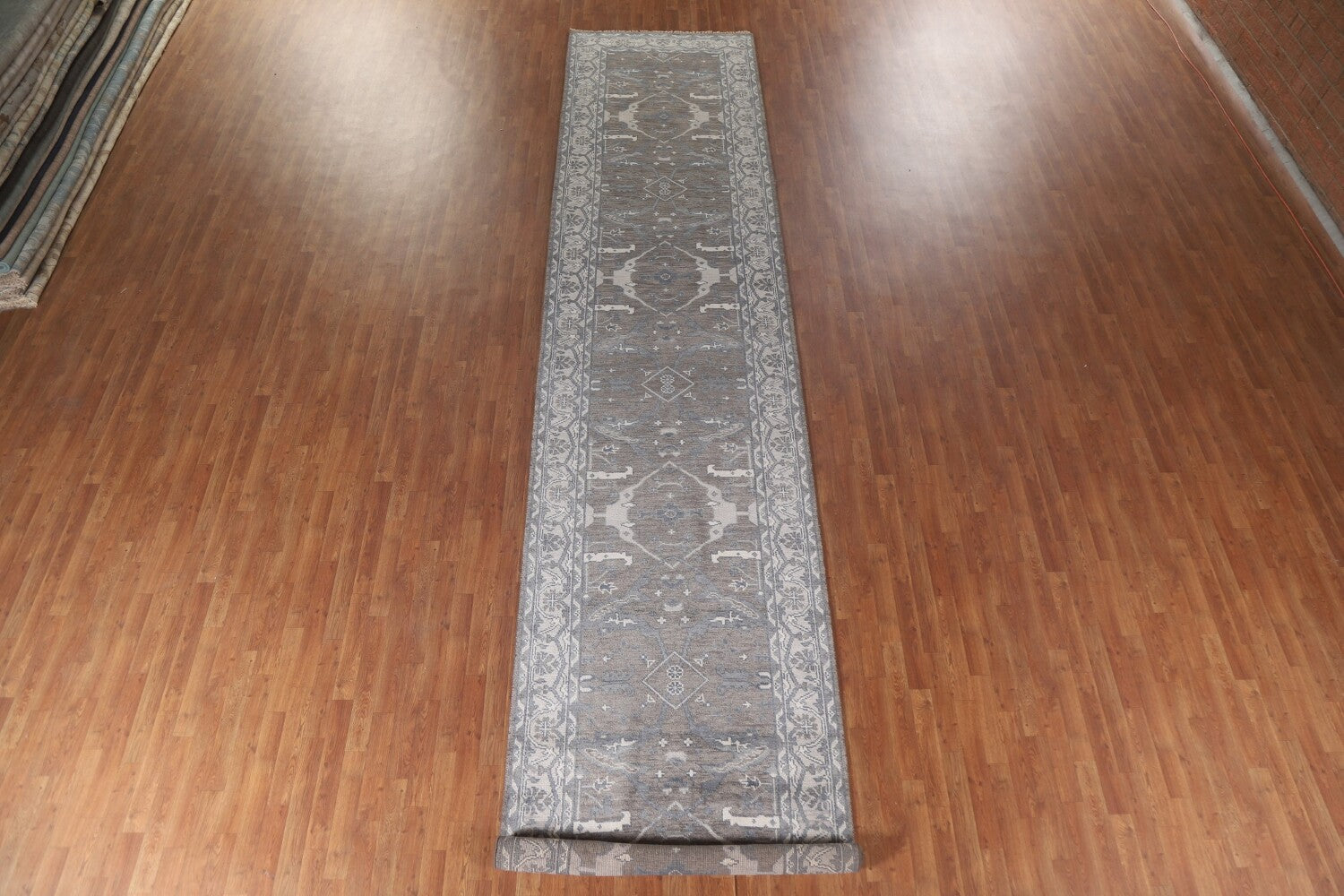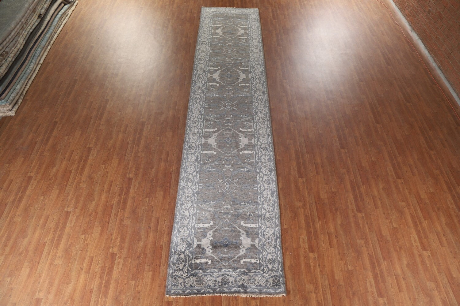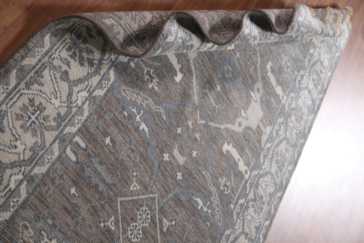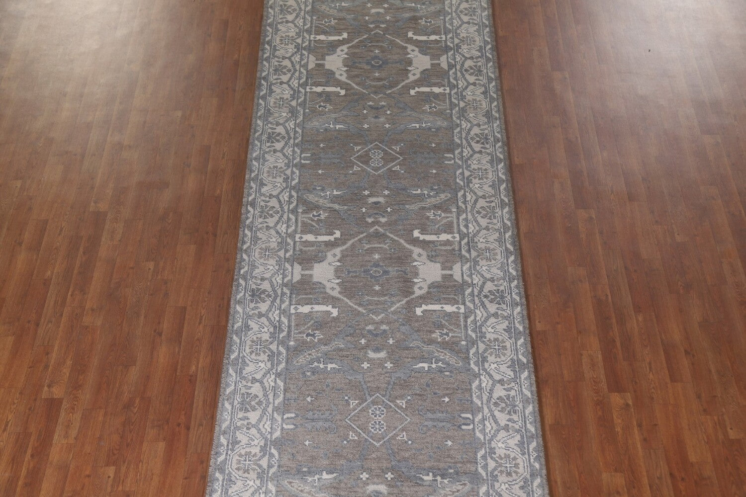 A Beautiful Genuine India Oushak rug is Hand Knotted by skillful weavers in India with 100% Wool Material. This rug is in New, First Quality condition. dimensions are 19' 5'' X 4' 0'' in foot and 592 X 122 in centimeter. the primary color is Greys & Charcoal.