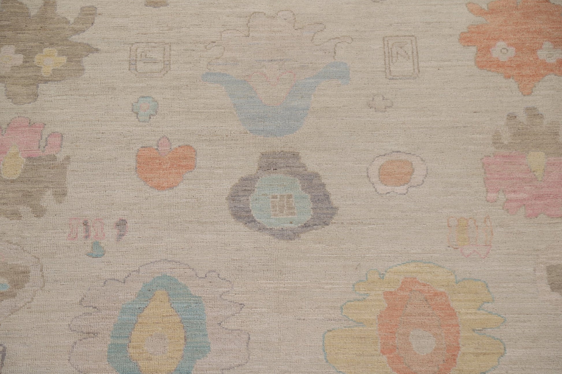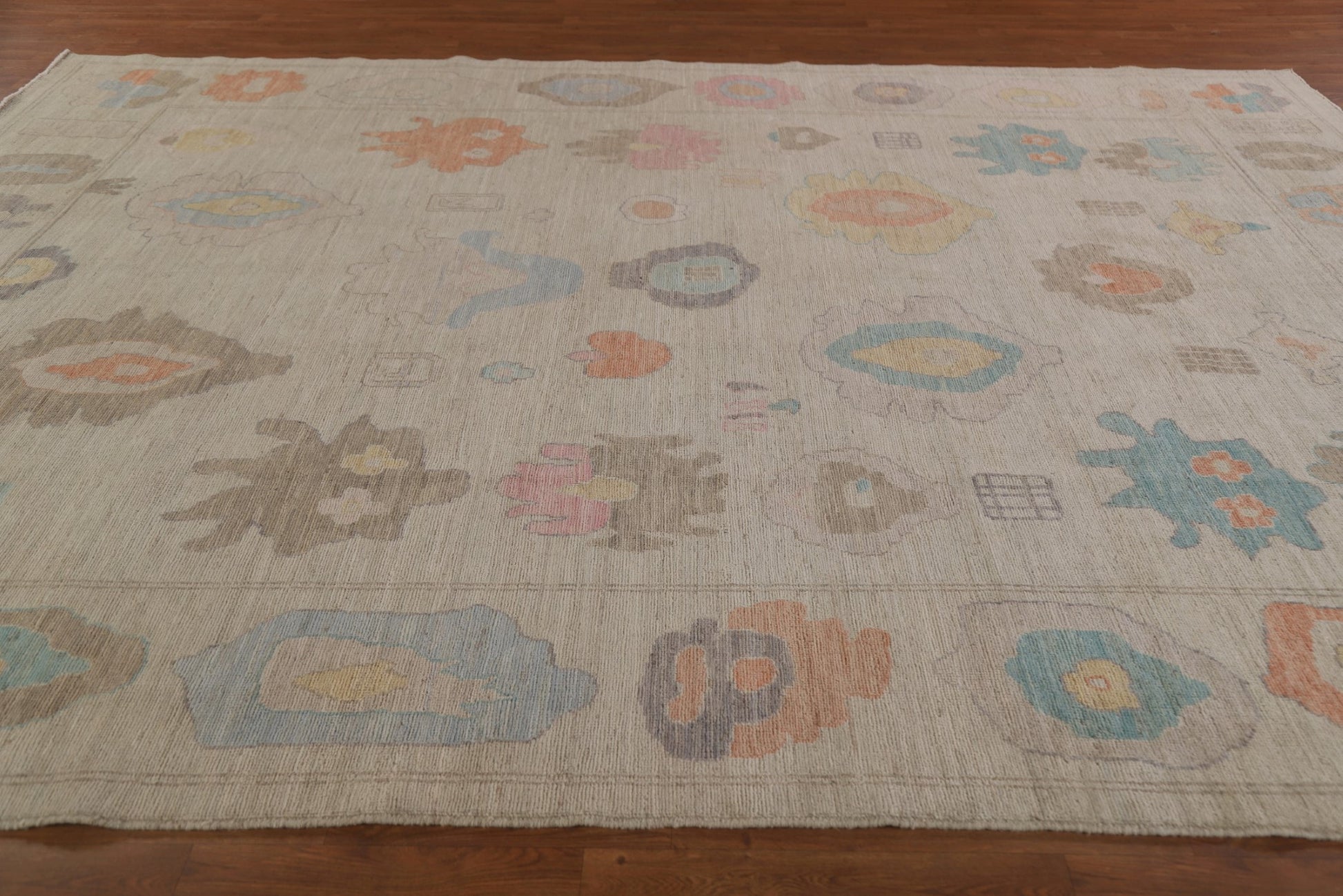 A Beautiful Genuine Turkey Oushak rug is Hand Knotted by skillful weavers in Turkey with 100% Wool Material. This rug is in New, First Quality condition. dimensions are 11' 11'' X 9' 2'' in foot and 363 X 279 in centimeter. the primary color is Beige & Ivories.