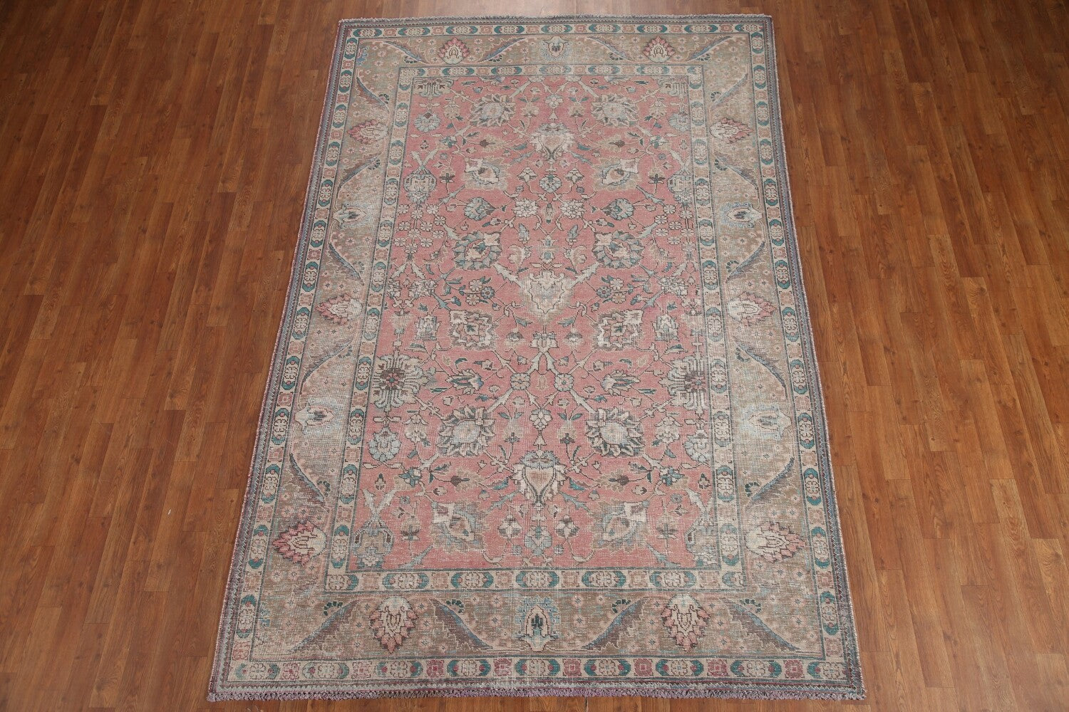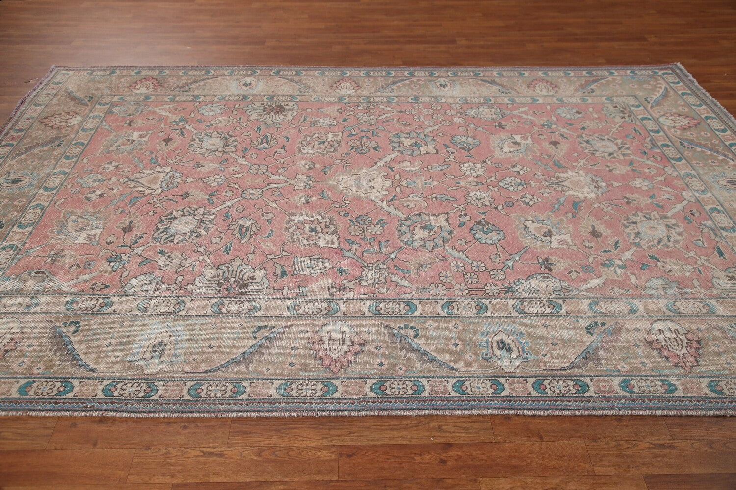 All-Over Pink Tabriz Persian Area Rug 7x10