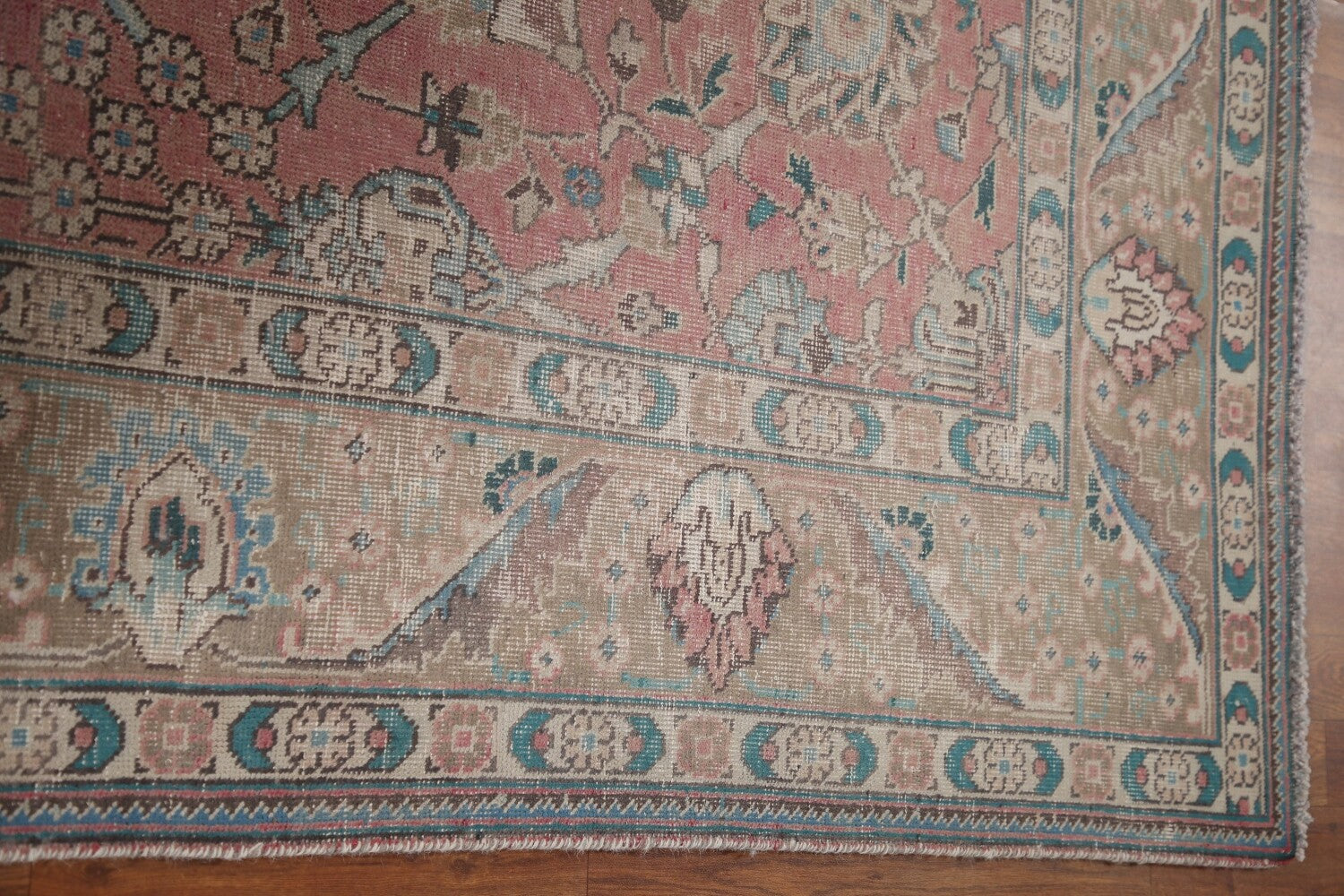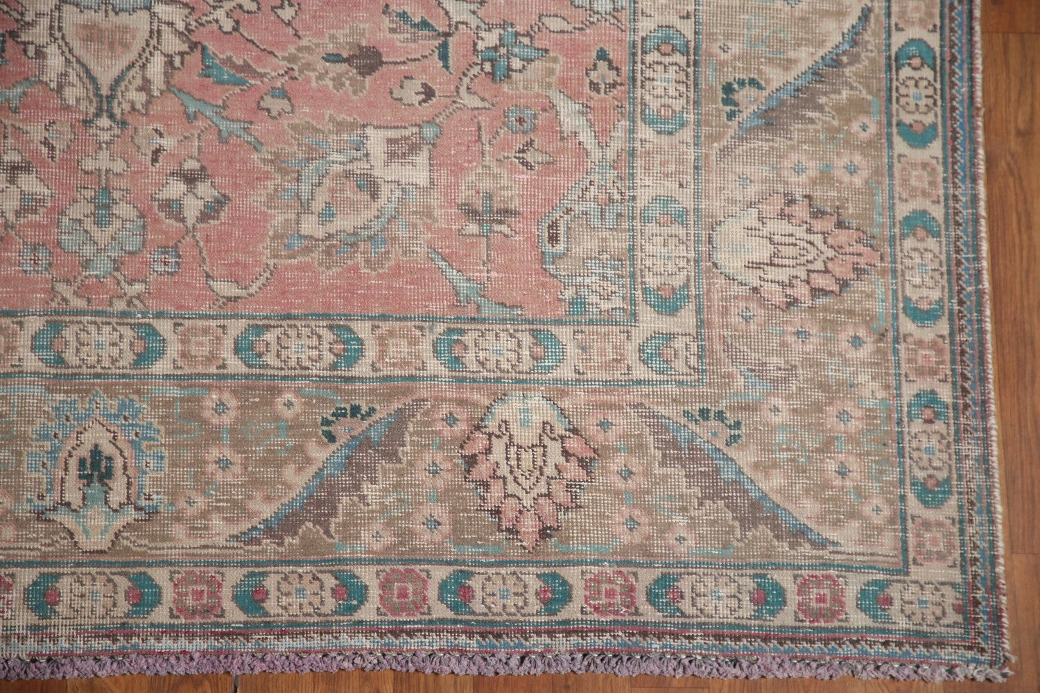 A Beautiful Genuine Persia ( Persia ) Tabriz rug is Hand Knotted by skillful weavers in Persia ( Persia ) with 100% Wool Material. This rug is in Very Good (Evenly Low Pile) condition. dimensions are 9' 6'' X 6' 6'' in foot and 290 X 198 in centimeter. the primary color is Pink.