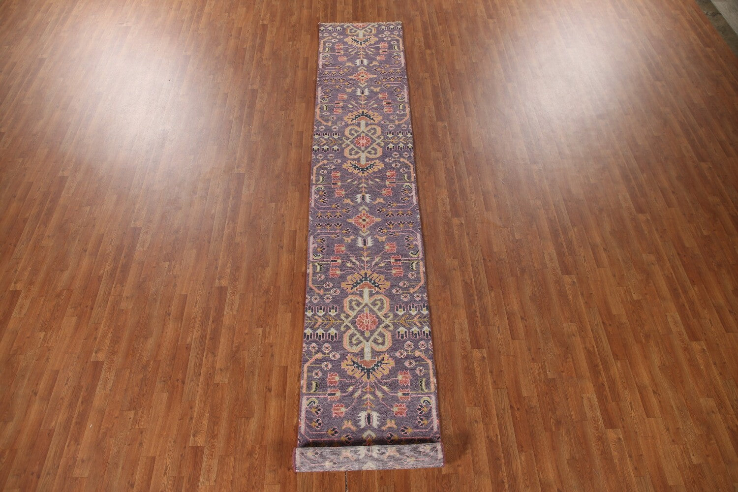 A Beautiful Genuine India Kazak rug is Hand Knotted by skillful weavers in India with 100% Wool Material. This rug is in New, First Quality condition. dimensions are 15' 10'' X 2' 6'' in foot and 483 X 76 in centimeter. the primary color is Purples.
