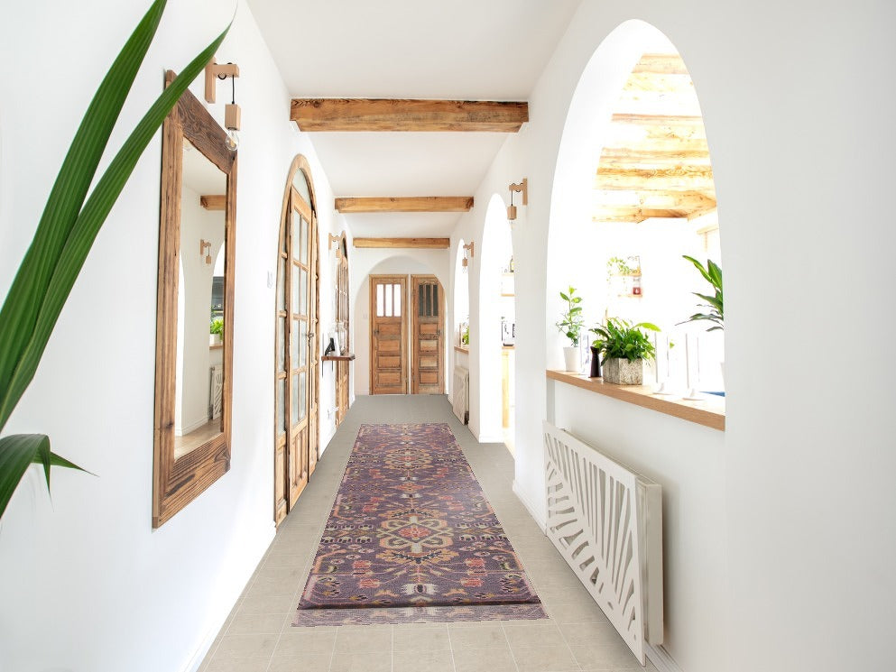 All-Over Purple Kazak Indian Runner Rug 3x16
