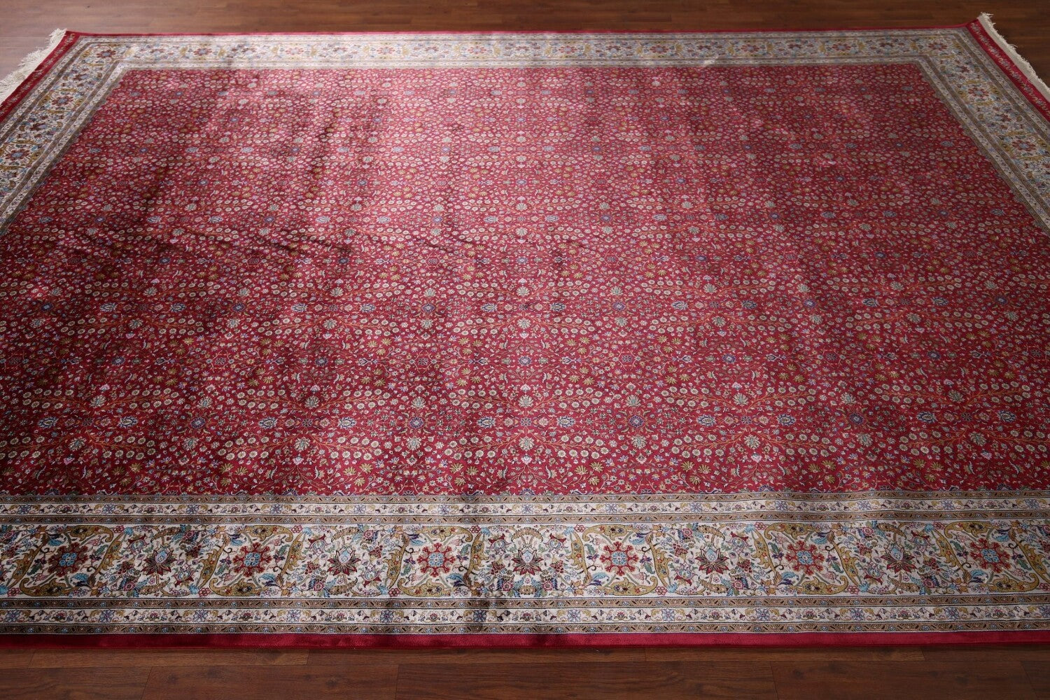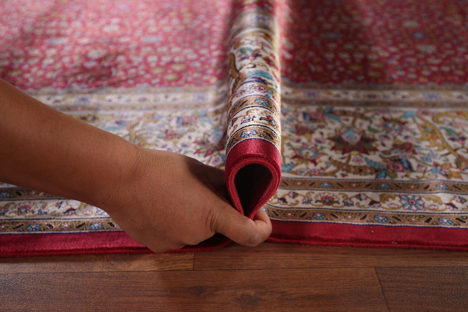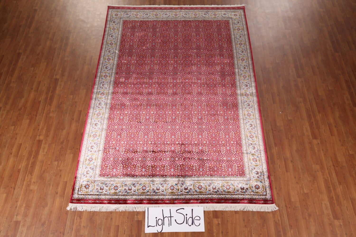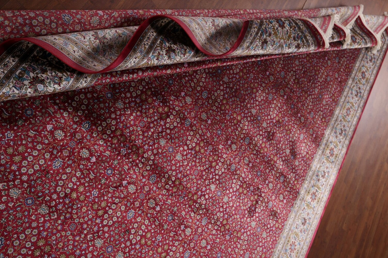 All-Over Red Floral Silk Qum Turkish Area Rug 8x11