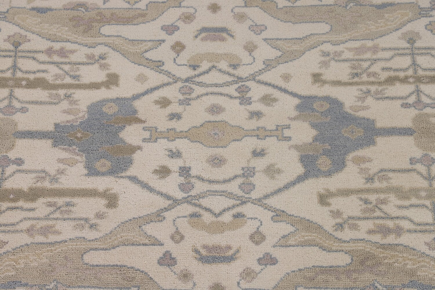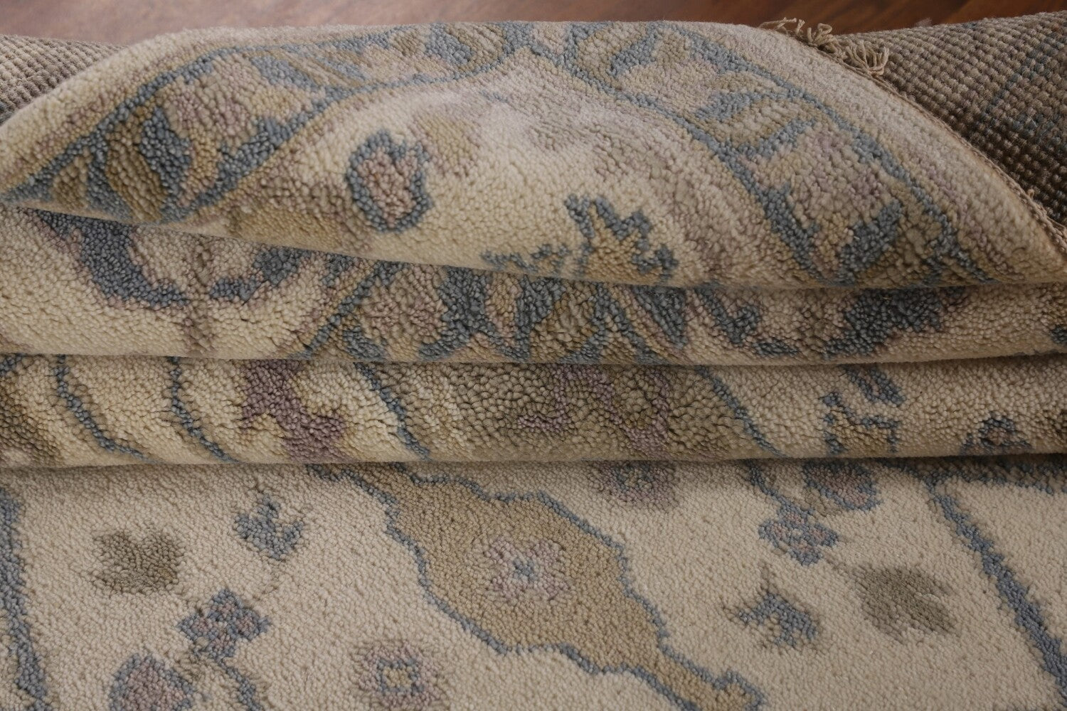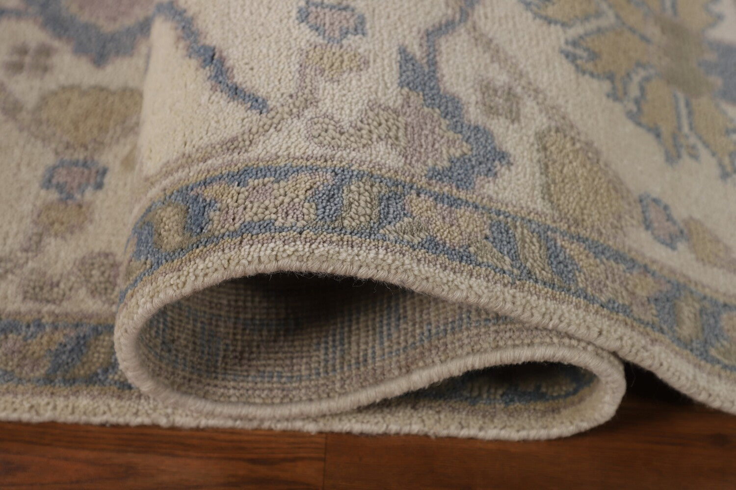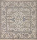 A Beautiful Genuine India Oushak rug is Hand Knotted by skillful weavers in India with 100% Wool Material. This rug is in New, First Quality condition. dimensions are 7' 11'' X 7' 10'' in foot and 241 X 239 in centimeter. the primary color is Beige & Ivories.