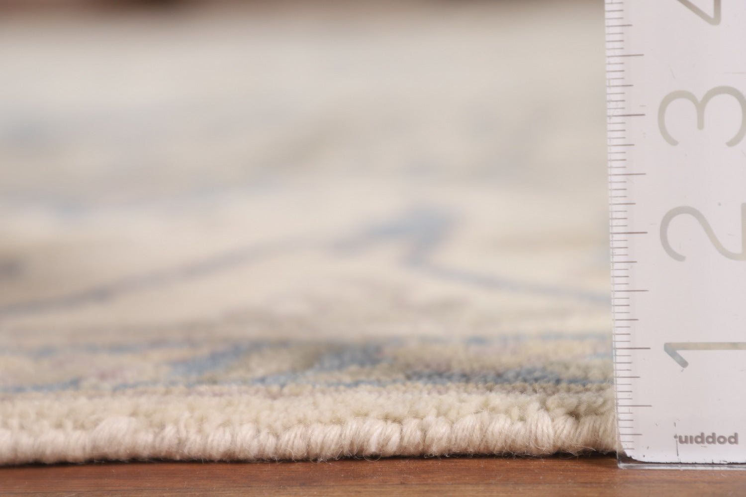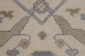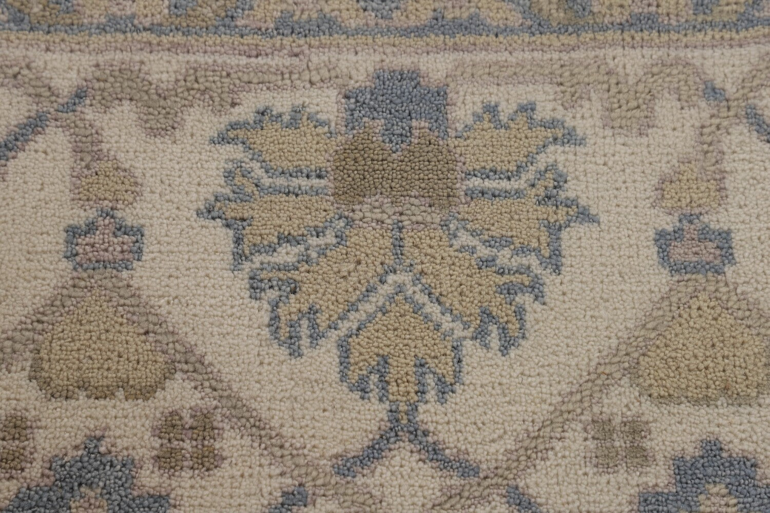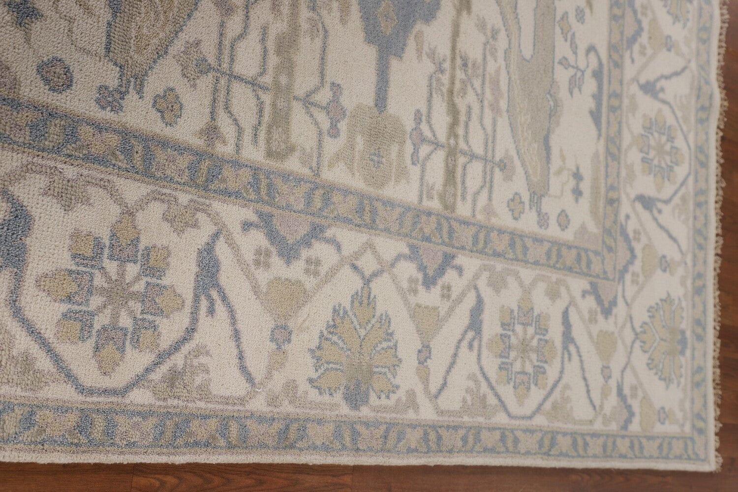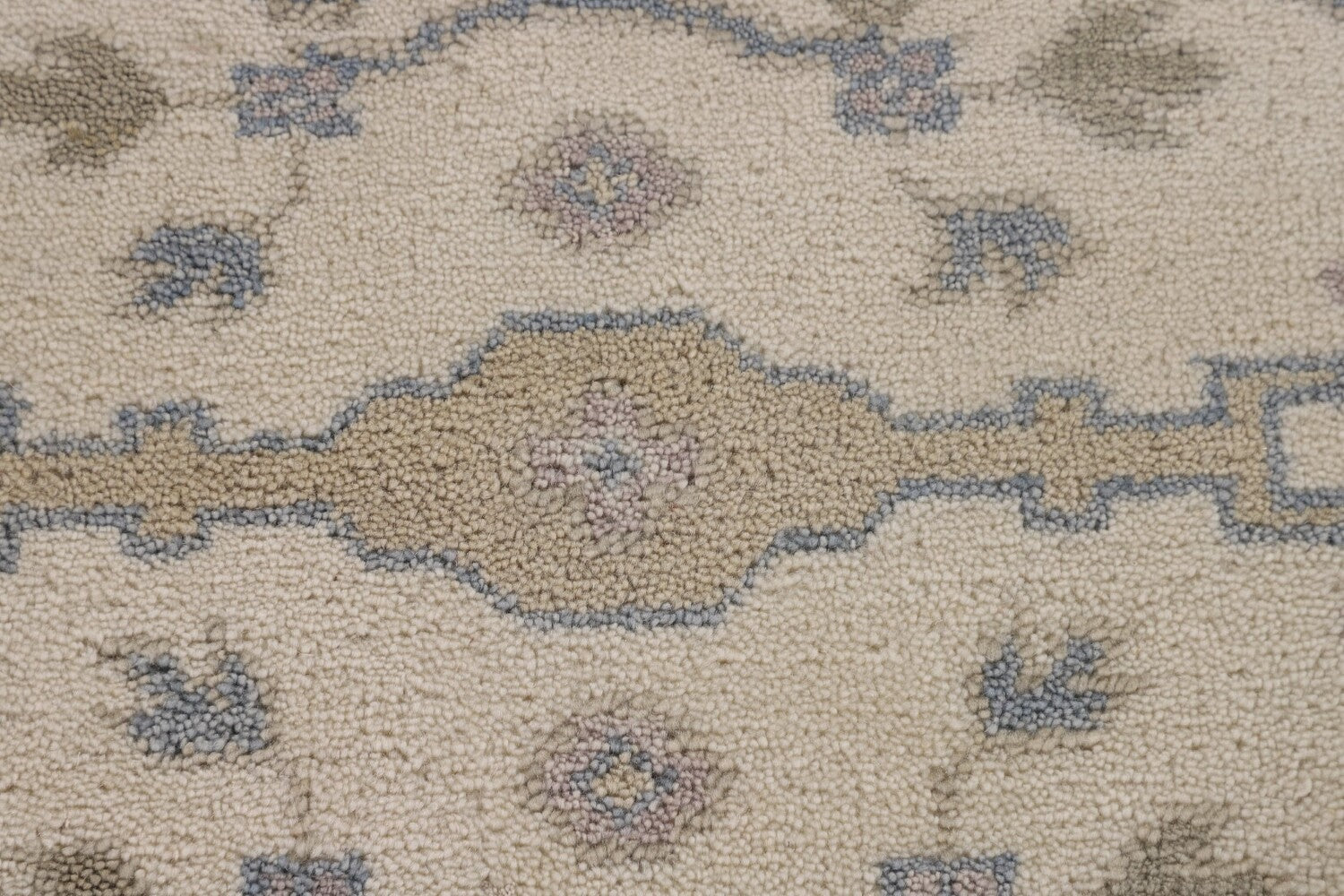 A Beautiful Genuine India Oushak rug is Hand Knotted by skillful weavers in India with 100% Wool Material. This rug is in New, First Quality condition. dimensions are 7' 11'' X 7' 10'' in foot and 241 X 239 in centimeter. the primary color is Beige & Ivories.