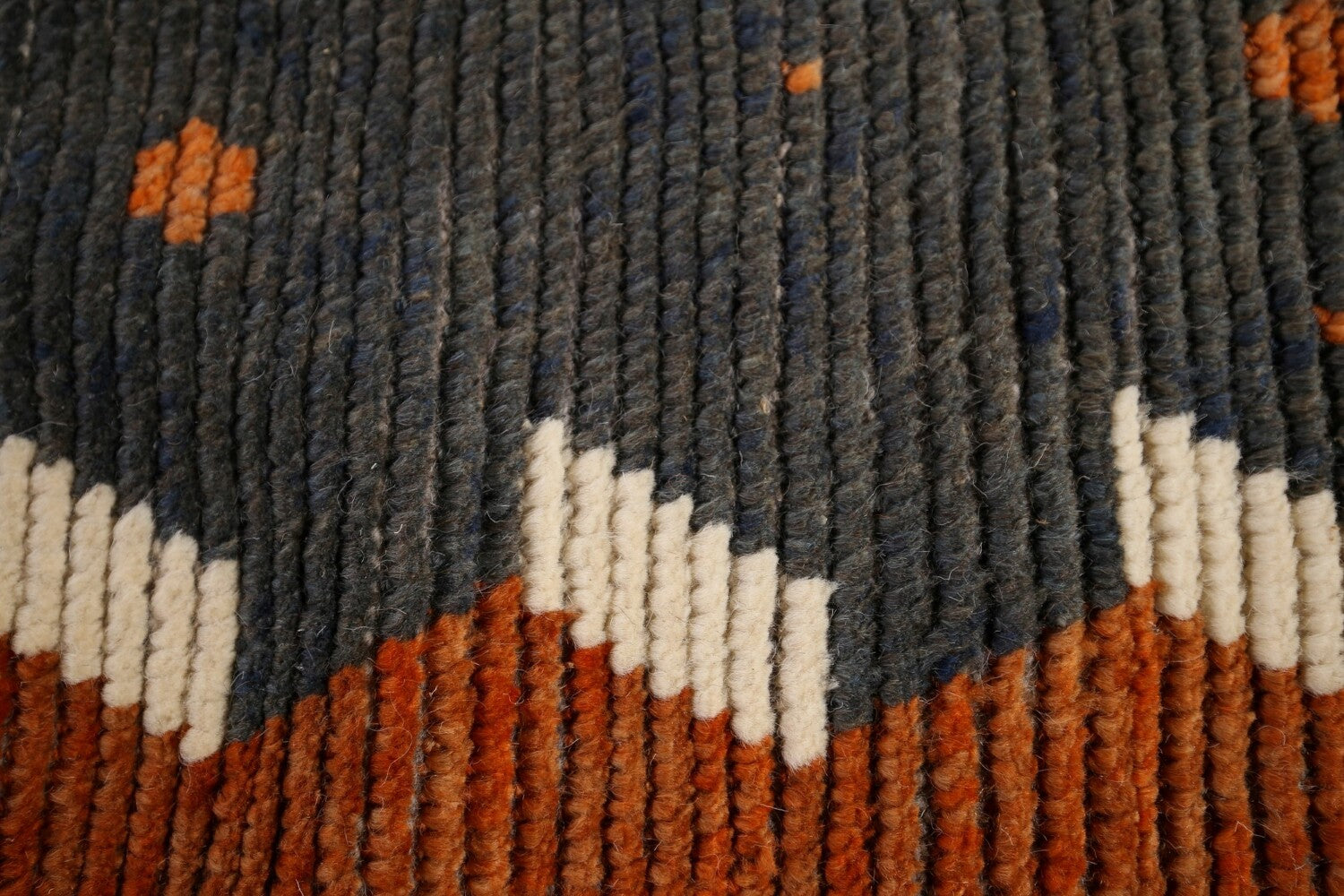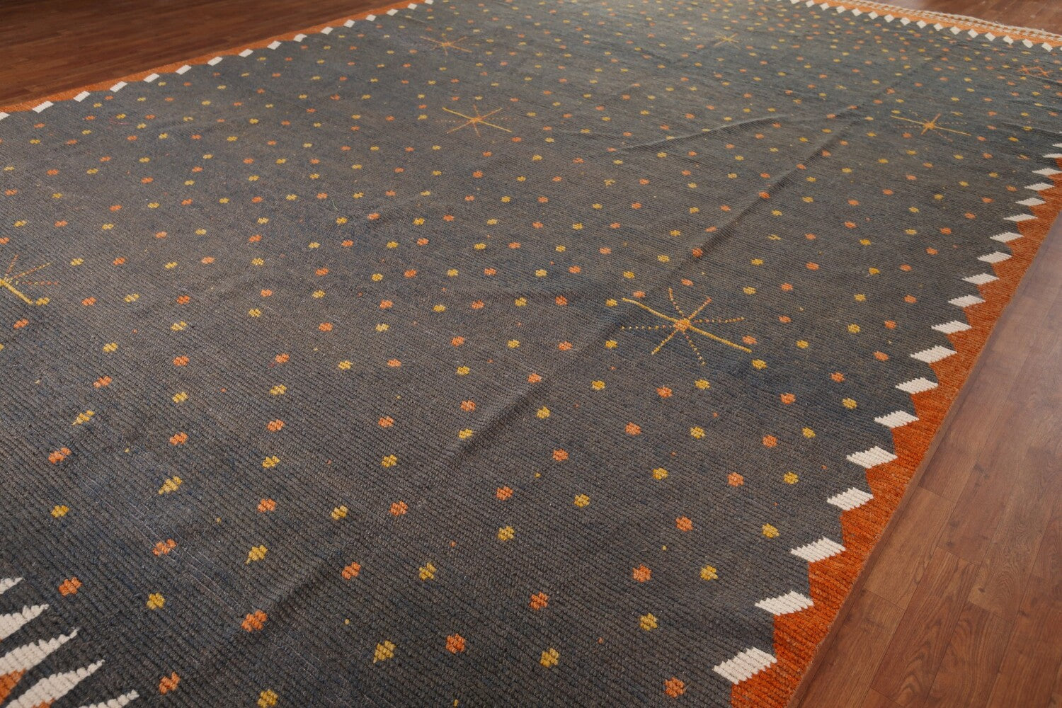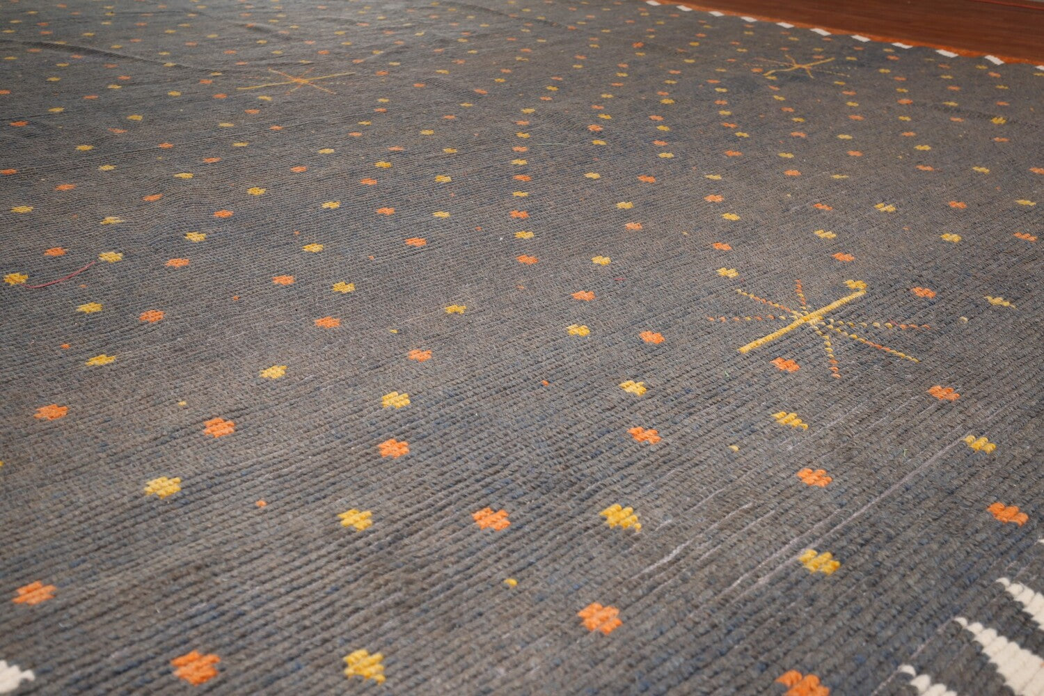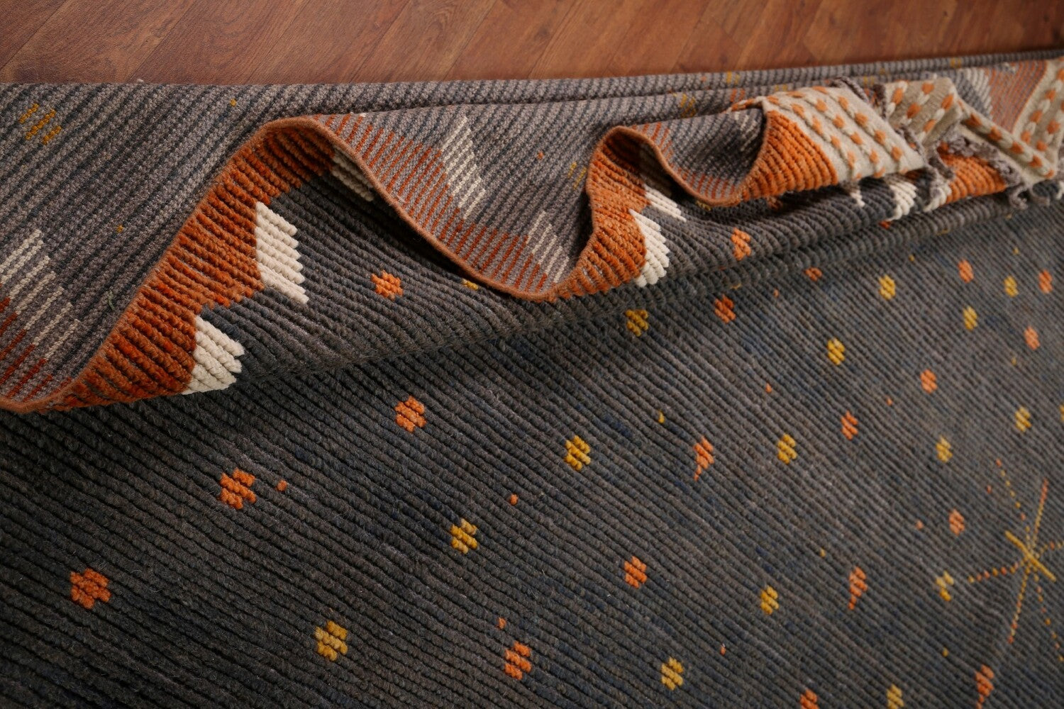 A Beautiful Genuine Pakistan Moroccan rug is Hand Knotted by skillful weavers in Pakistan with 100% Wool Material. This rug is in New, First Quality condition. dimensions are 18' 11'' X 11' 9'' in foot and 577 X 358 in centimeter. the primary color is Greys & Charcoal.