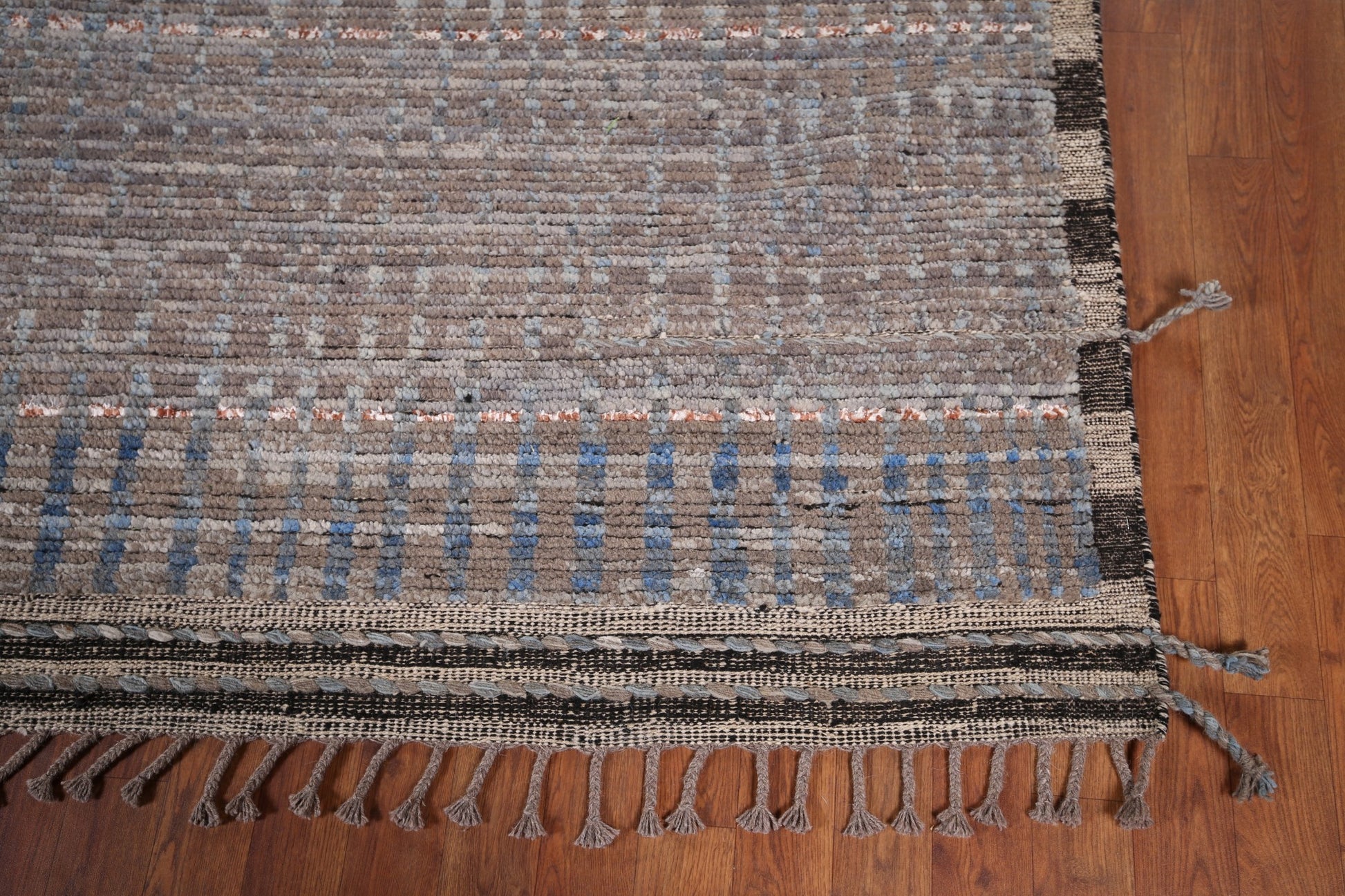 A Beautiful Genuine Pakistan Moroccan rug is Hand Knotted by skillful weavers in Pakistan with 100% Wool Material. This rug is in New, First Quality condition. dimensions are 12' 9'' X 9' 0'' in foot and 389 X 274 in centimeter. the primary color is Greys & Charcoal.