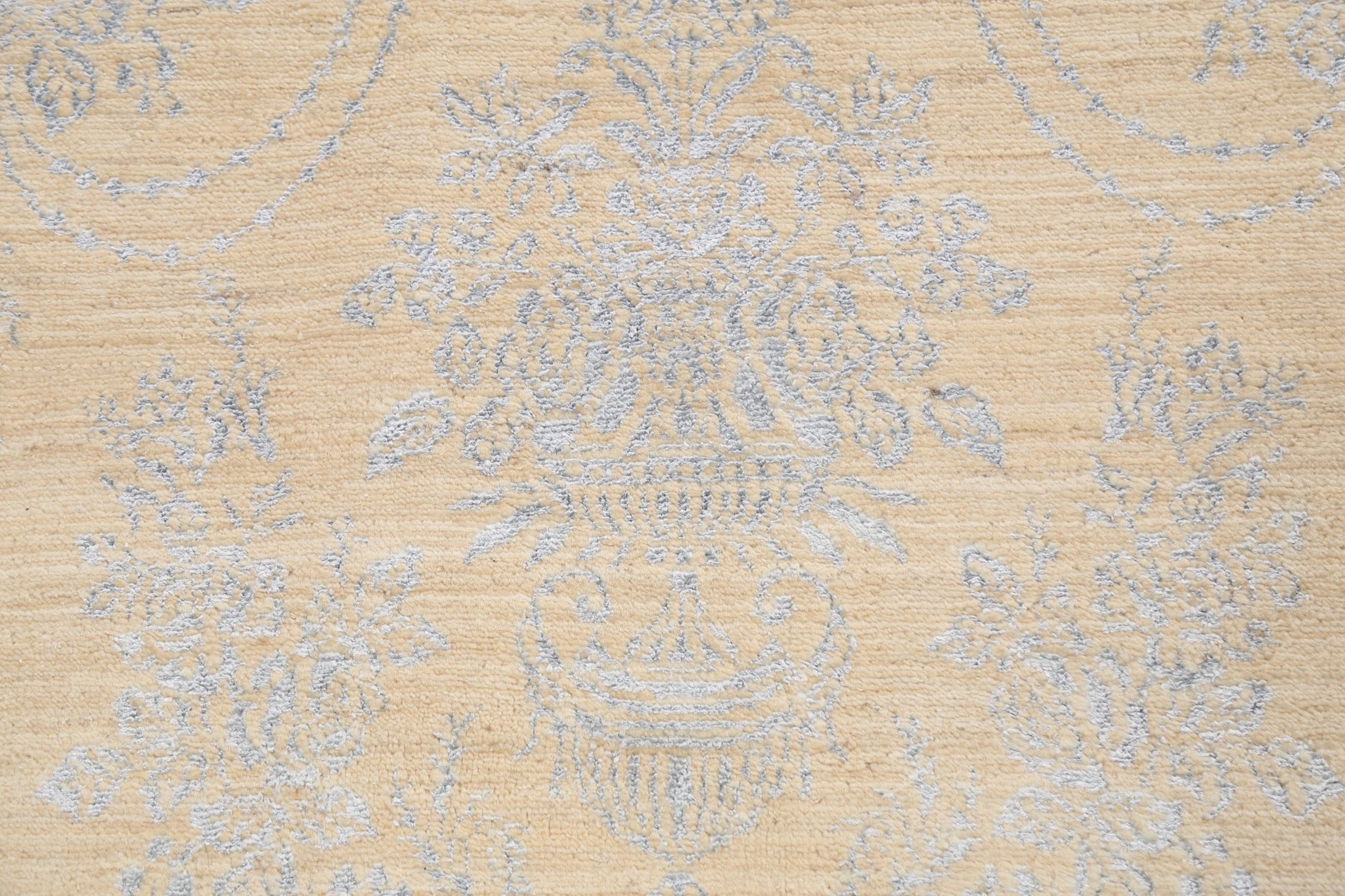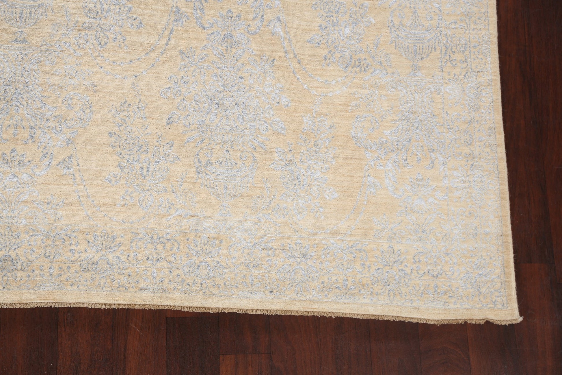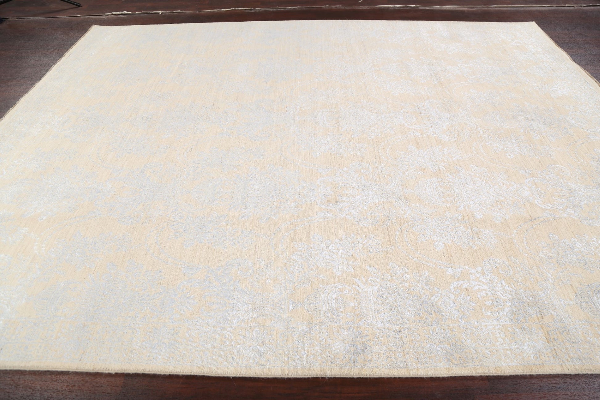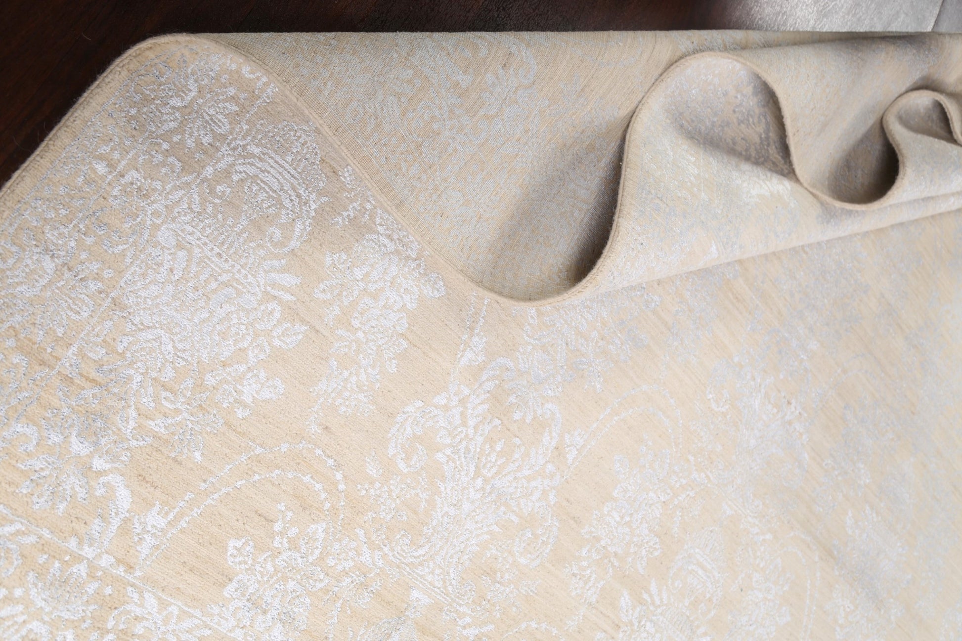 A Beautiful Genuine Pakistan Versace rug is Hand Knotted by skillful weavers in Pakistan with Wool & Silk Material. This rug is in New, First Quality condition. dimensions are 10' 4'' X 8' 2'' in foot and 315 X 249 in centimeter. the primary color is Greys & Charcoal.