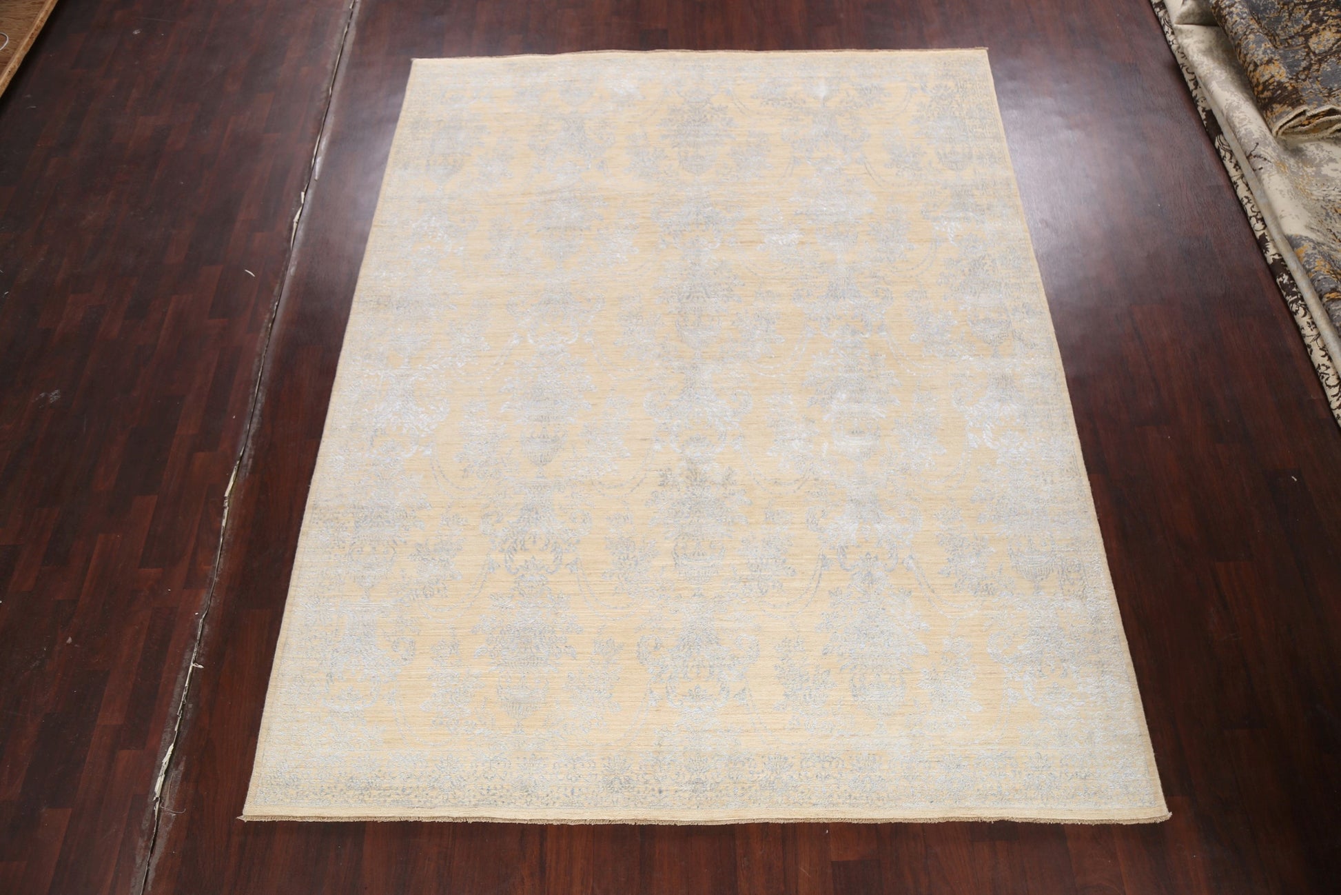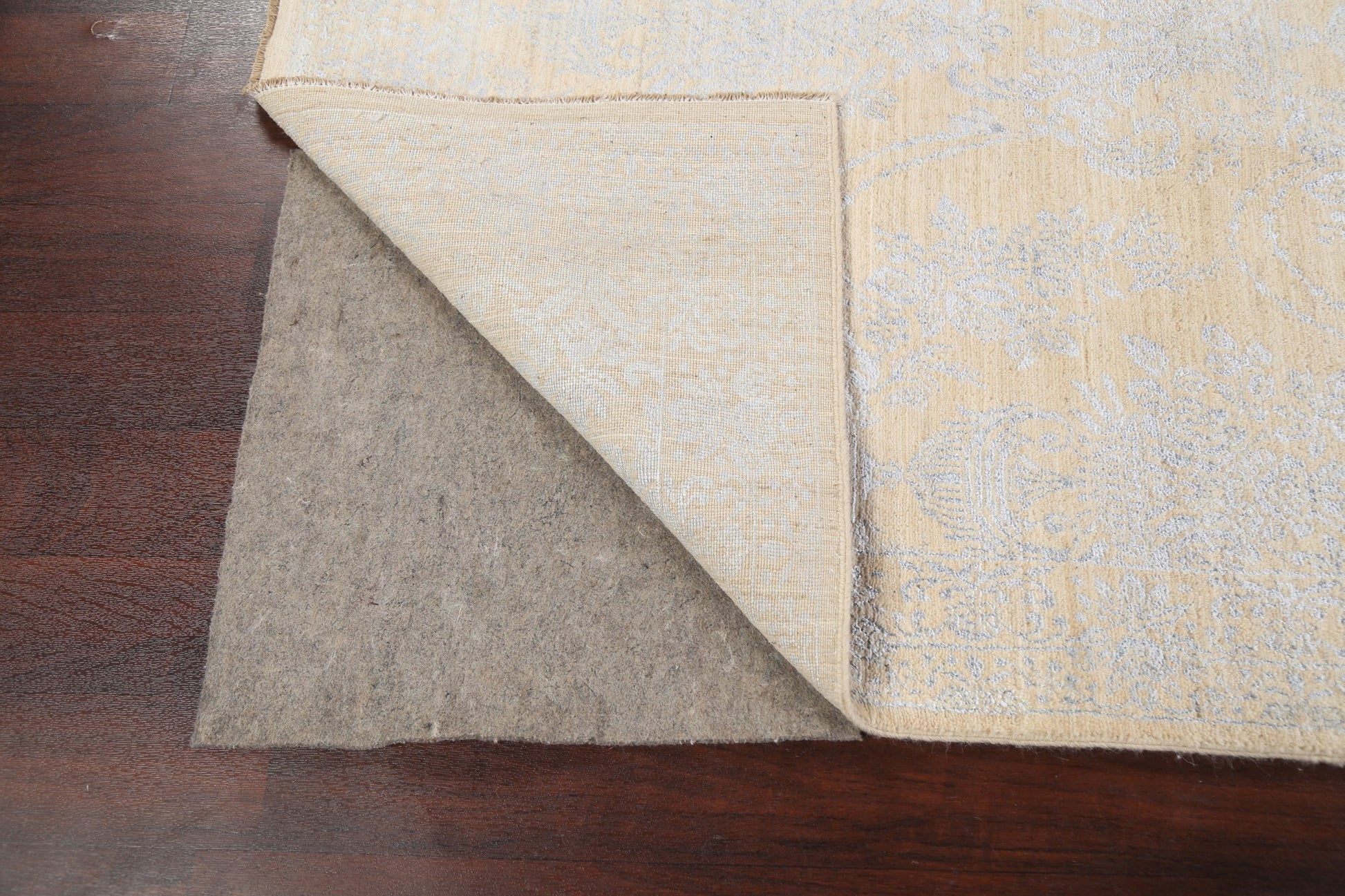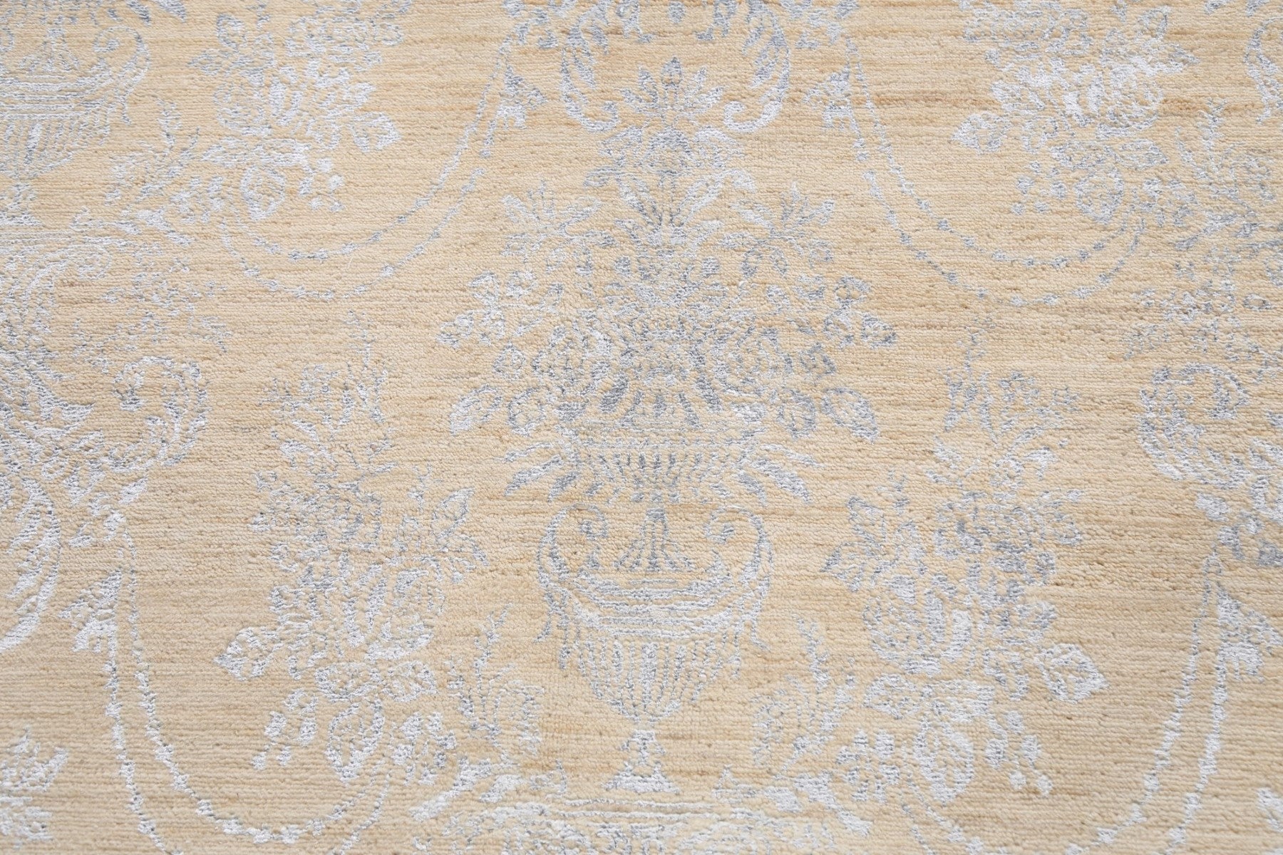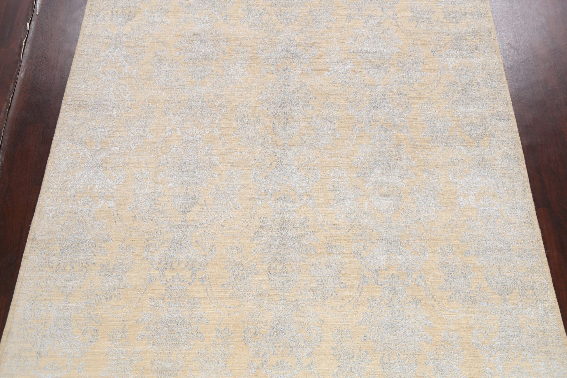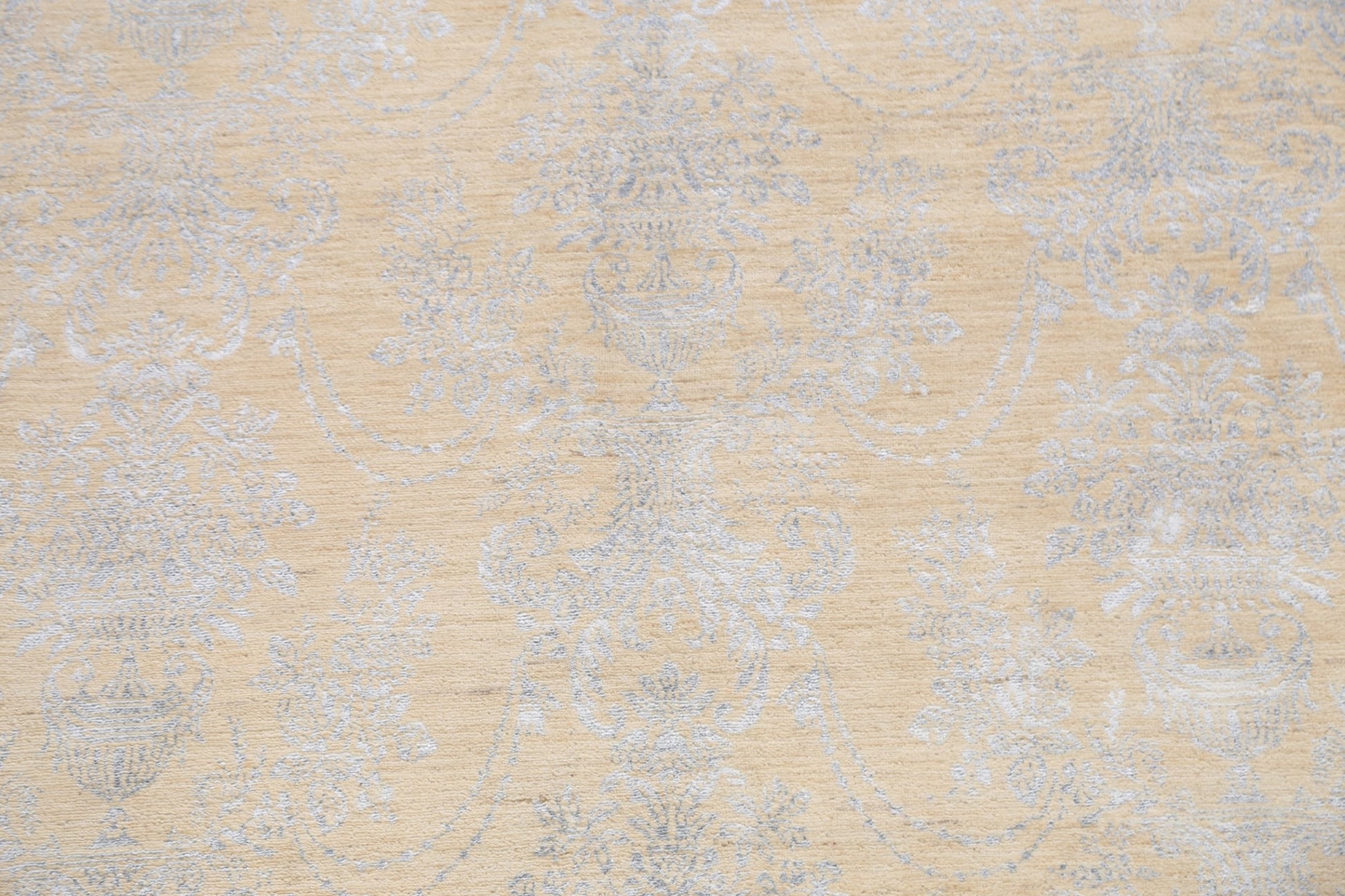 A Beautiful Genuine Pakistan Versace rug is Hand Knotted by skillful weavers in Pakistan with Wool & Silk Material. This rug is in New, First Quality condition. dimensions are 10' 4'' X 8' 2'' in foot and 315 X 249 in centimeter. the primary color is Greys & Charcoal.