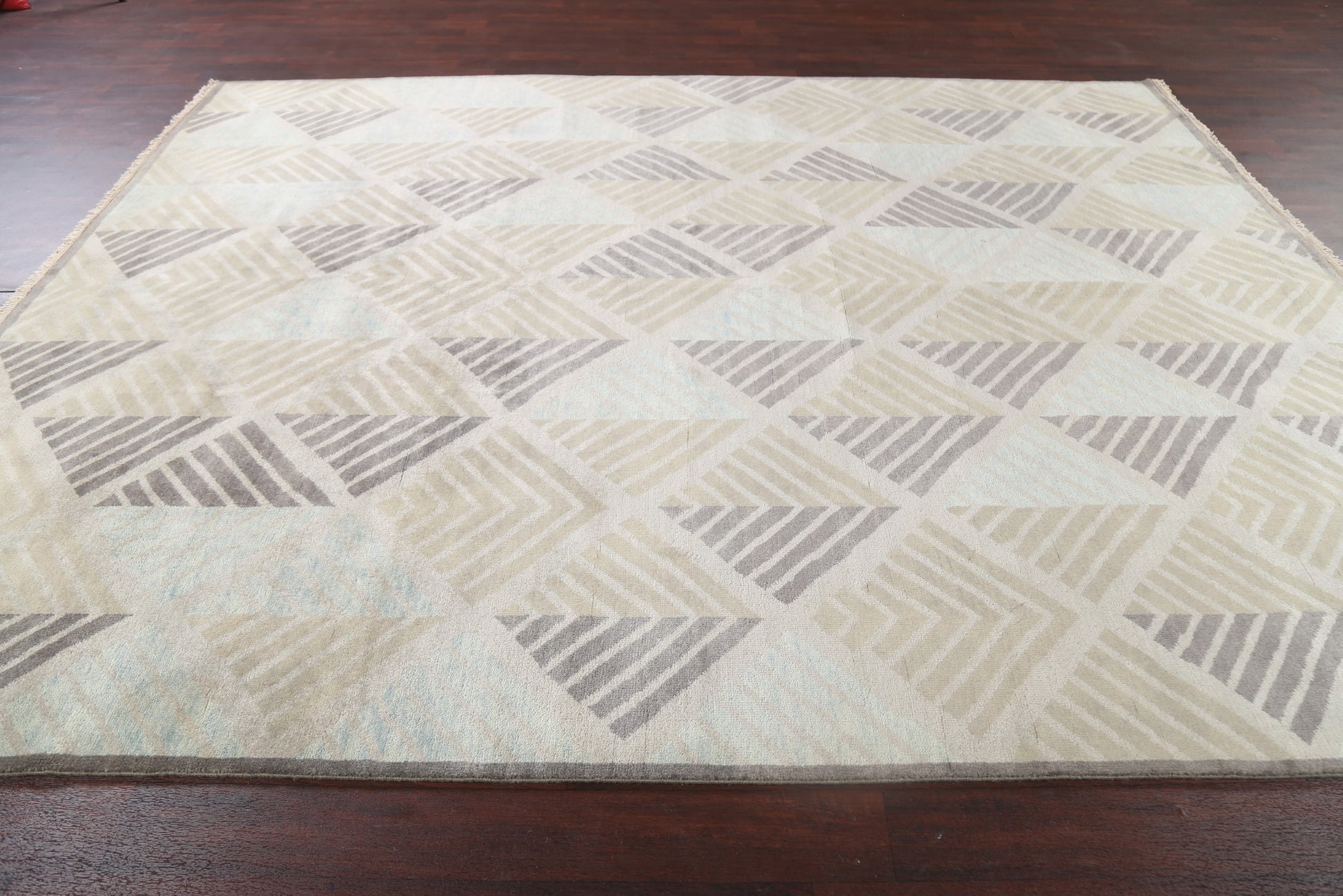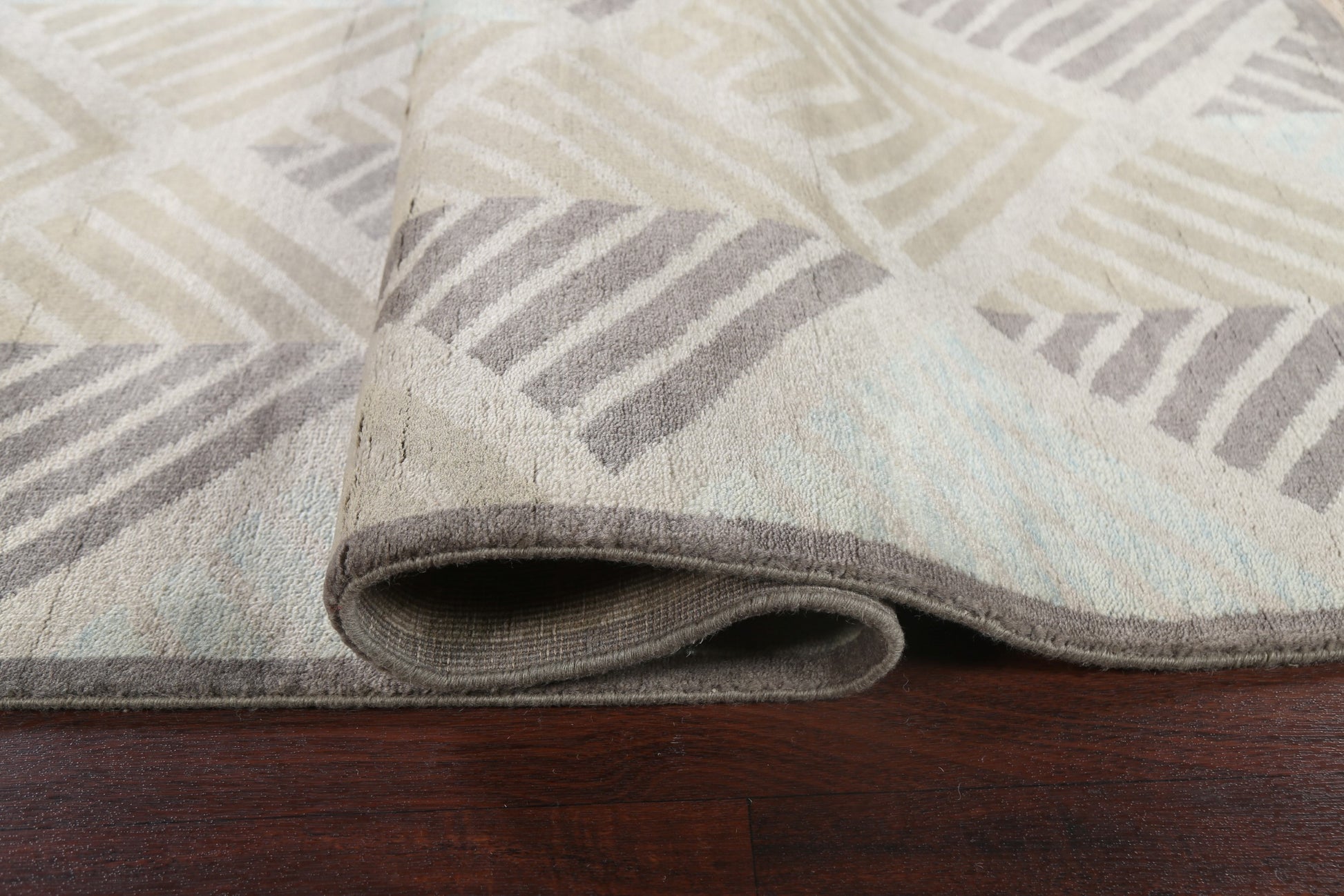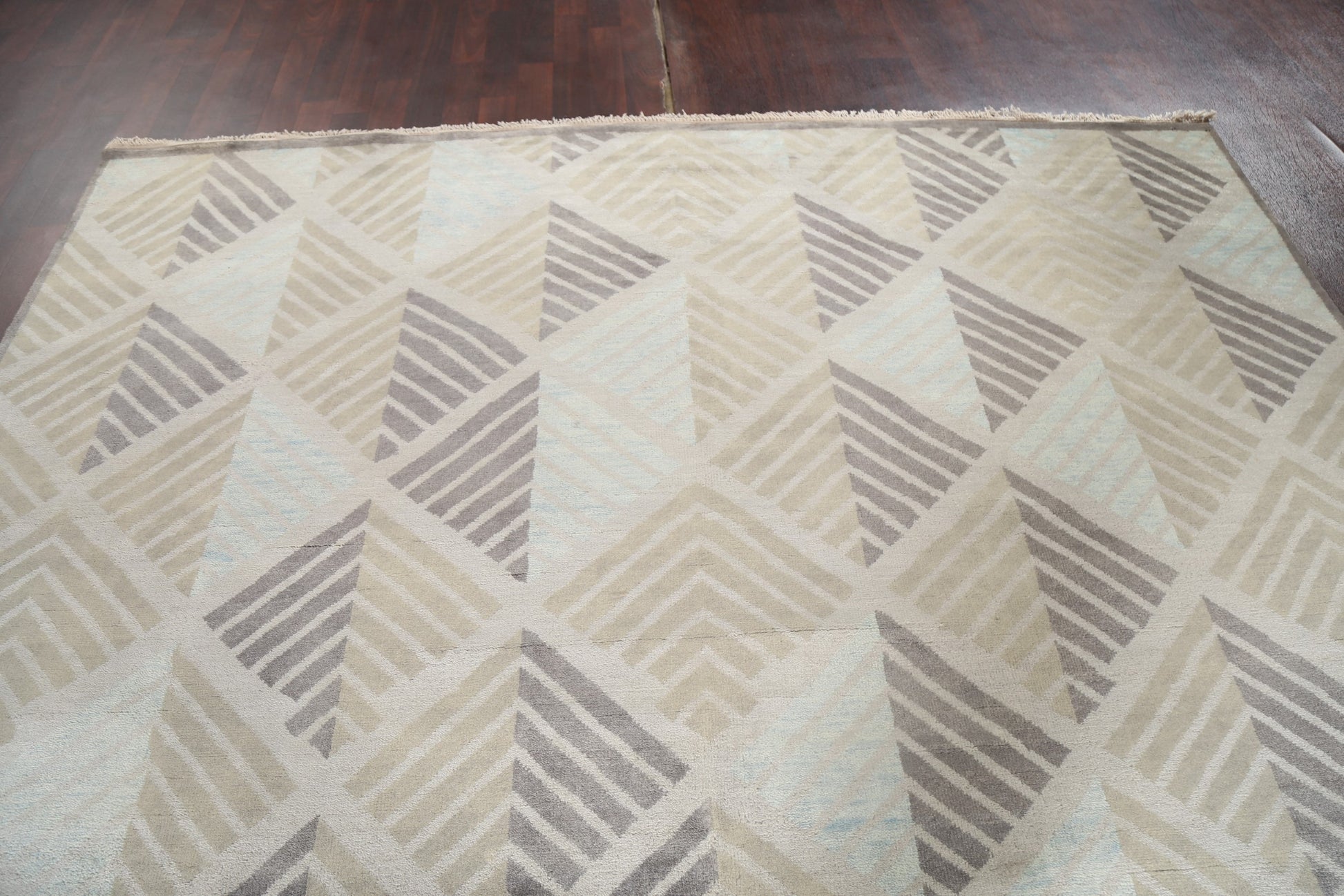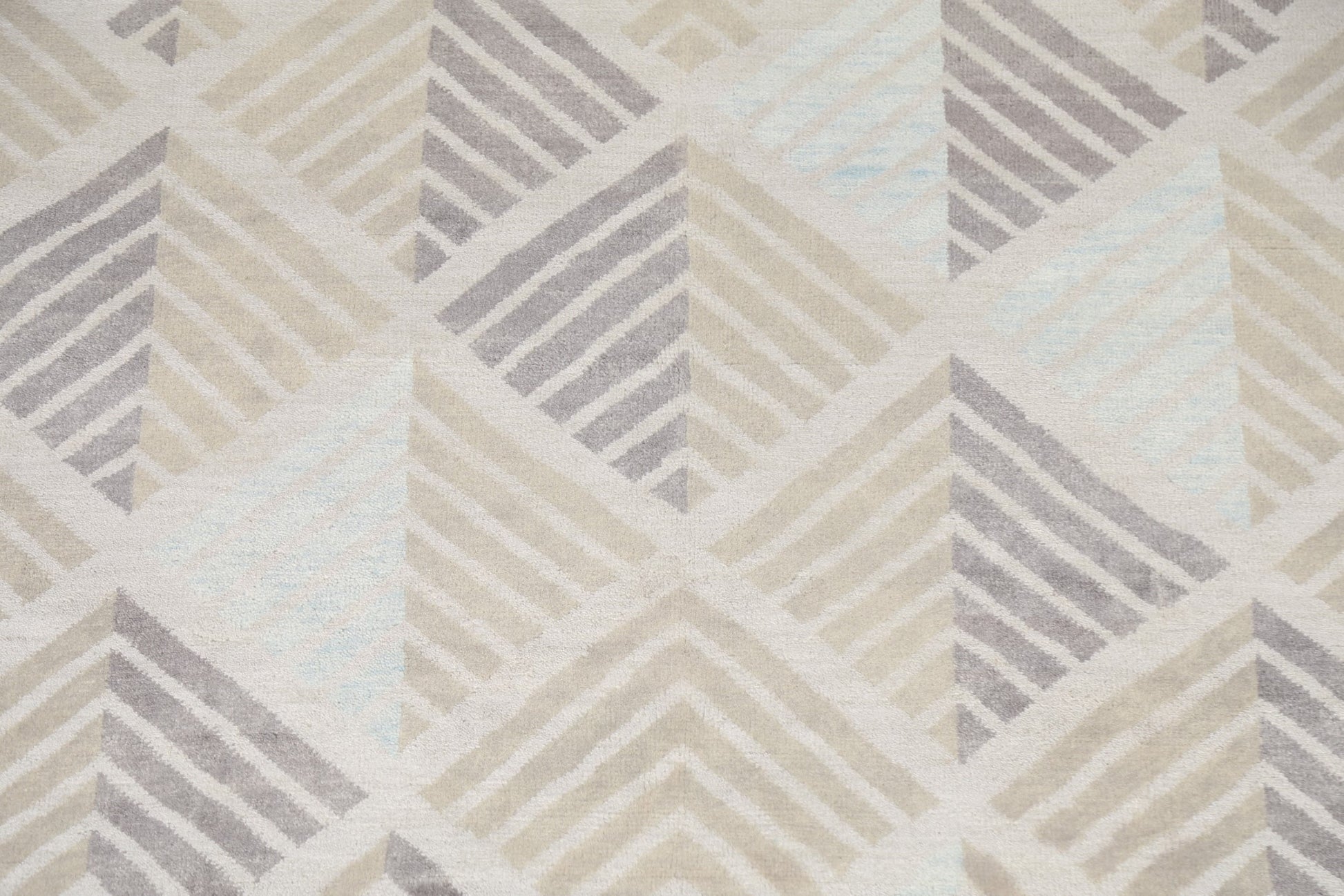 A Beautiful Genuine India Abstract rug is Hand Knotted by skillful weavers in India with 100% Wool Material. This rug is in New, First Quality condition. dimensions are 10' 8'' X 8' 0'' in foot and 325 X 244 in centimeter. the primary color is Beige & Ivories.