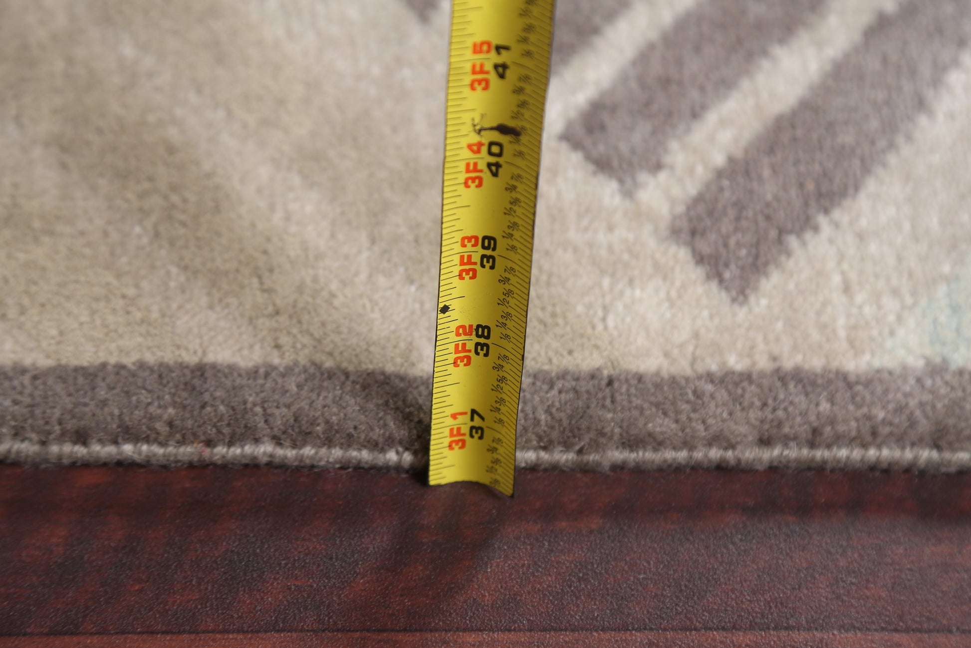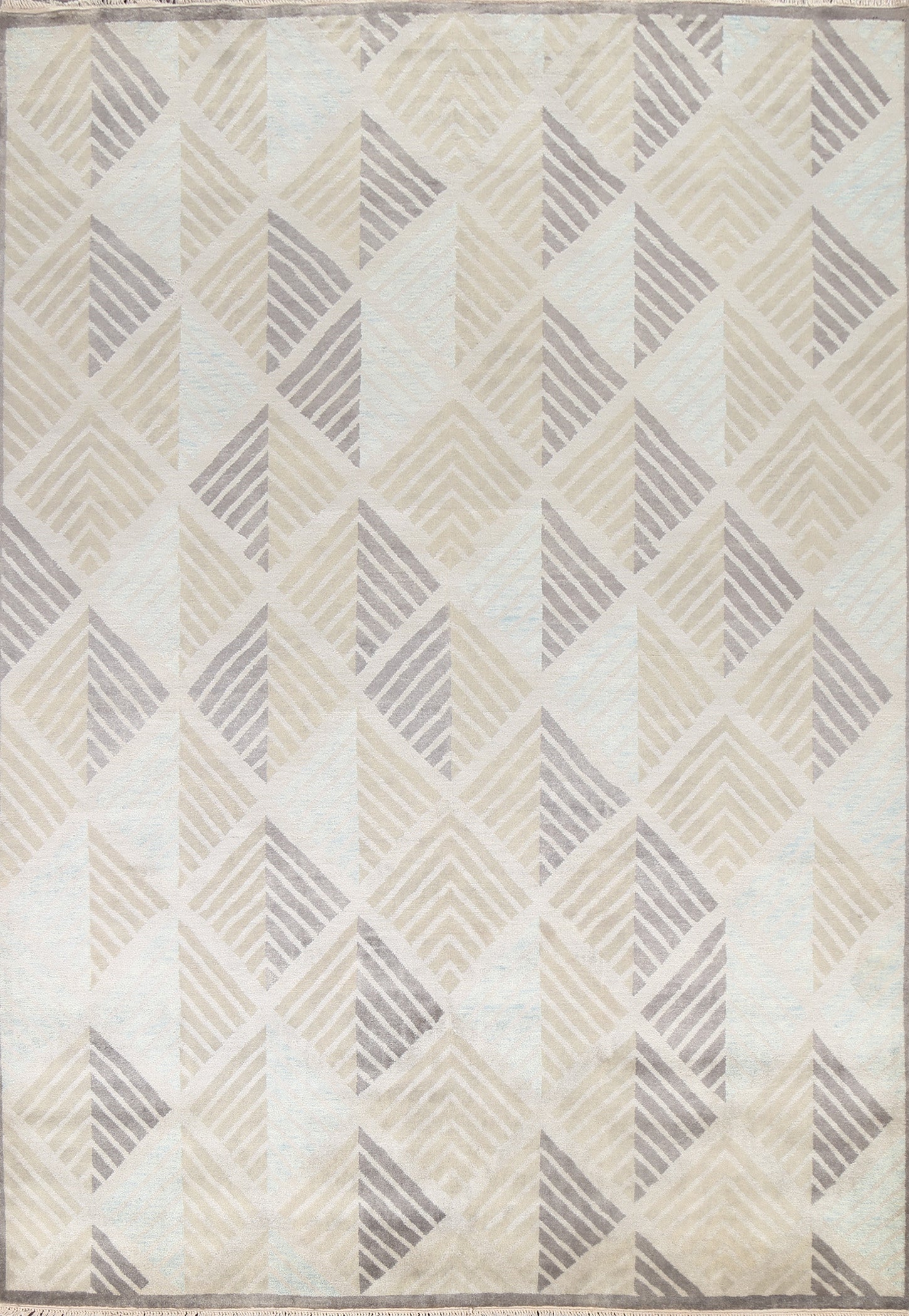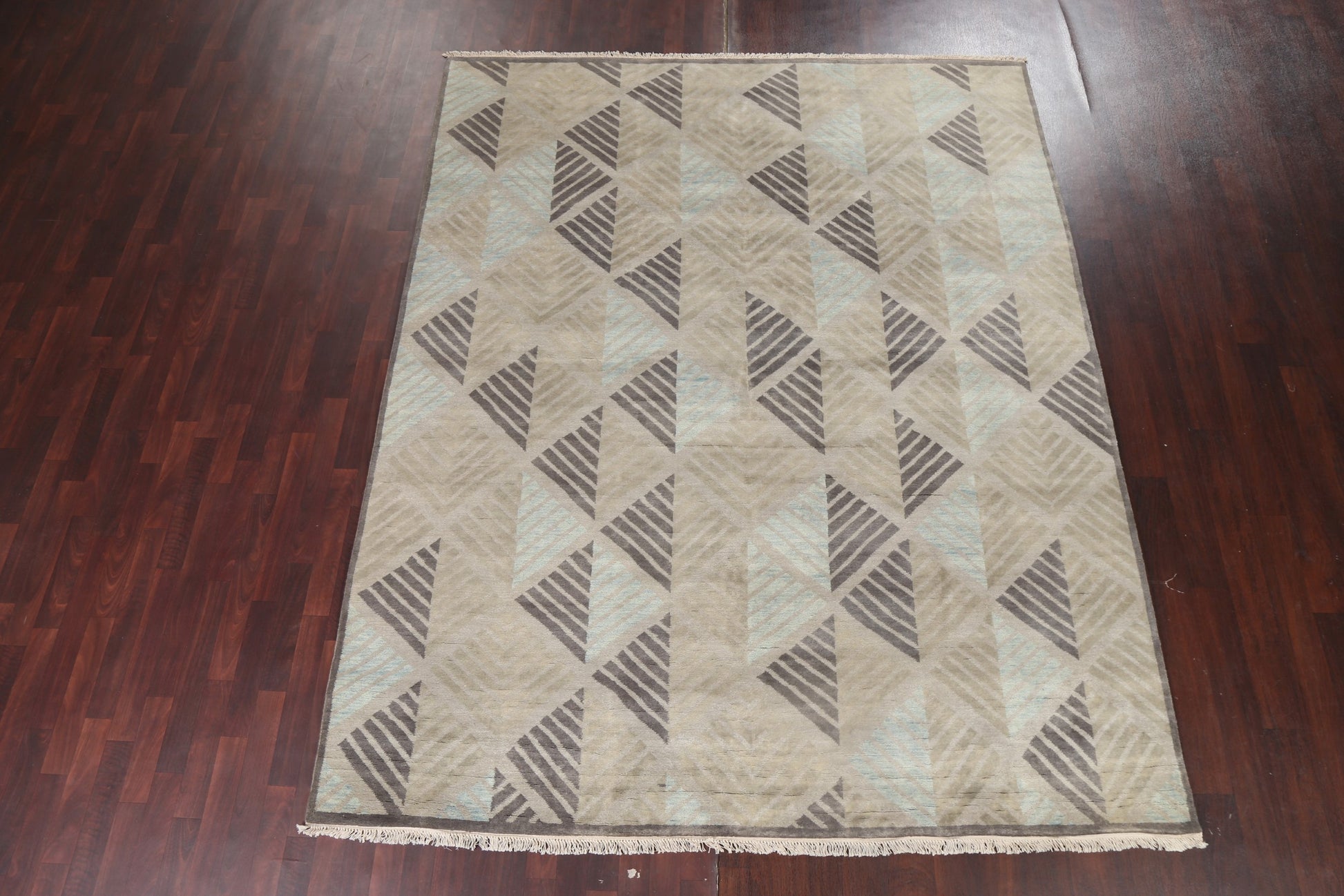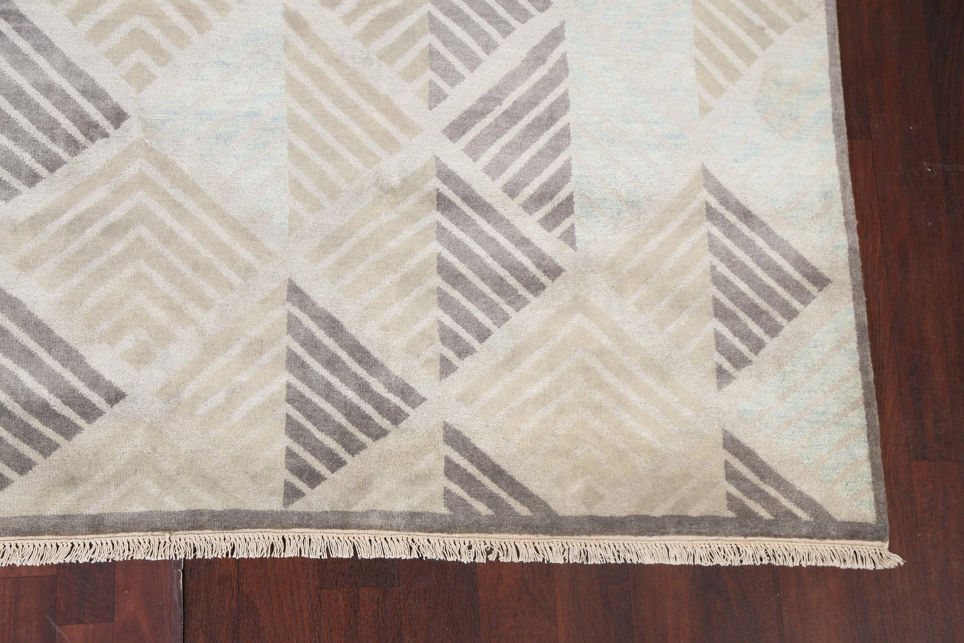 A Beautiful Genuine India Abstract rug is Hand Knotted by skillful weavers in India with 100% Wool Material. This rug is in New, First Quality condition. dimensions are 10' 8'' X 8' 0'' in foot and 325 X 244 in centimeter. the primary color is Beige & Ivories.