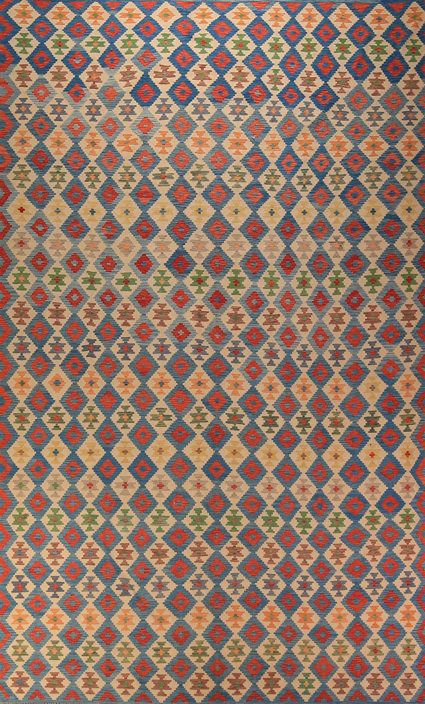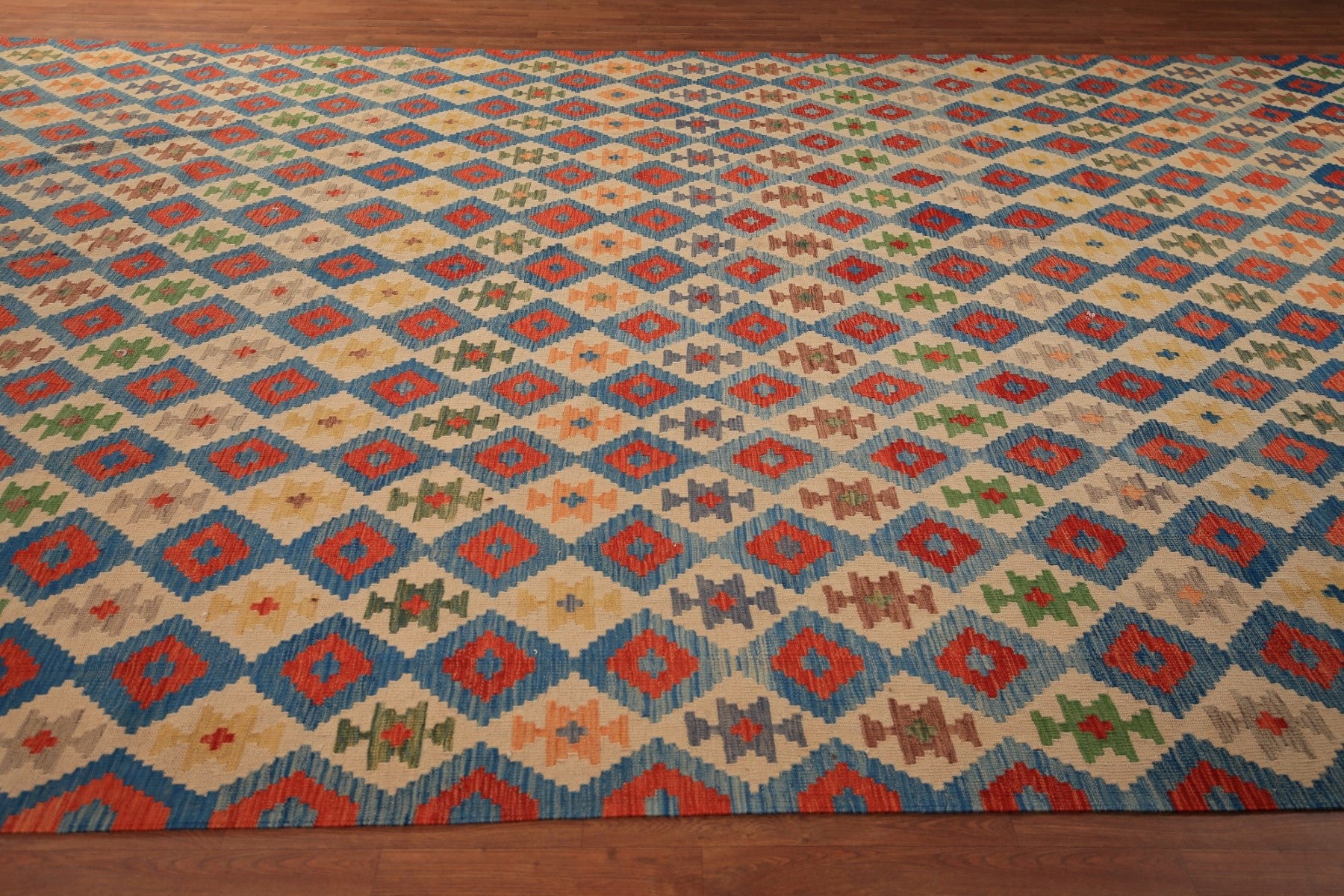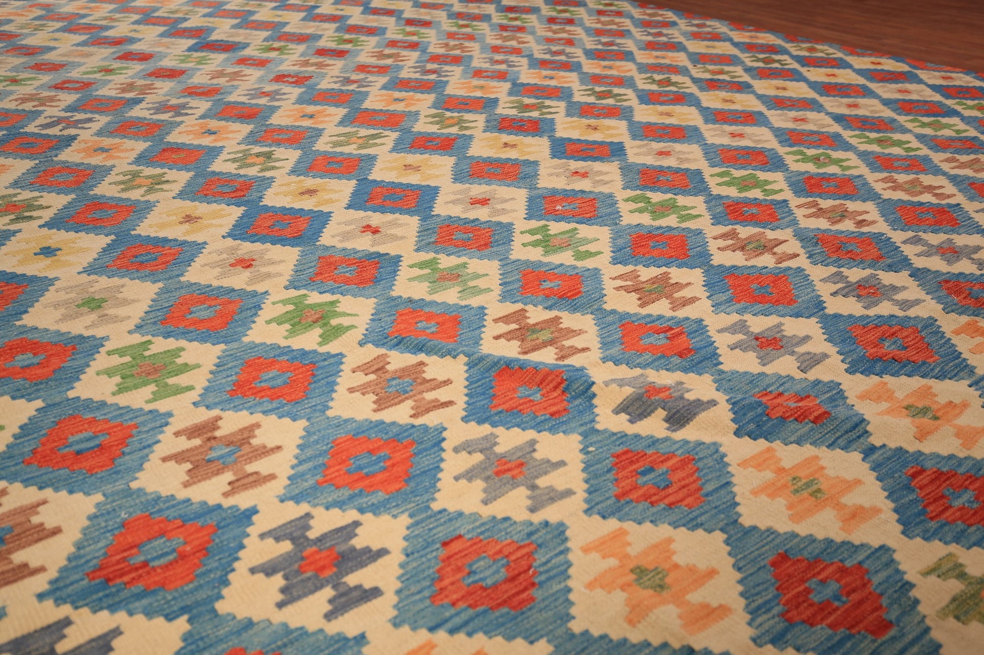 All-Over Trellis Colorful Kilim Oriental Large Rug 10x16