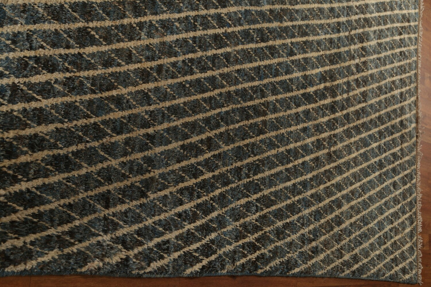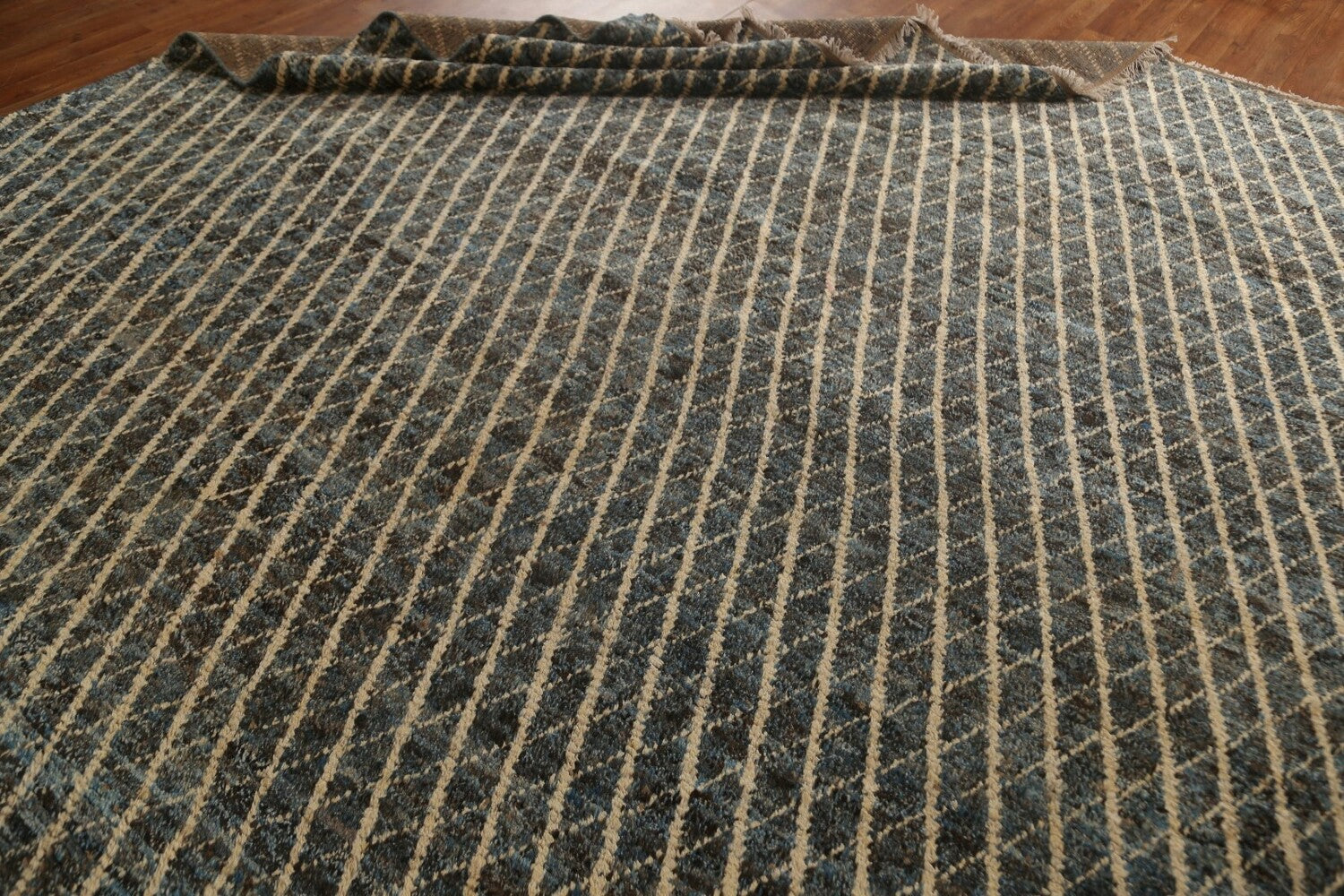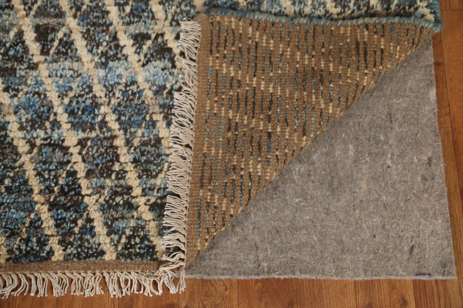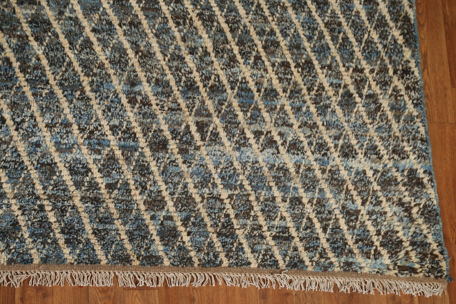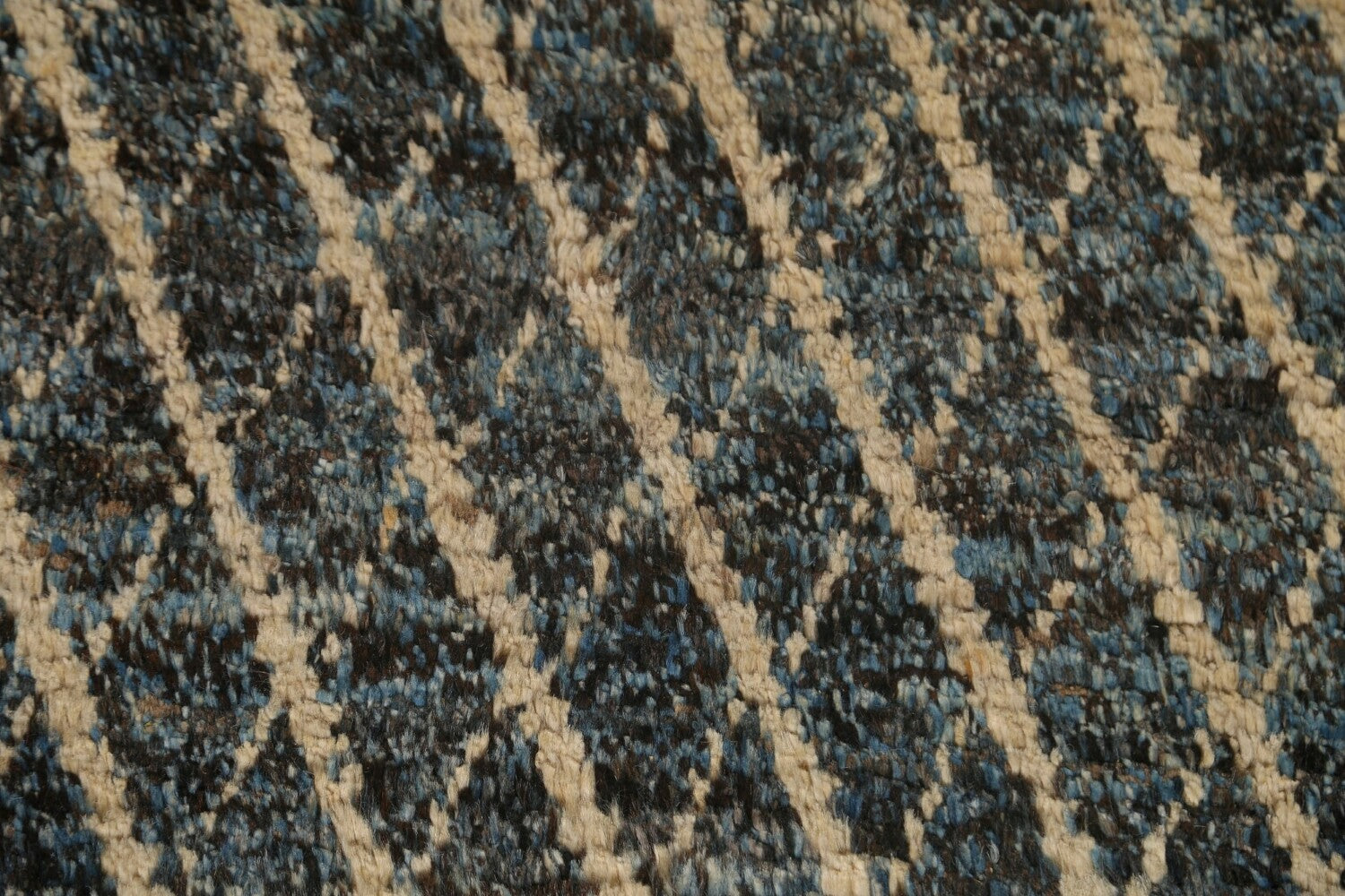 A Beautiful Genuine Pakistan Moroccan rug is Hand Knotted by skillful weavers in Pakistan with 100% Wool Material. This rug is in condition. dimensions are 14' 2'' X 10' 2'' in foot and 432 X 310 in centimeter. the primary color is Navy Blue & Blues.