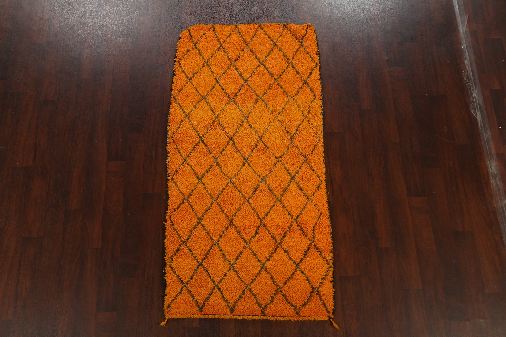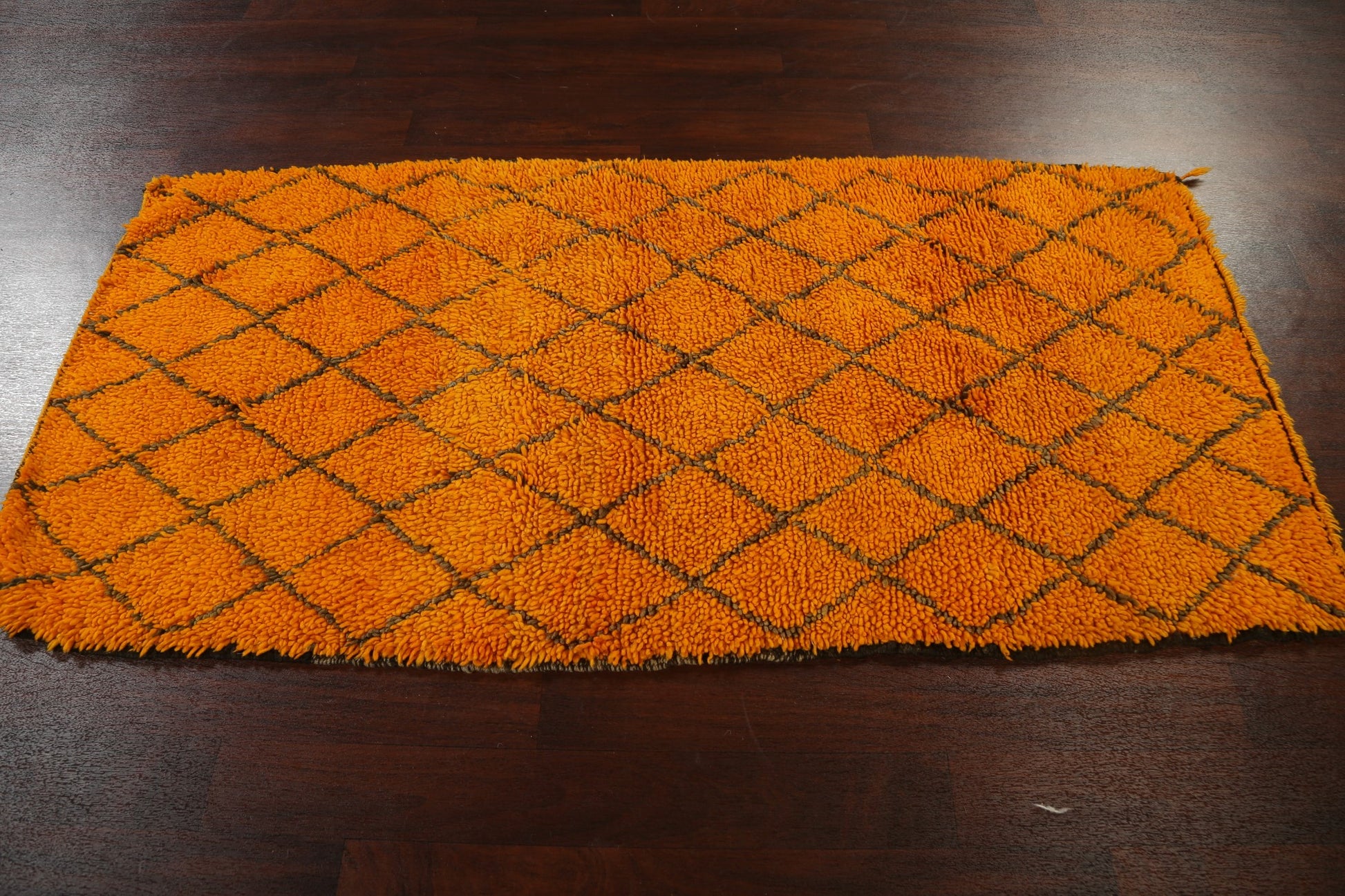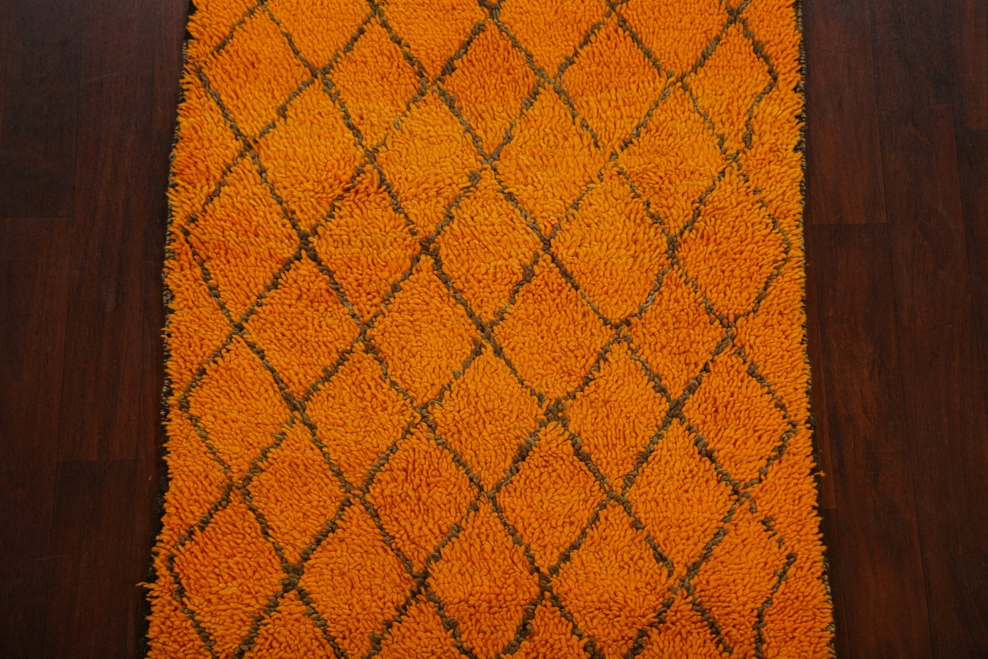 A Beautiful Genuine Morocco Moroccan rug is Hand Knotted by skillful weavers in Morocco with 100% Wool Material. This rug is in New, First Quality condition. dimensions are 7' 1'' X 3' 6'' in foot and 216 X 107 in centimeter. the primary color is Oranges & Rust.