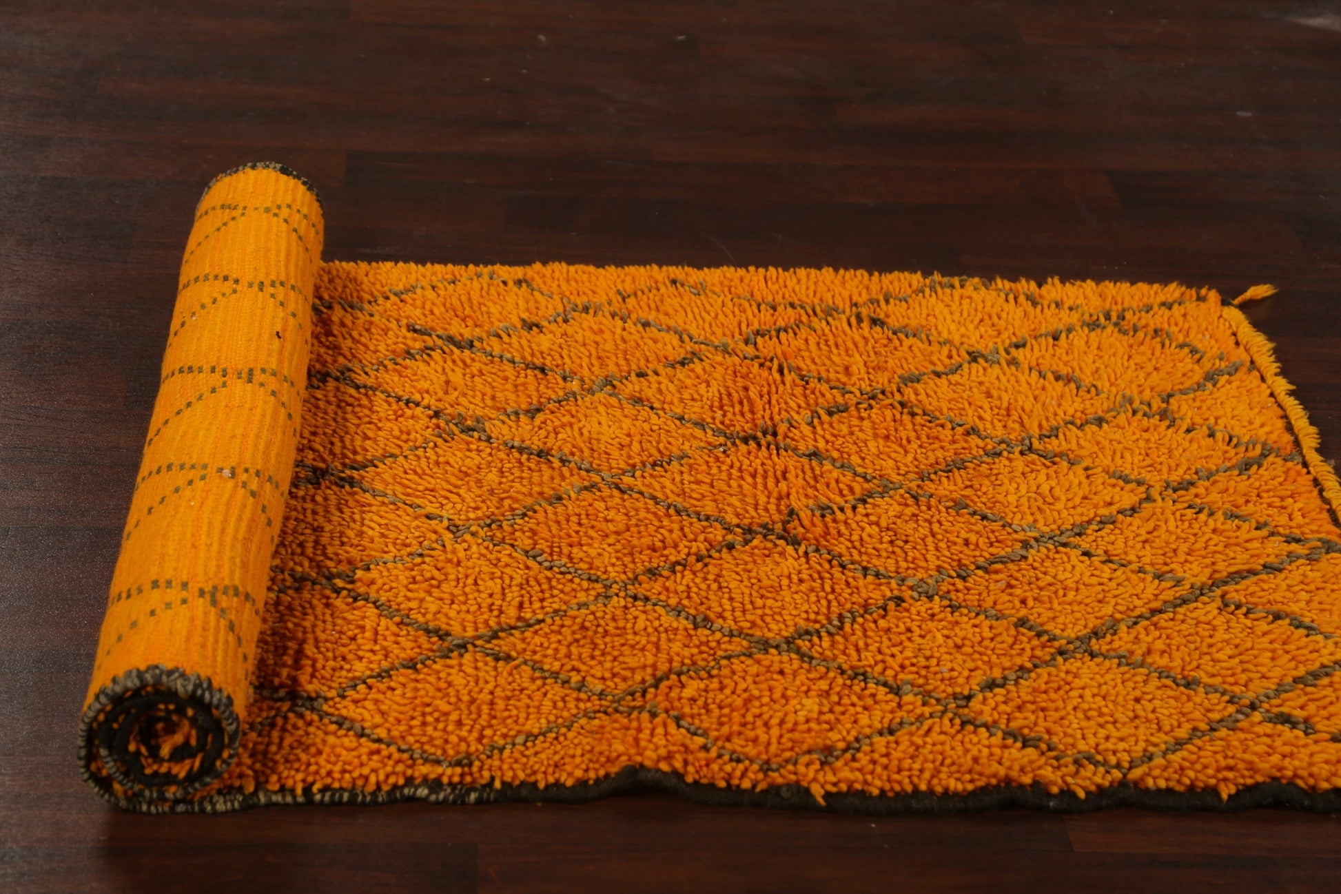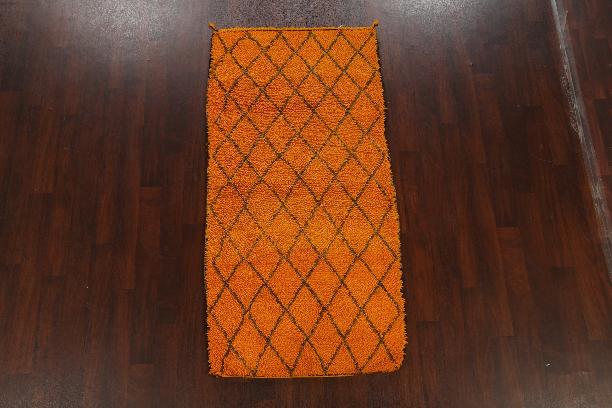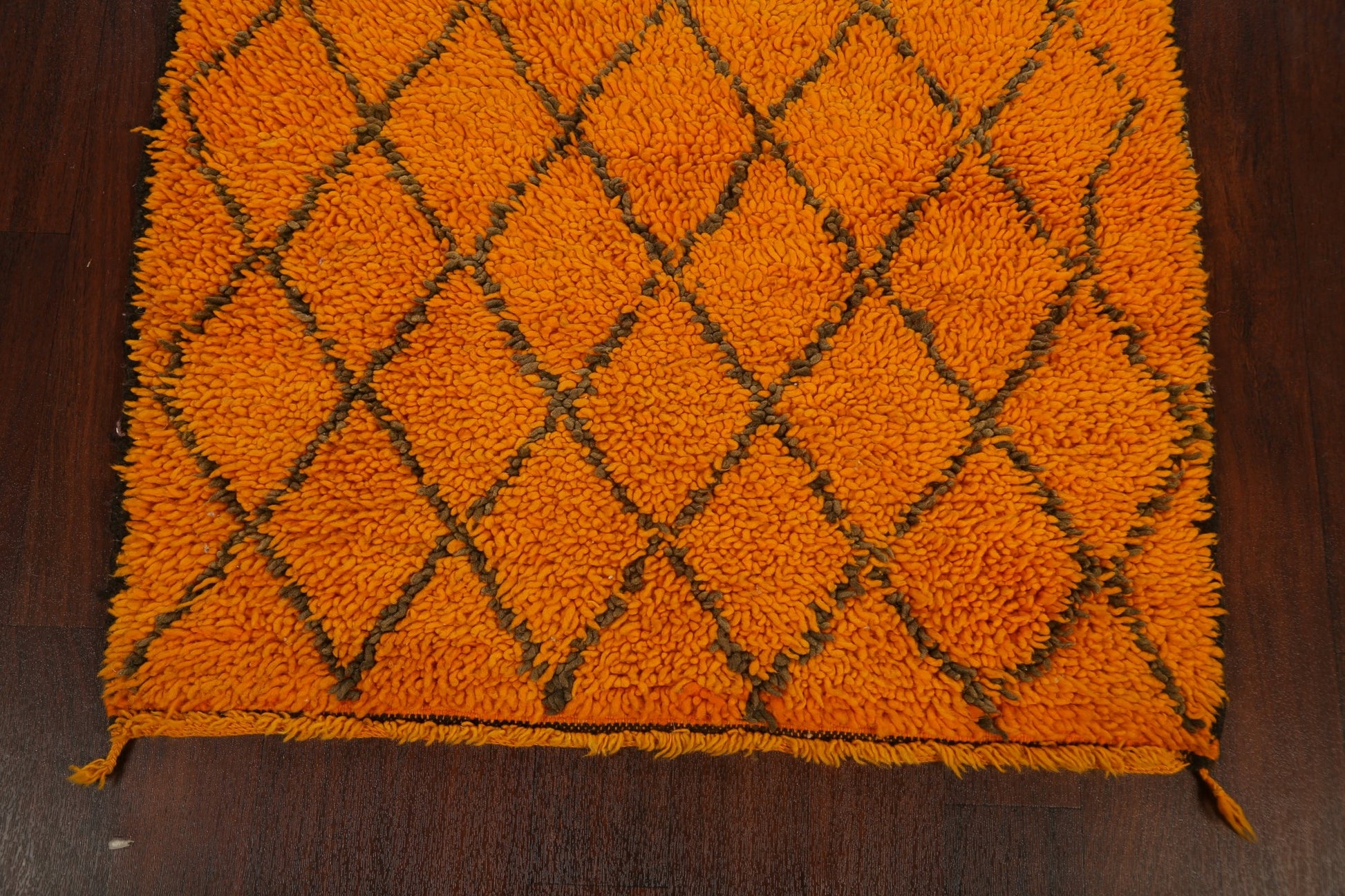 A Beautiful Genuine Morocco Moroccan rug is Hand Knotted by skillful weavers in Morocco with 100% Wool Material. This rug is in New, First Quality condition. dimensions are 7' 1'' X 3' 6'' in foot and 216 X 107 in centimeter. the primary color is Oranges & Rust.
