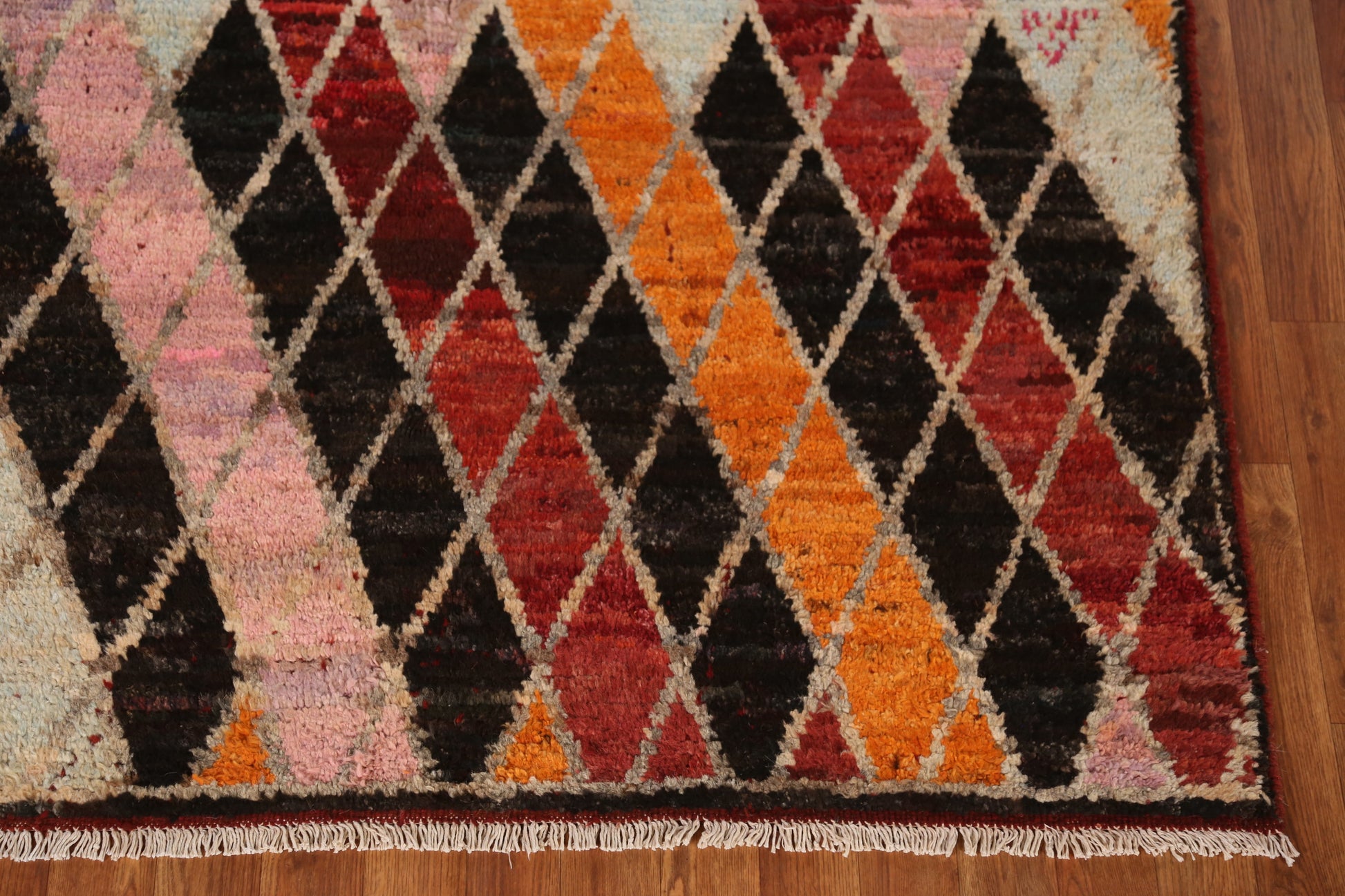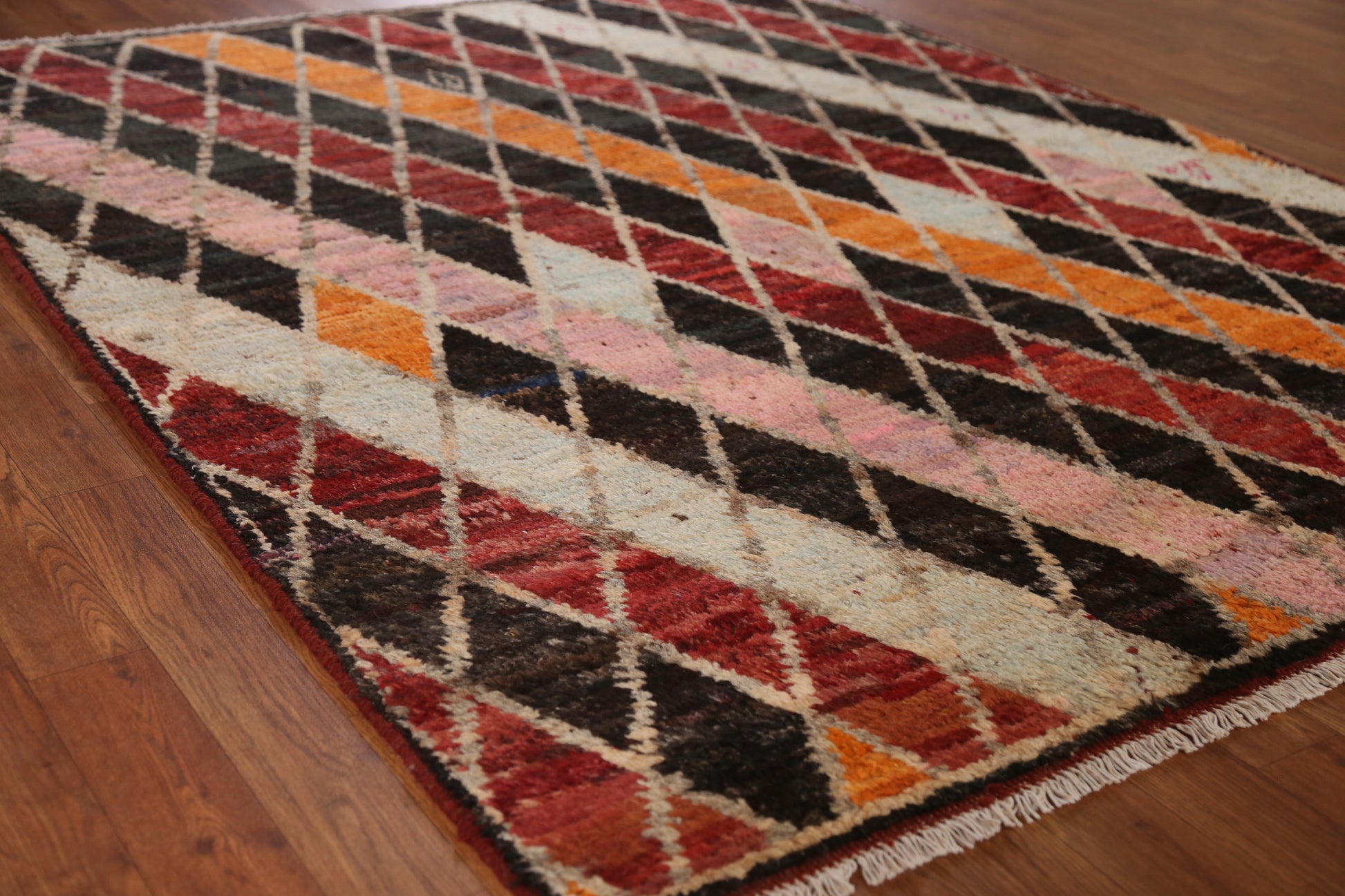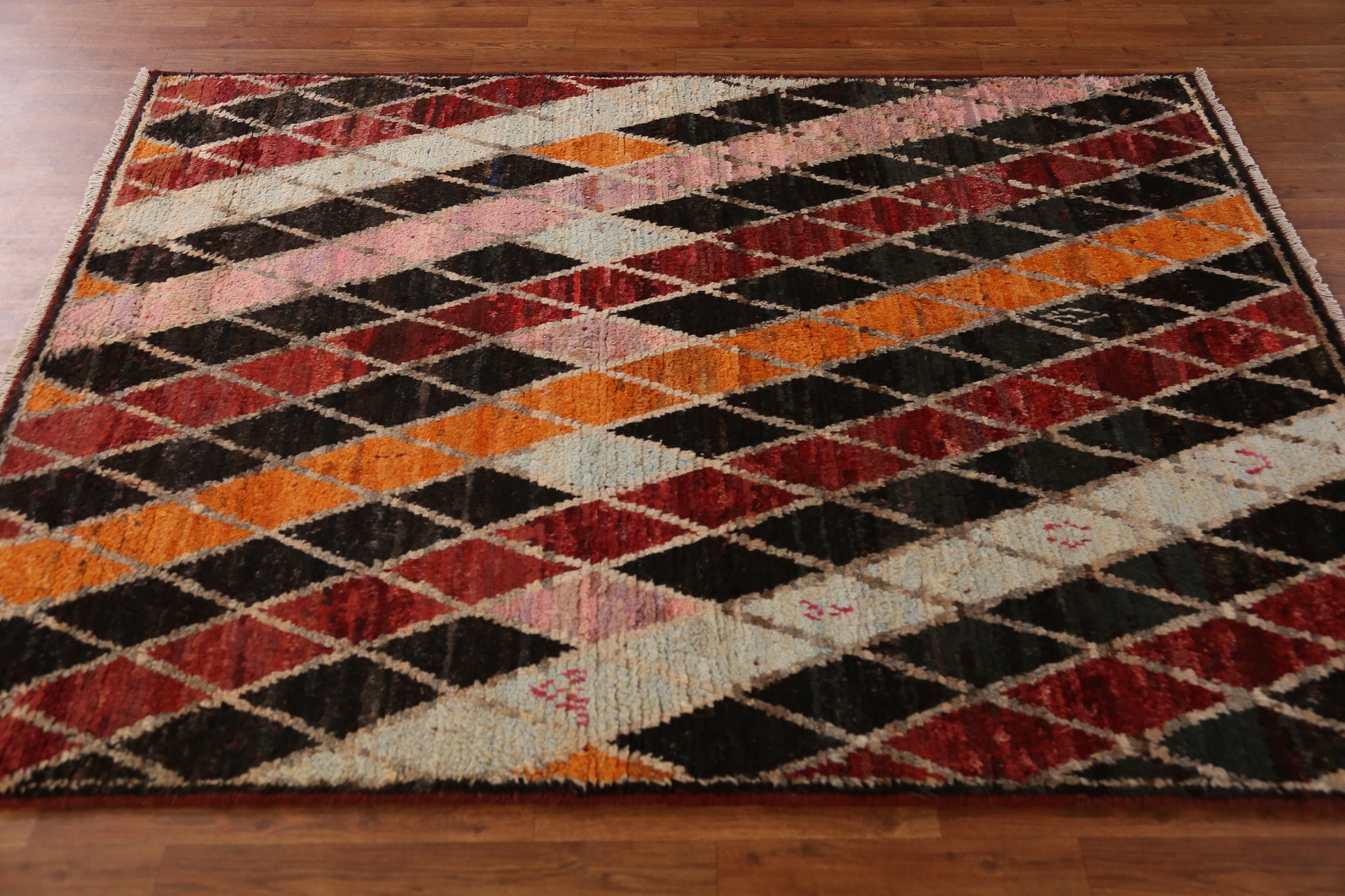 A Beautiful Genuine Pakistan Moroccan rug is Hand Knotted by skillful weavers in Pakistan with 100% Wool Material. This rug is in New, First Quality condition. dimensions are 6' 7'' X 5' 0'' in foot and 201 X 152 in centimeter. the primary color is Multi-Colored.