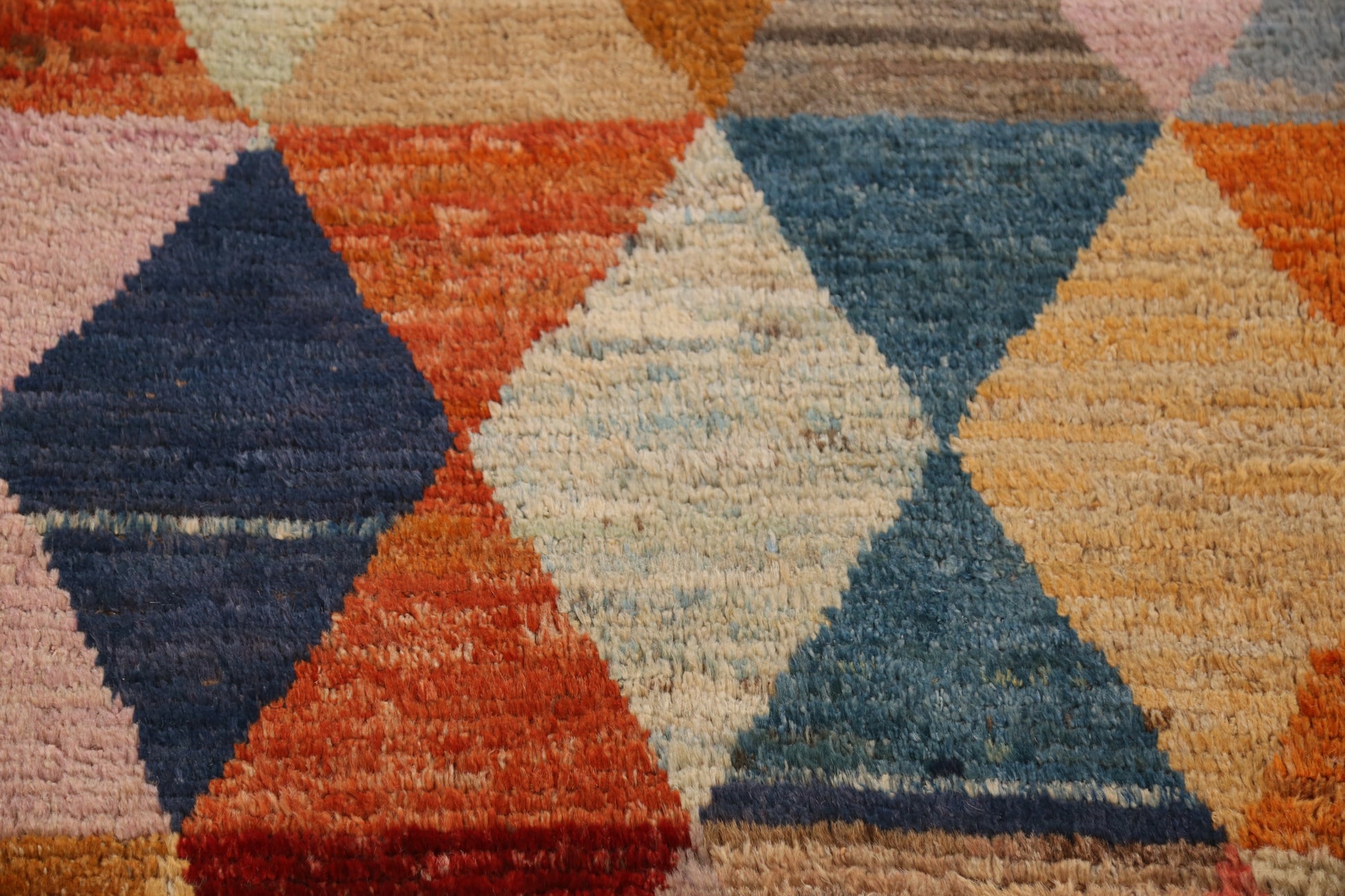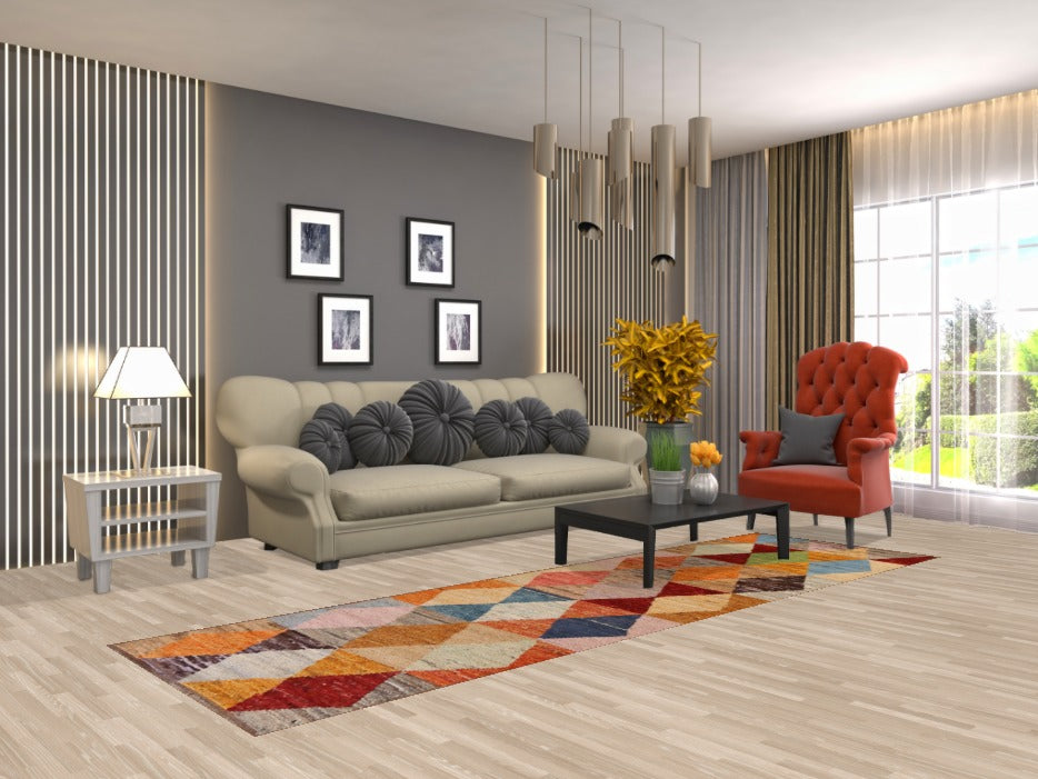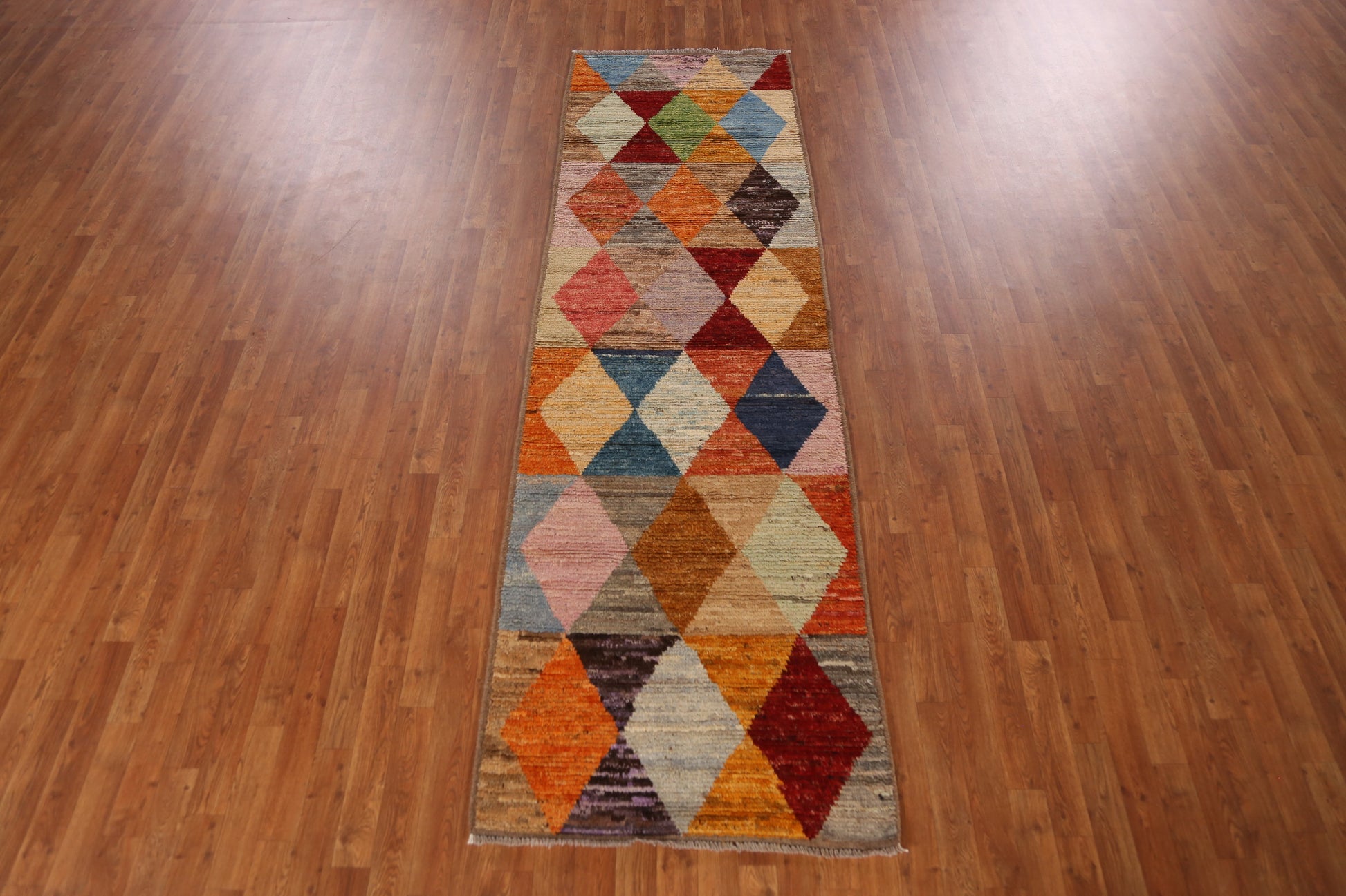 A Beautiful Genuine Pakistan Moroccan rug is Hand Knotted by skillful weavers in Pakistan with 100% Wool Material. This rug is in New, First Quality condition. dimensions are 9' 11'' X 2' 11'' in foot and 302 X 89 in centimeter. the primary color is Multi-Colored.
