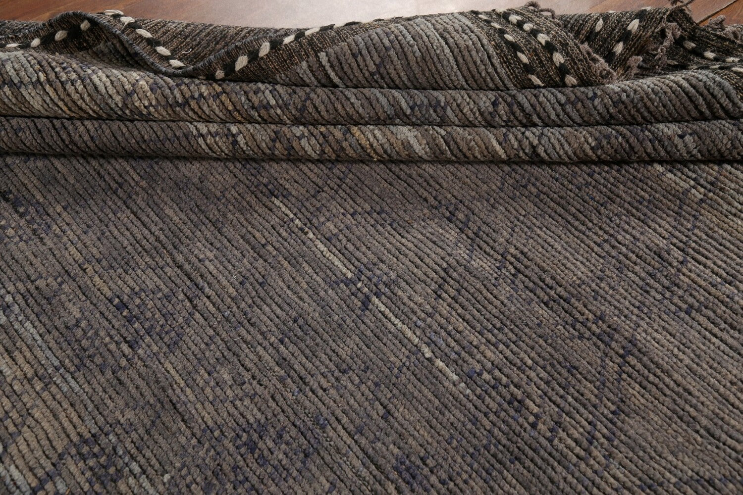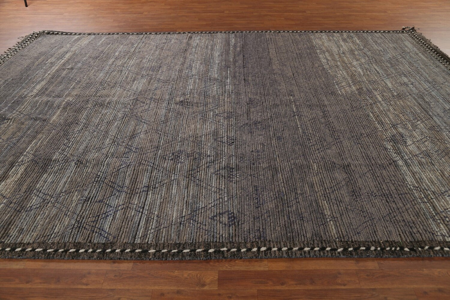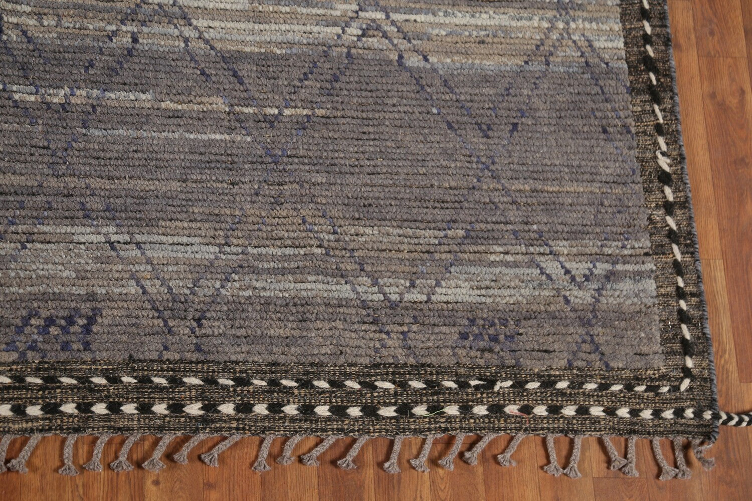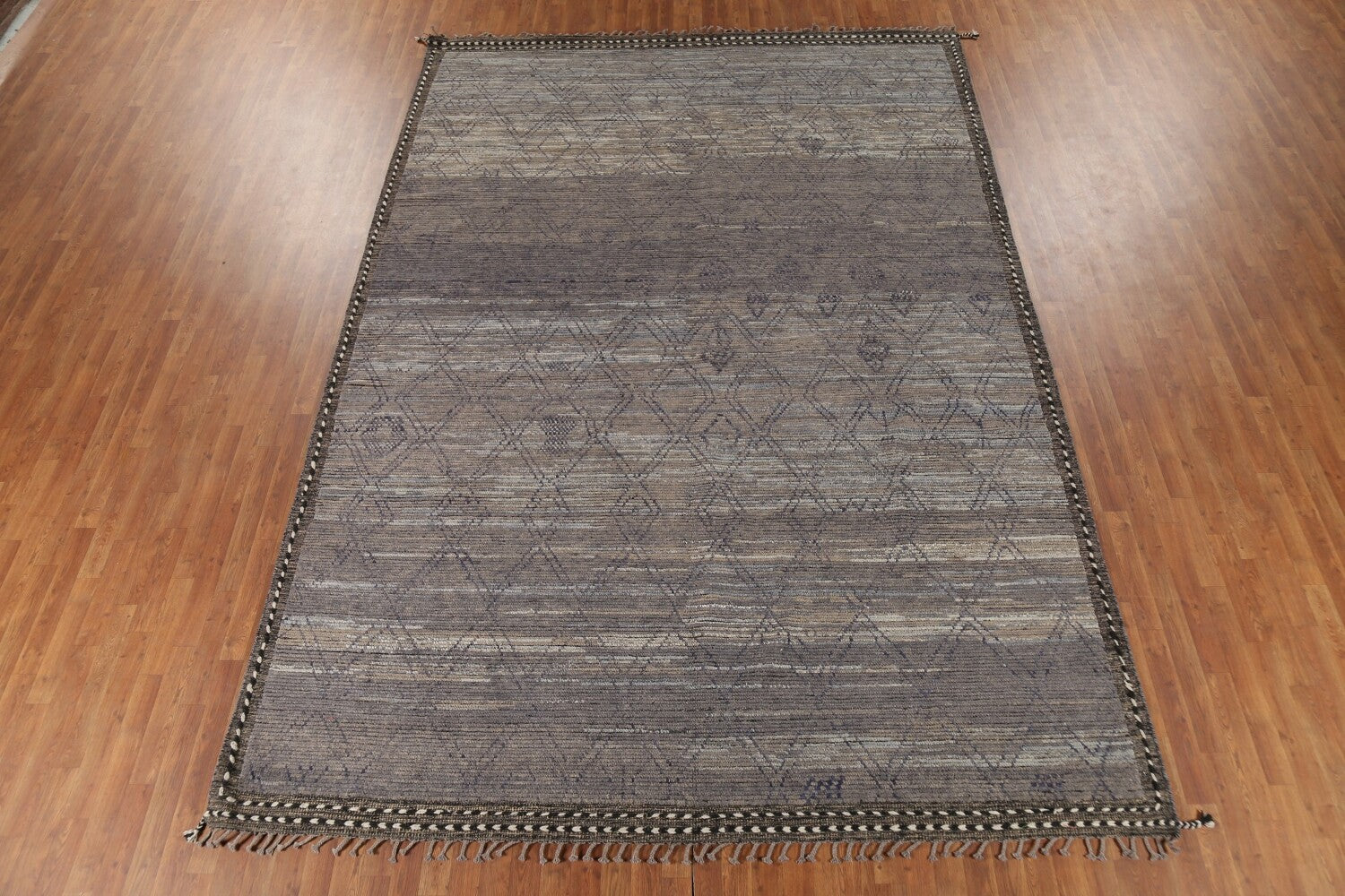 A Beautiful Genuine Pakistan Moroccan rug is Hand Knotted by skillful weavers in Pakistan with 100% Wool Material. This rug is in New, First Quality condition. dimensions are 13' 4'' X 9' 1'' in foot and 406 X 277 in centimeter. the primary color is Greys & Charcoal.