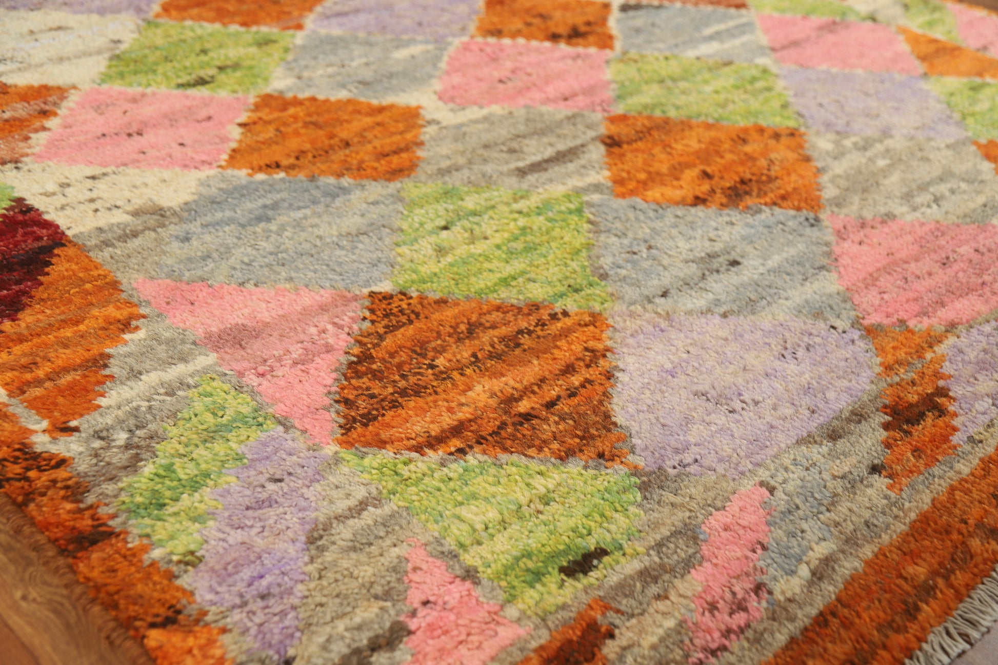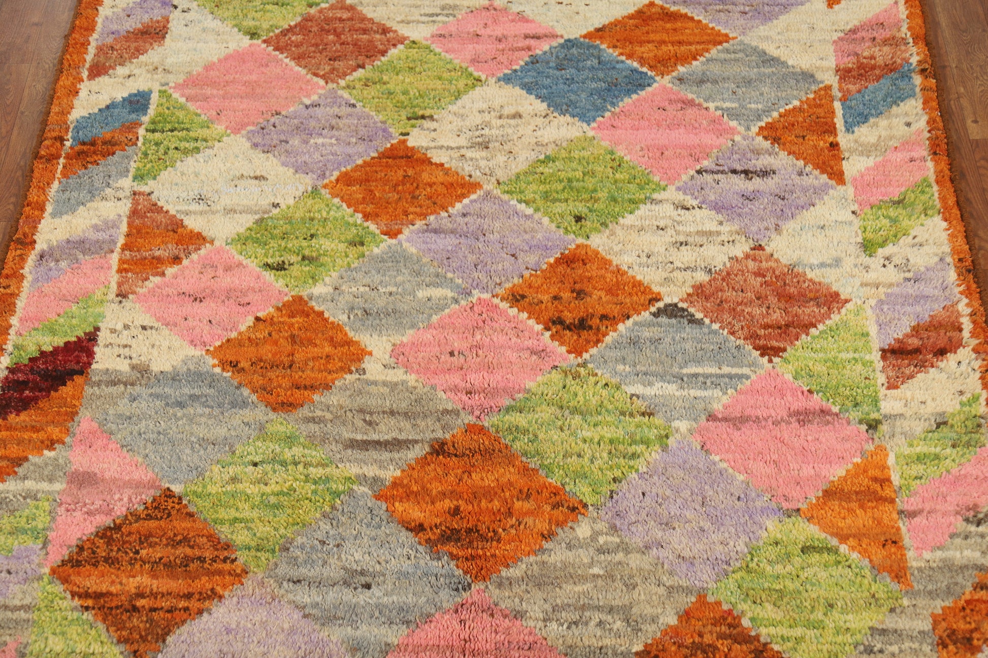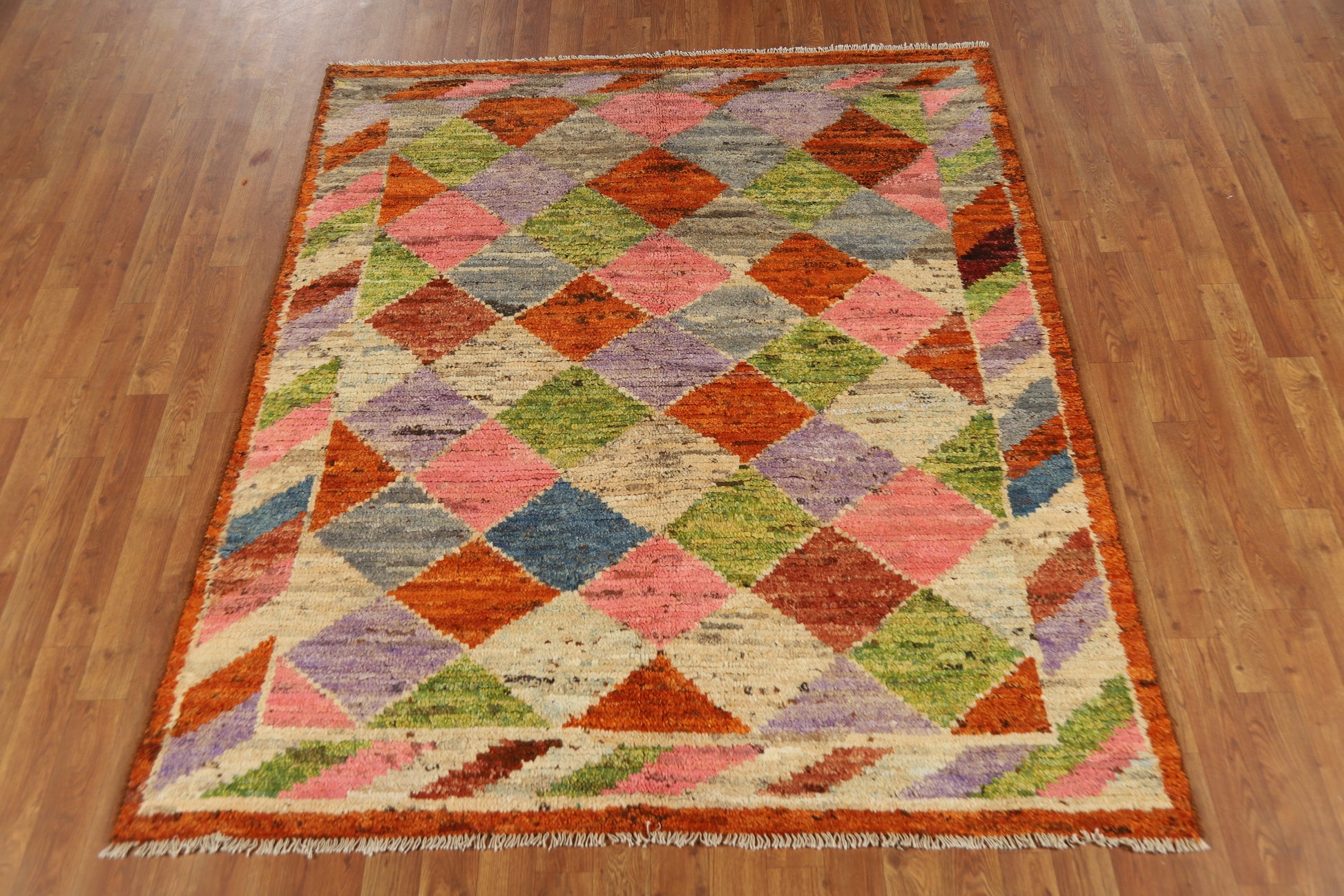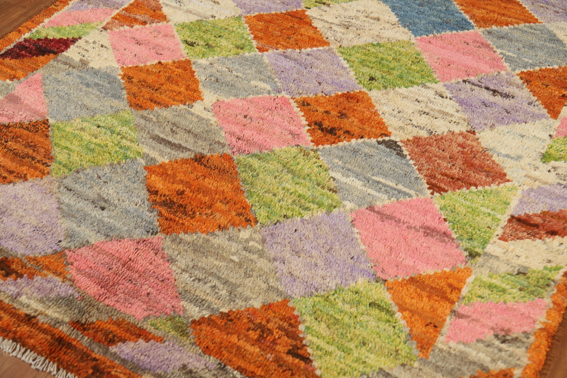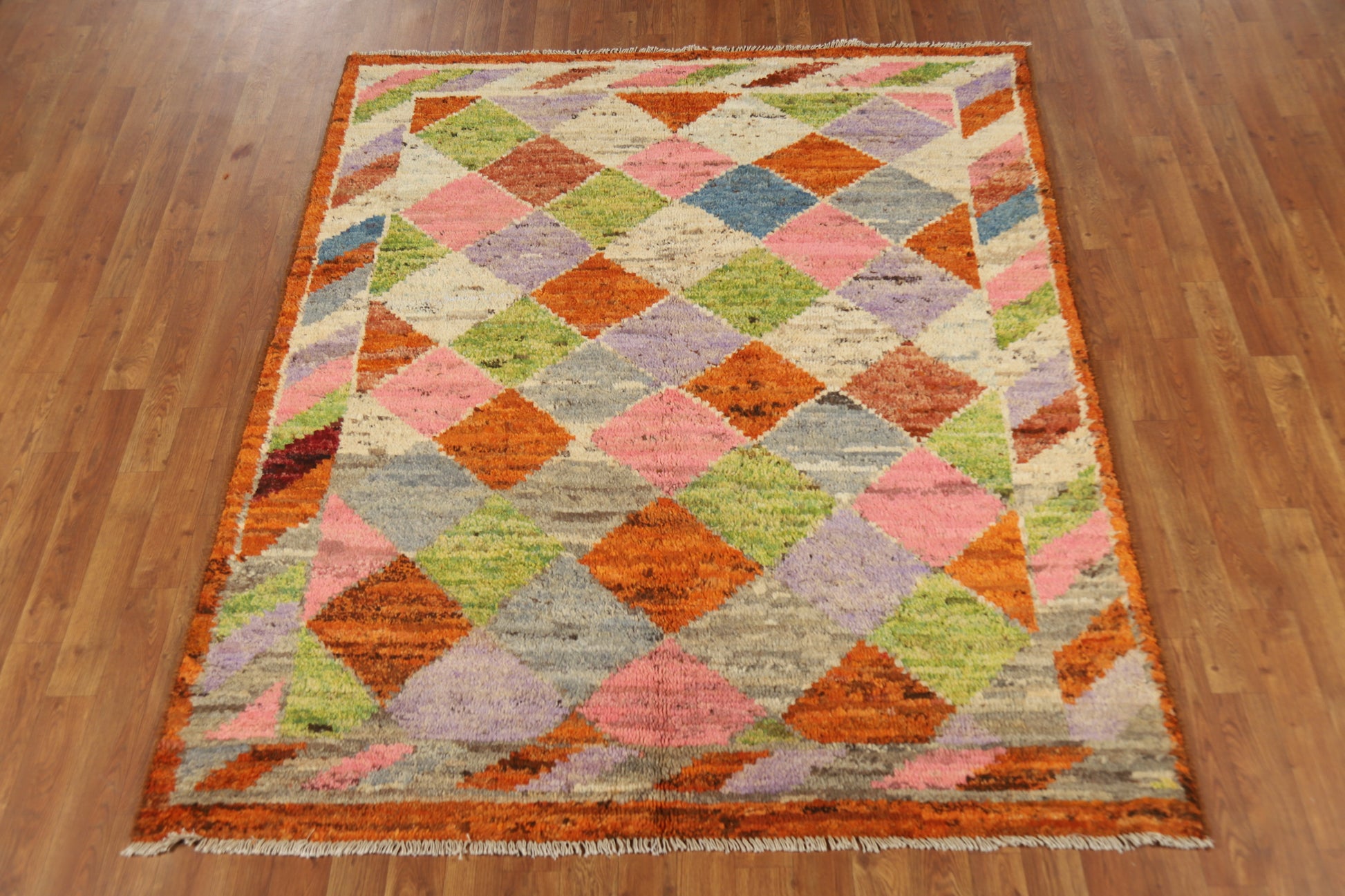 A Beautiful Genuine Pakistan Moroccan rug is Hand Knotted by skillful weavers in Pakistan with 100% Wool Material. This rug is in New, First Quality condition. dimensions are 6' 4'' X 5' 3'' in foot and 193 X 160 in centimeter. the primary color is Multi-Colored.