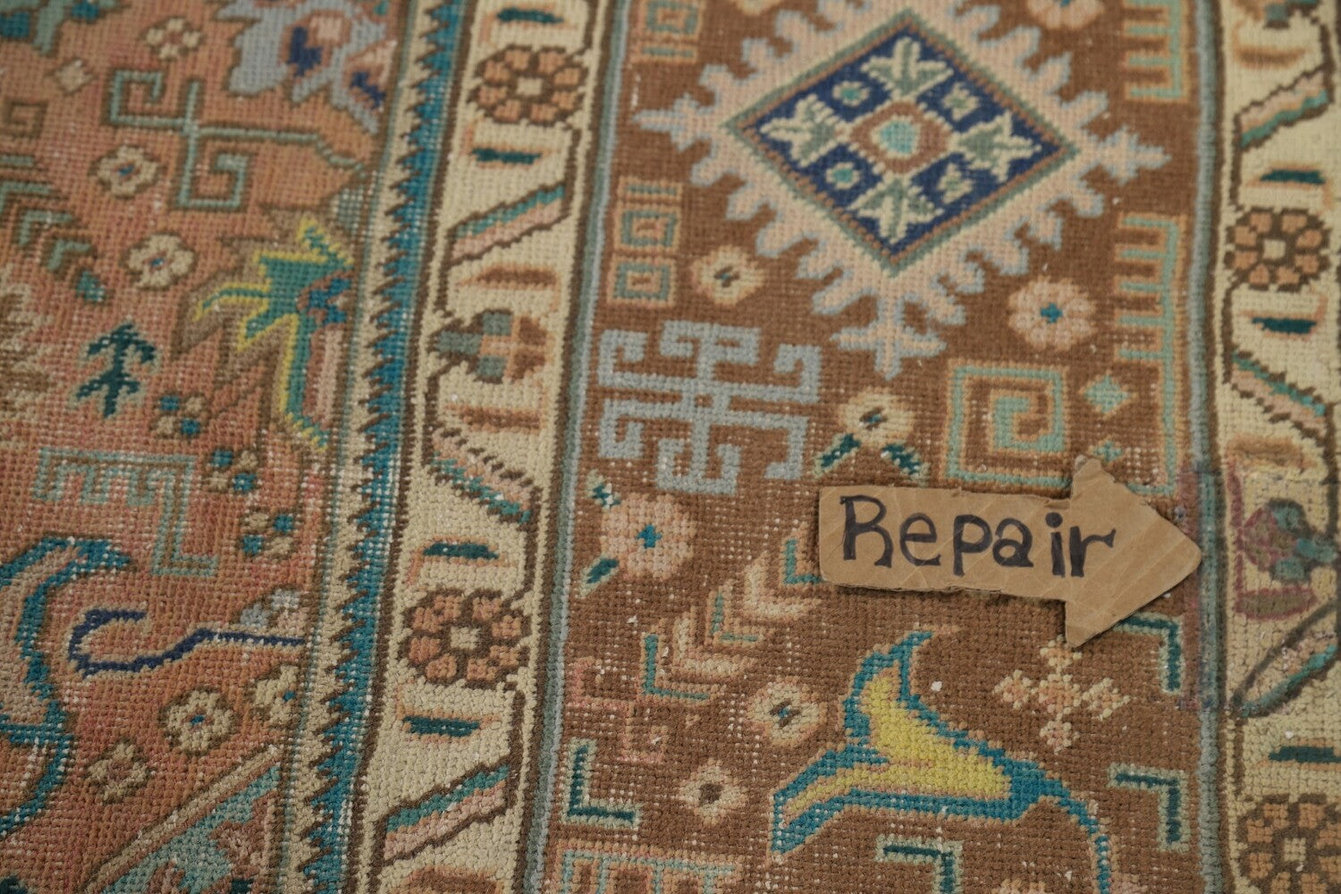 A Beautiful Genuine Persia ( Persia ) Tabriz rug is Hand Knotted by skillful weavers in Persia ( Persia ) with 100% Wool Material. This rug is in Good (Low pile-Repair) condition. dimensions are 12' 8'' X 9' 9'' in foot and 386 X 297 in centimeter. the primary color is Coral.