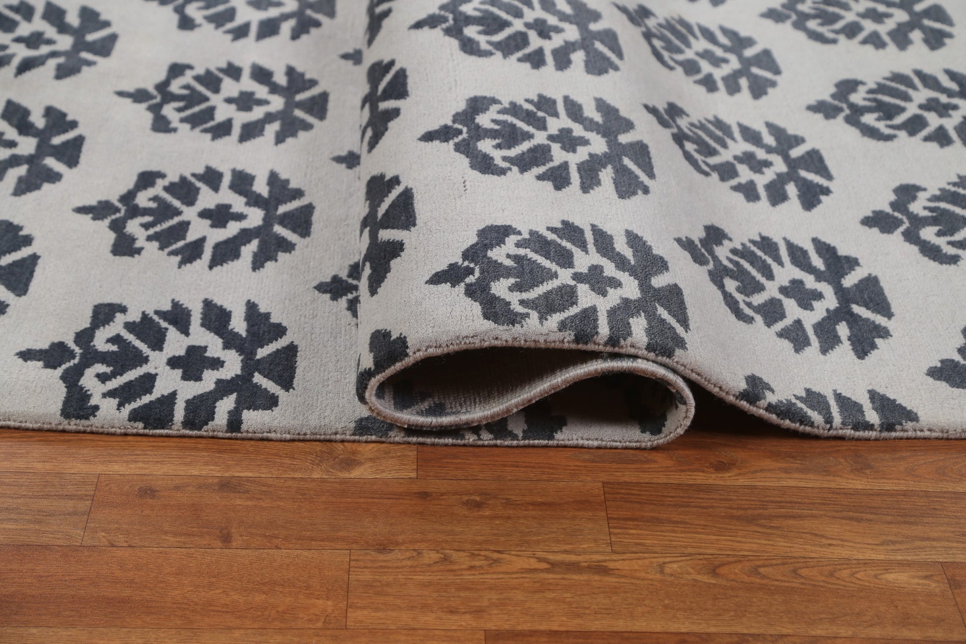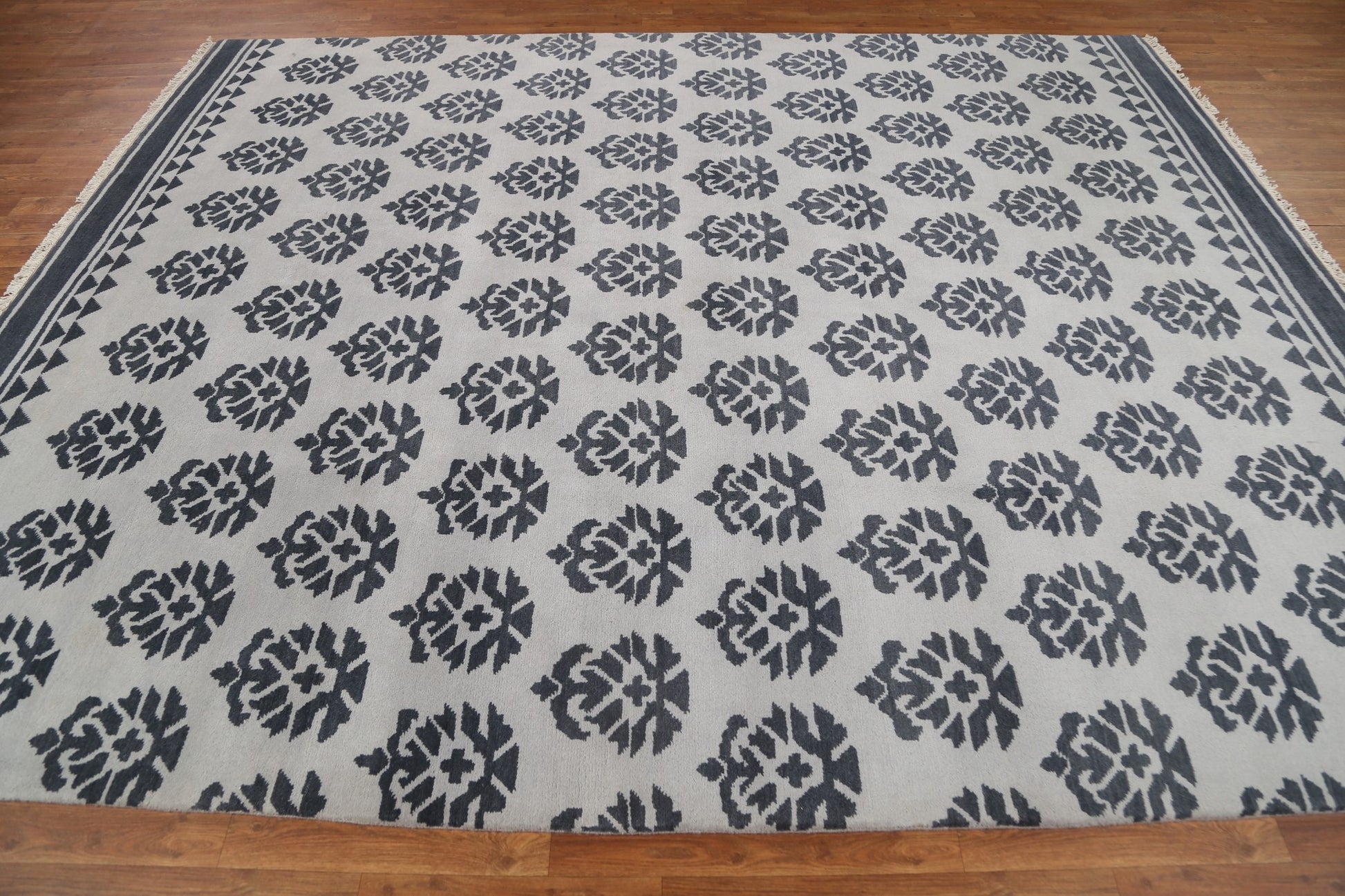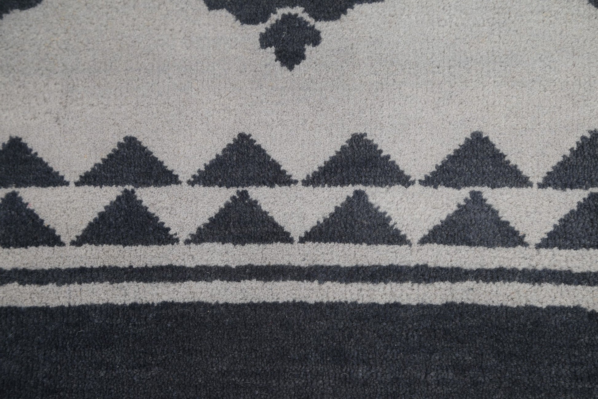A Beautiful Genuine India Abstract rug is Hand Knotted by skillful weavers in India with 100% Wool Material. This rug is in New, First Quality condition. dimensions are 9' 10'' X 8' 0'' in foot and 300 X 244 in centimeter. the primary color is Greys & Charcoal.