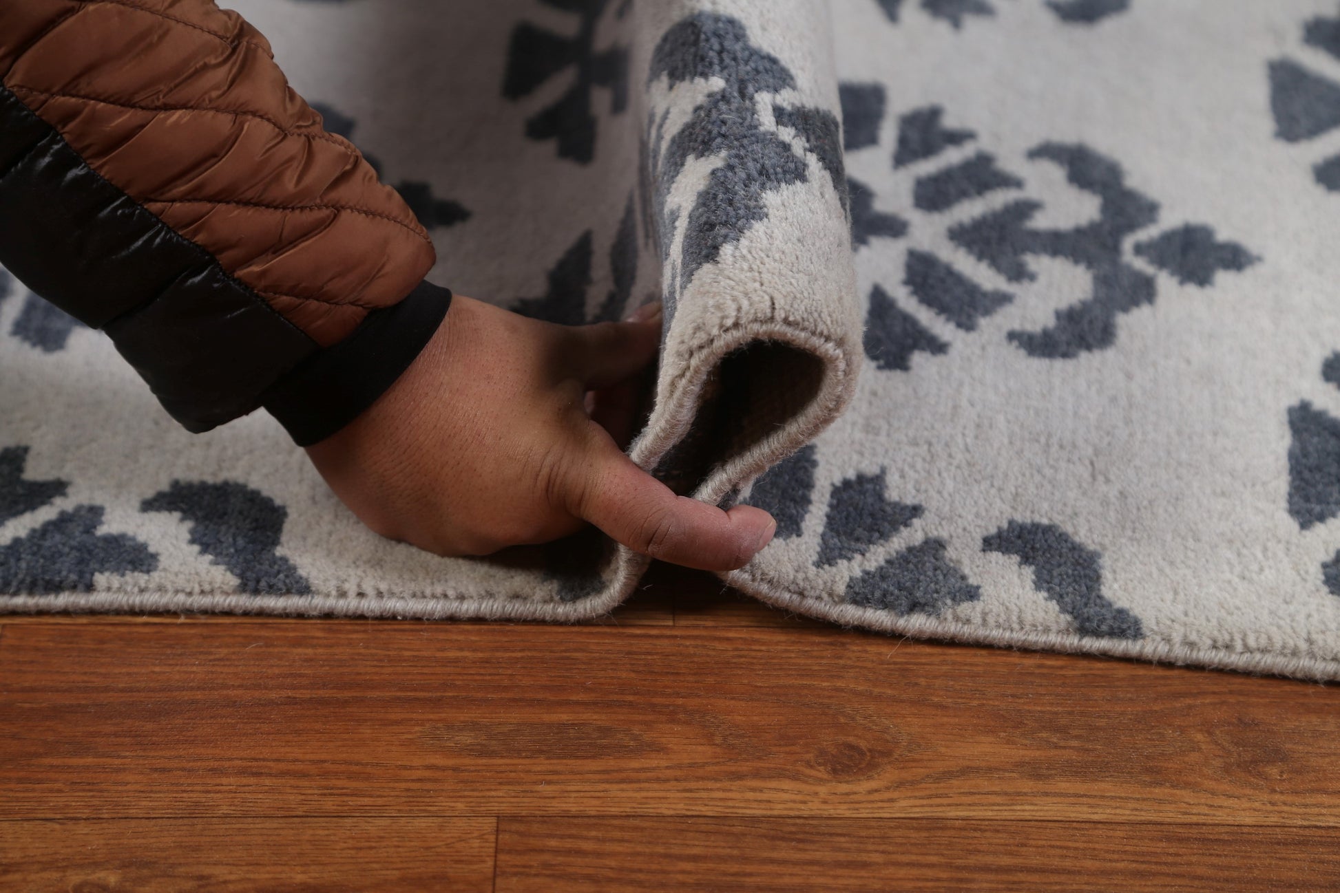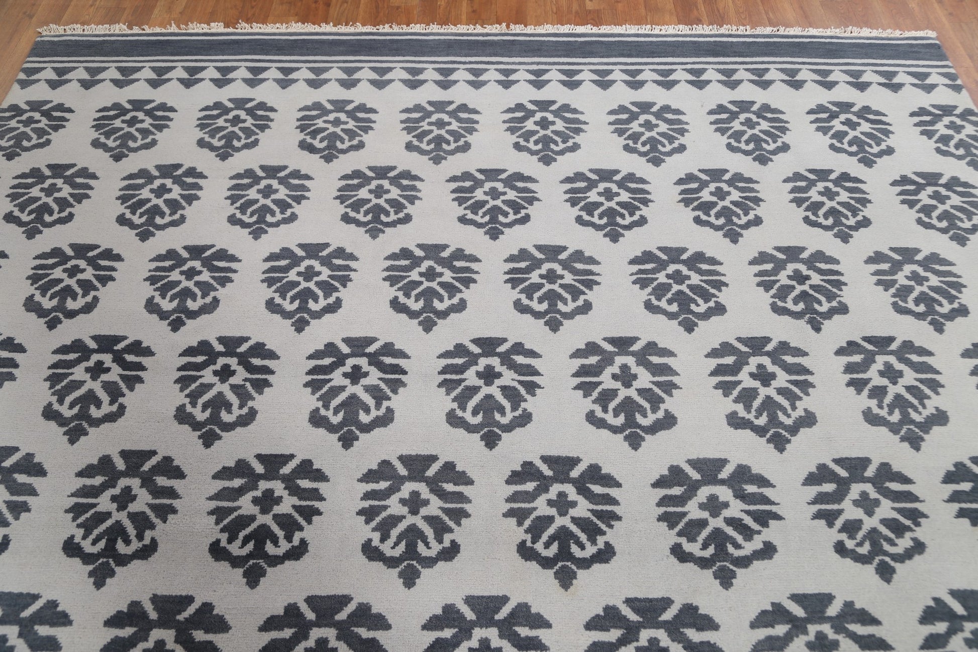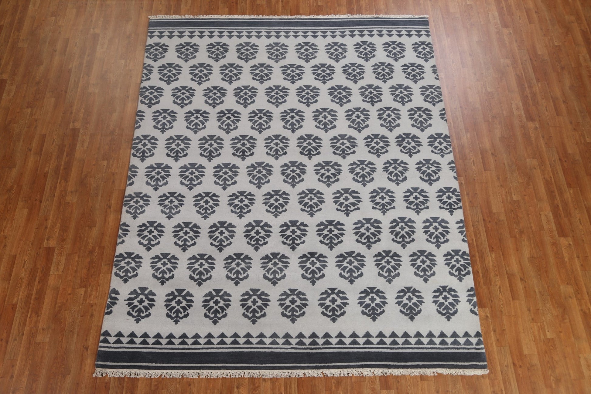 A Beautiful Genuine India Abstract rug is Hand Knotted by skillful weavers in India with 100% Wool Material. This rug is in New, First Quality condition. dimensions are 9' 10'' X 8' 0'' in foot and 300 X 244 in centimeter. the primary color is Greys & Charcoal.