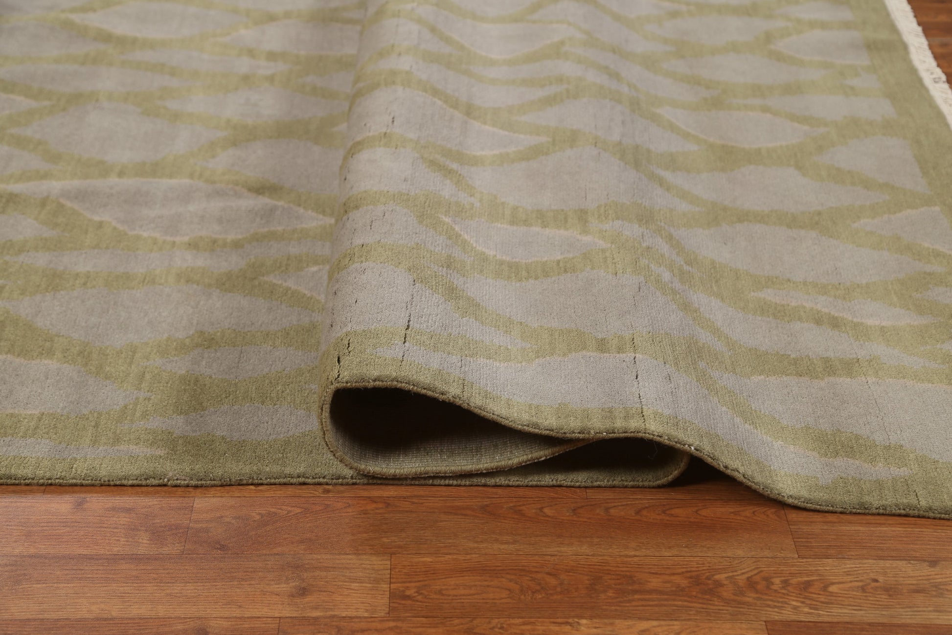 A Beautiful Genuine India Abstract rug is Hand Knotted by skillful weavers in India with 100% Wool Material. This rug is in New, First Quality condition. dimensions are 9' 11'' X 7' 11'' in foot and 302 X 241 in centimeter. the primary color is Multi-Colored.