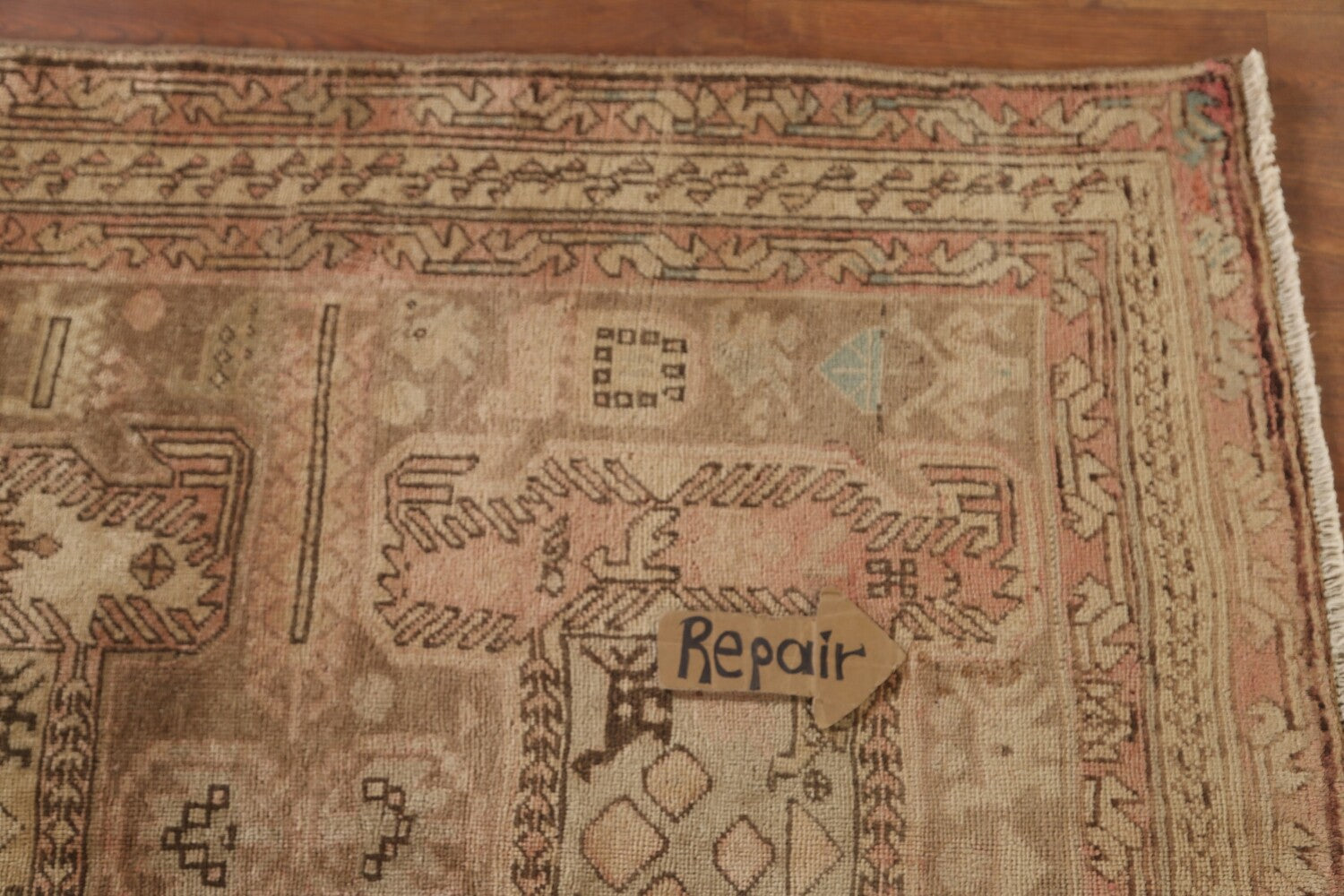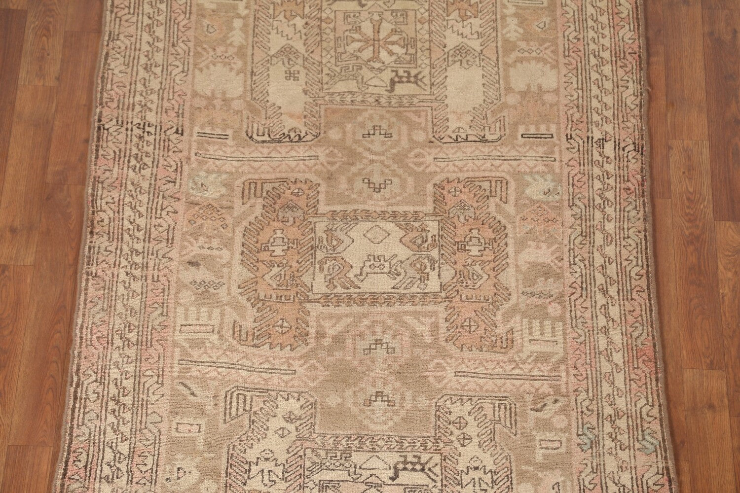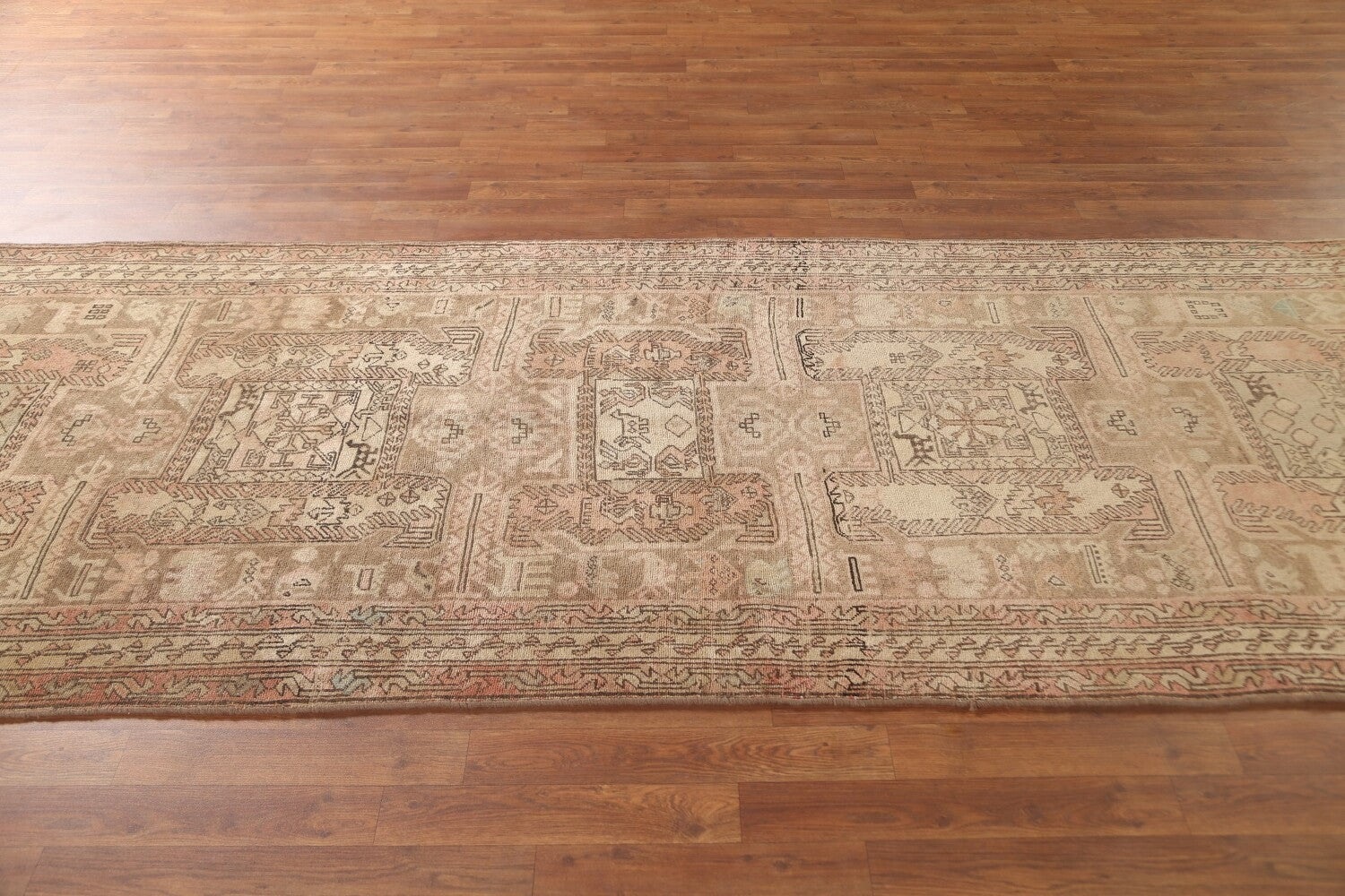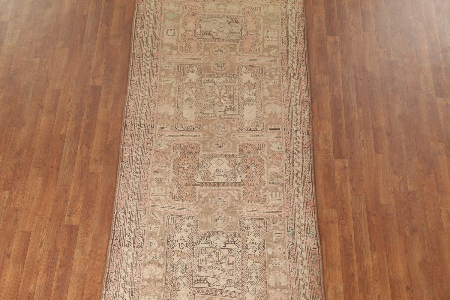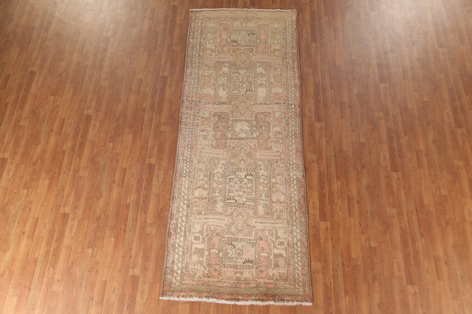 A Beautiful Genuine Persia ( Persia ) Ardebil rug is Hand Knotted by skillful weavers in Persia ( Persia ) with 100% Wool Material. This rug is in Very Good (Evenly Low Pile-Repair) condition. dimensions are 10' 3'' X 3' 10'' in foot and 312 X 117 in centimeter. the primary color is Beige & Ivories.