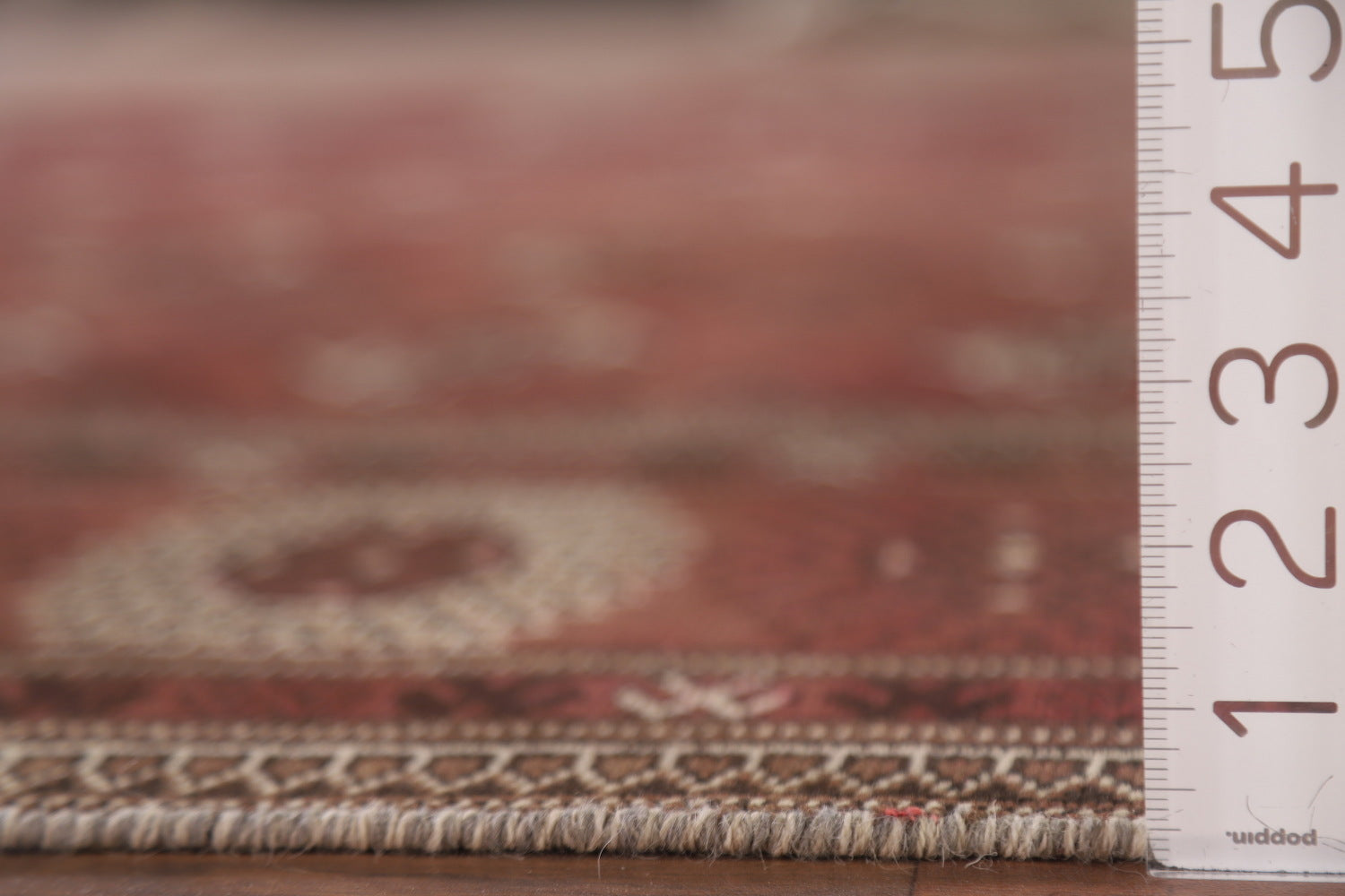 A Beautiful Genuine Pakistan Bokhara rug is Hand Knotted by skillful weavers in Pakistan with 100% Wool Material. This rug is in Very Good (Evenly Low Pile) condition. dimensions are 12' 3'' X 8' 0'' in foot and 373 X 244 in centimeter. the primary color is Red.