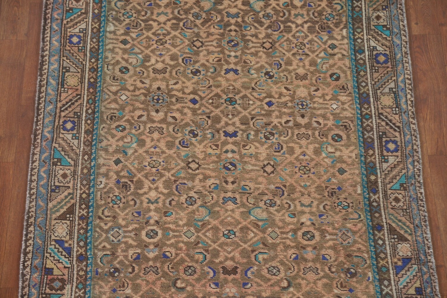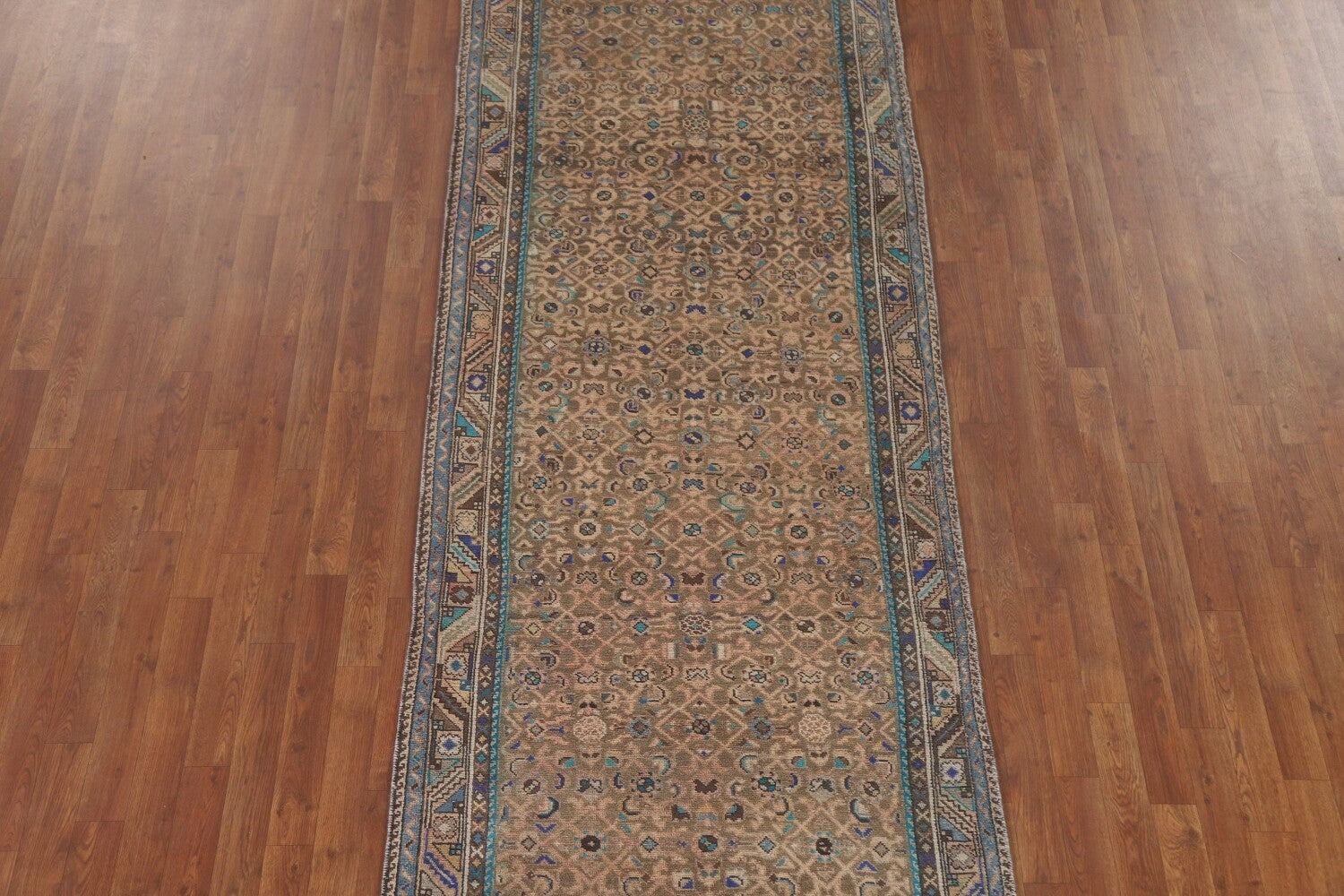 All-Over Wool Hamedan Persian Runner Rug 4x13